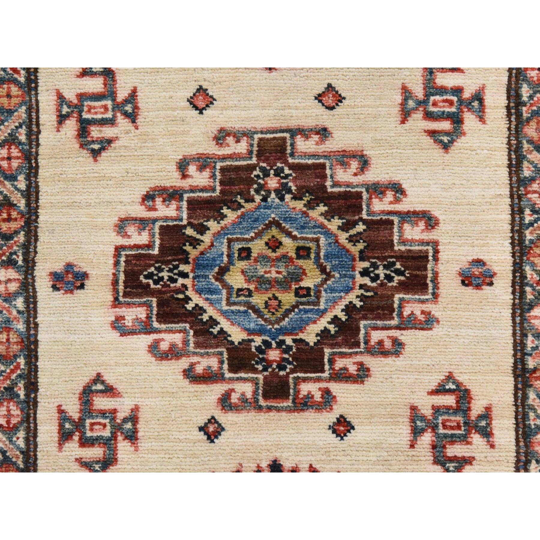 2'9"x8'3" Swan White, Super Kazak, Geometric Design, 100% Shiny Wool, Hand Knotted, Runner, Oriental Rug FWR470694