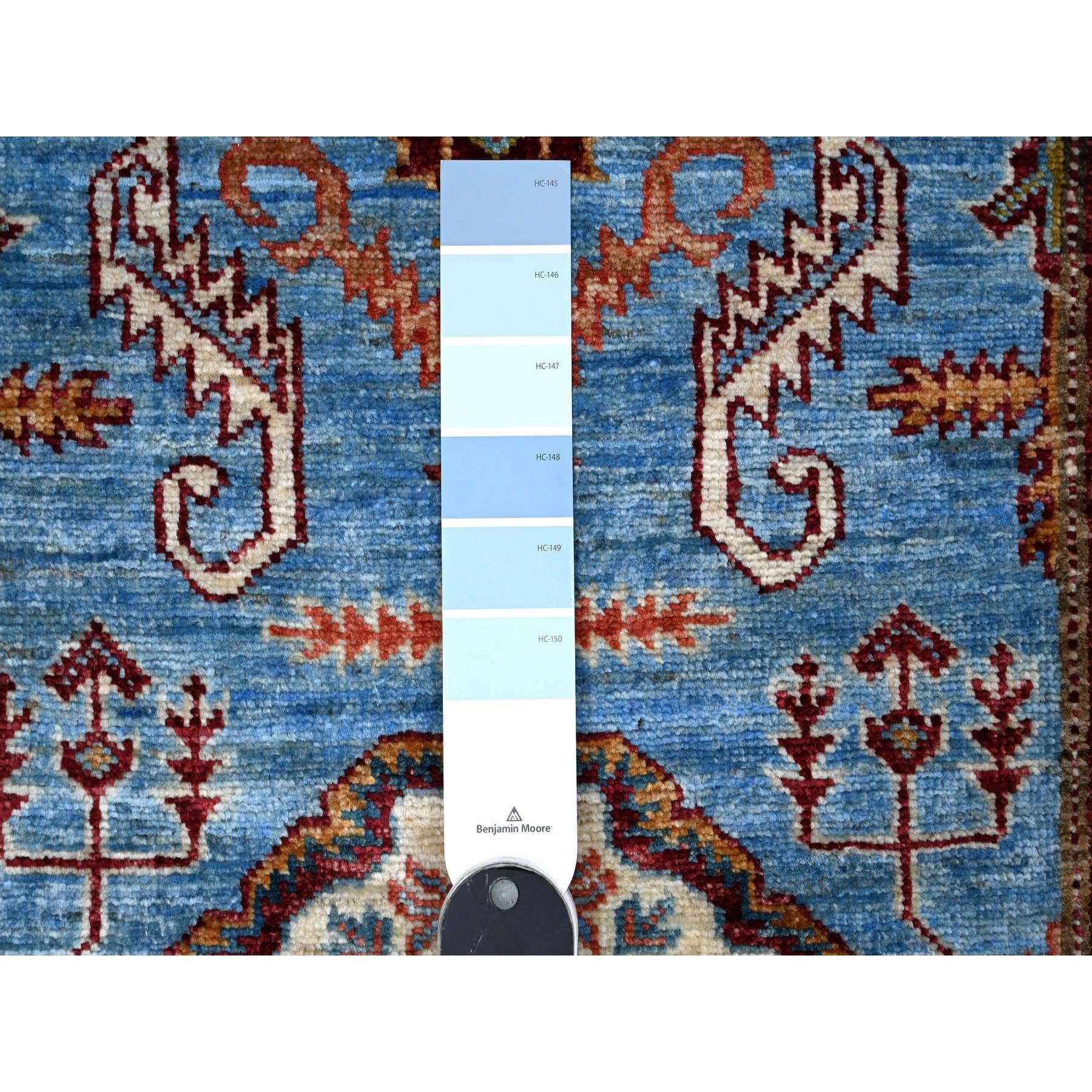 2'9"x8'8" Copen Blue, Afghan Super Kazak Hand Knotted 100% Wool, Tribal And Geometric Medallions Design Vegetable Dyes Oriental Runner Rug FWR535866