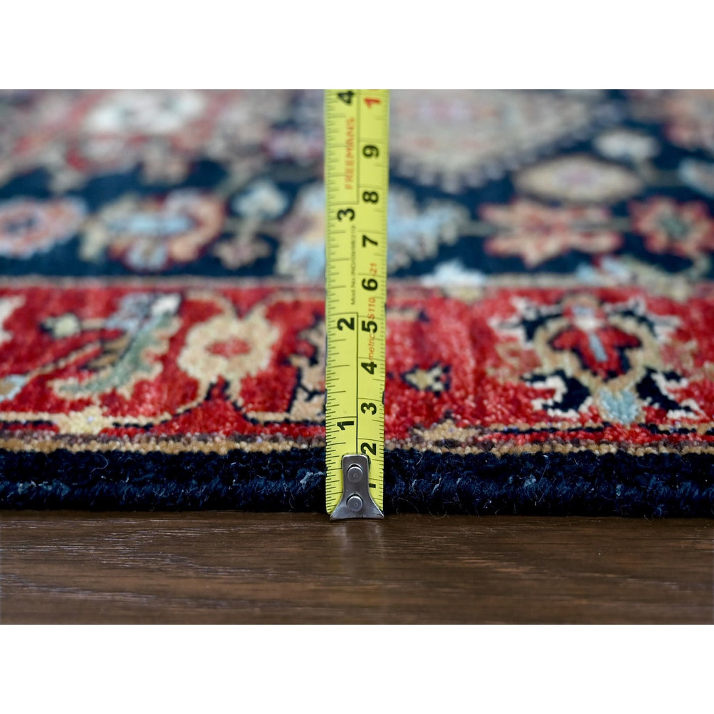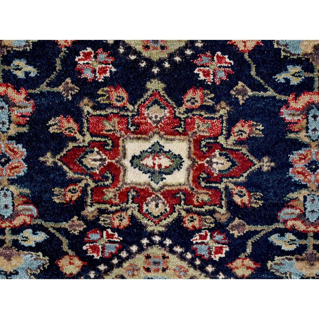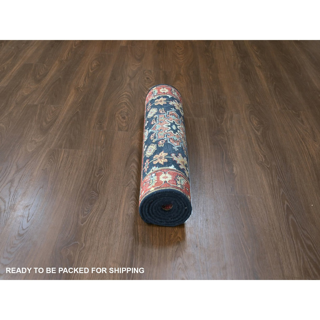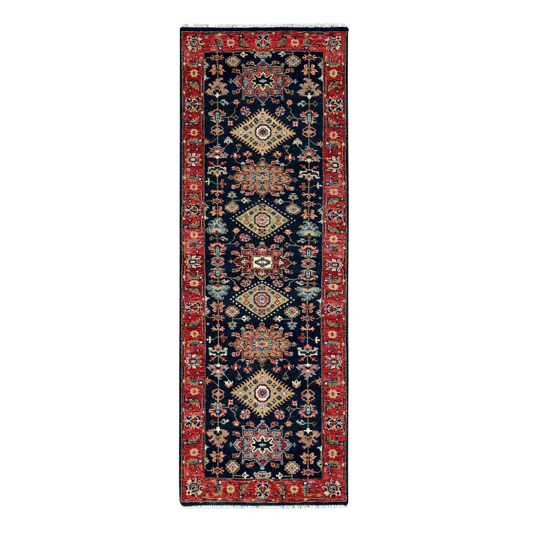 2'9"x8' Denim Blue, Karajeh Design With Tribal Medallions, Hand Knotted, 100% Wool, Runner, Oriental Rug FWR61812