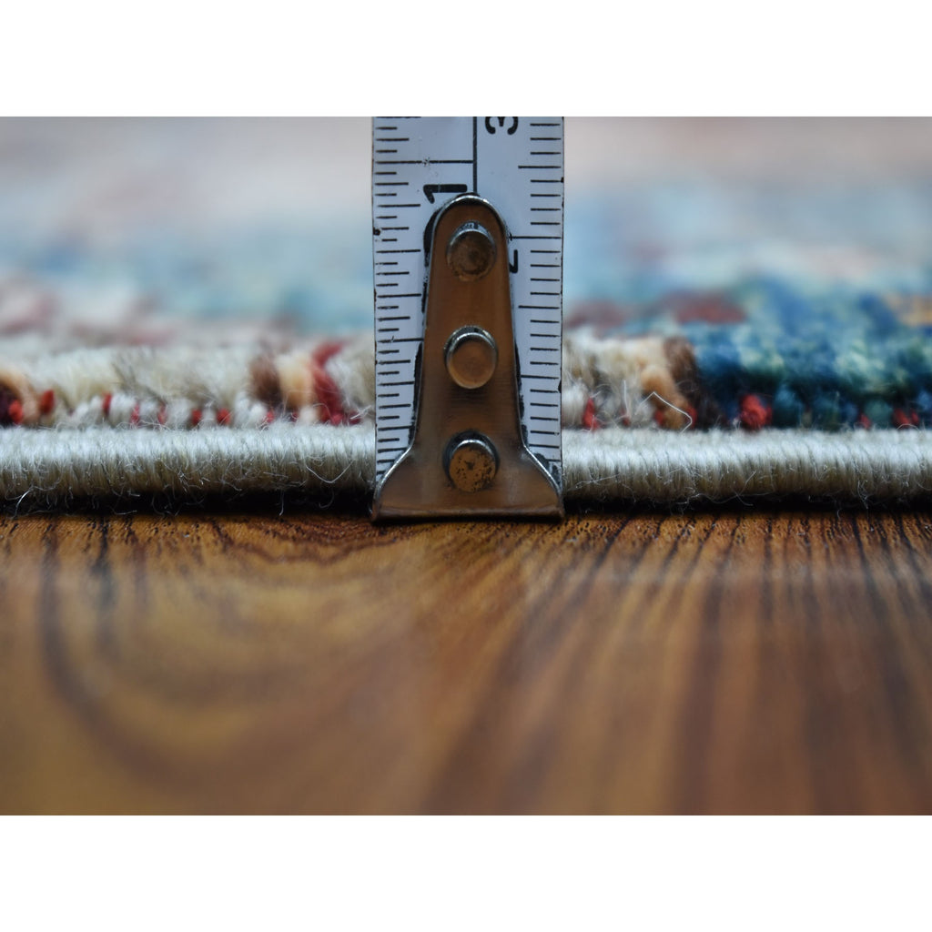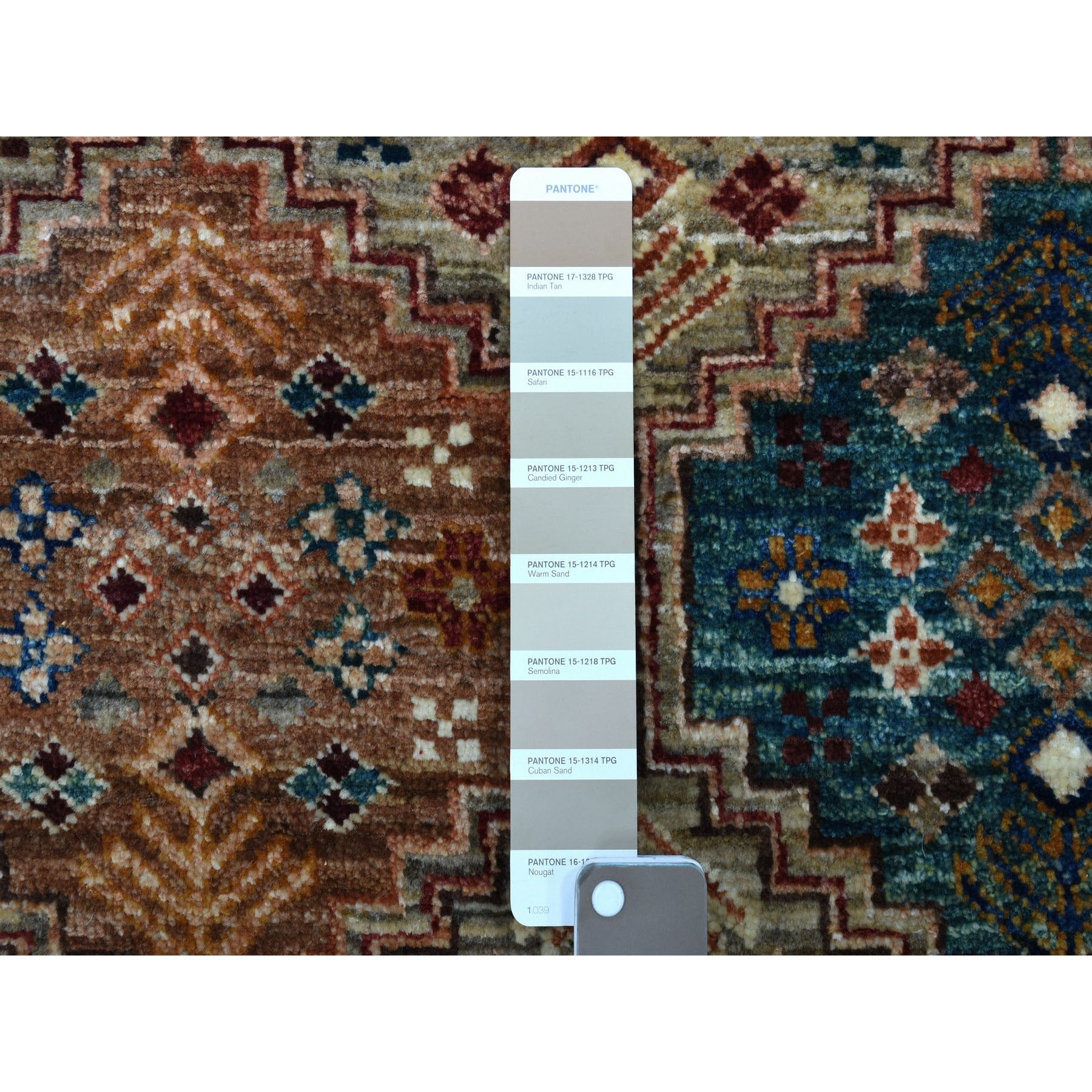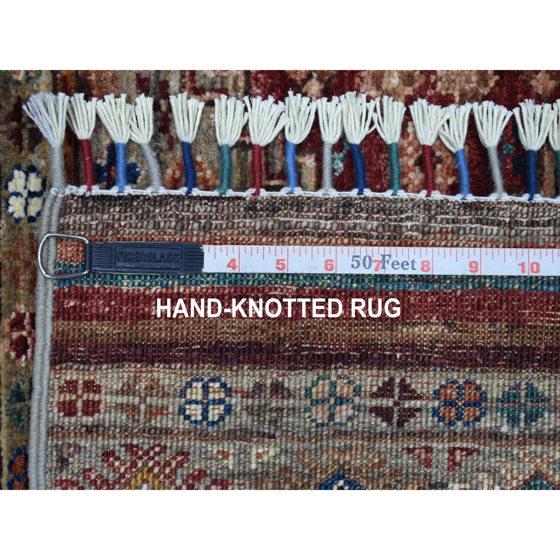 2'9"x8' Taupe Super Kazak In A Colorful Palette Khorjin Design Pure Wool Hand Knotted Oriental Runner Rug FWR402570