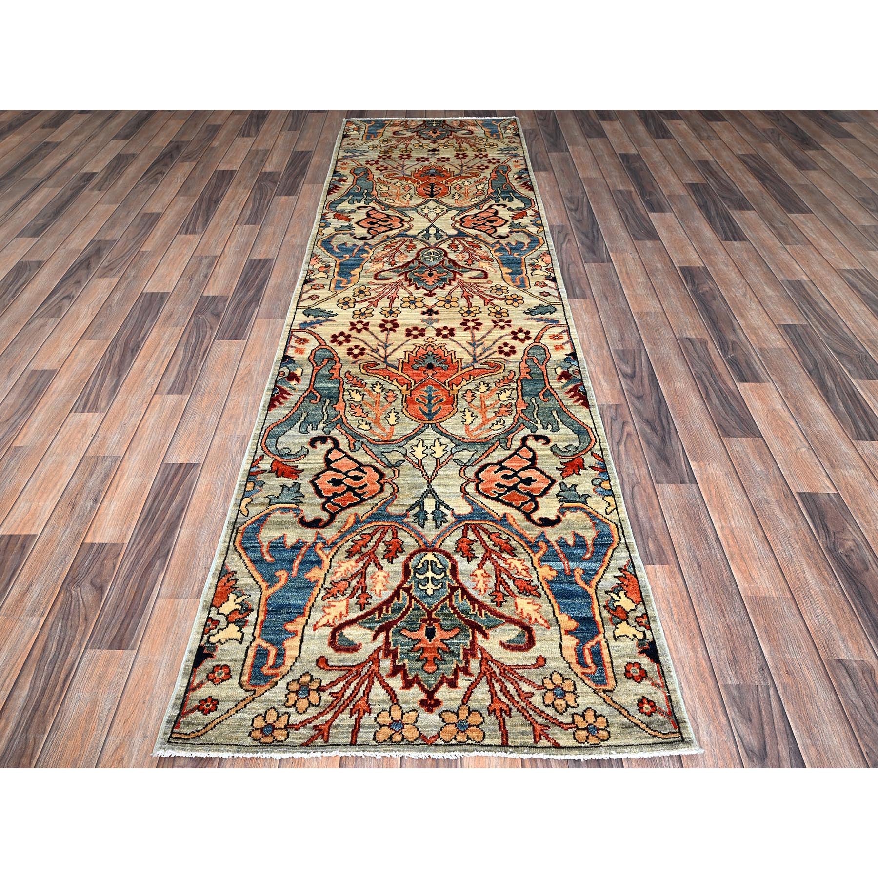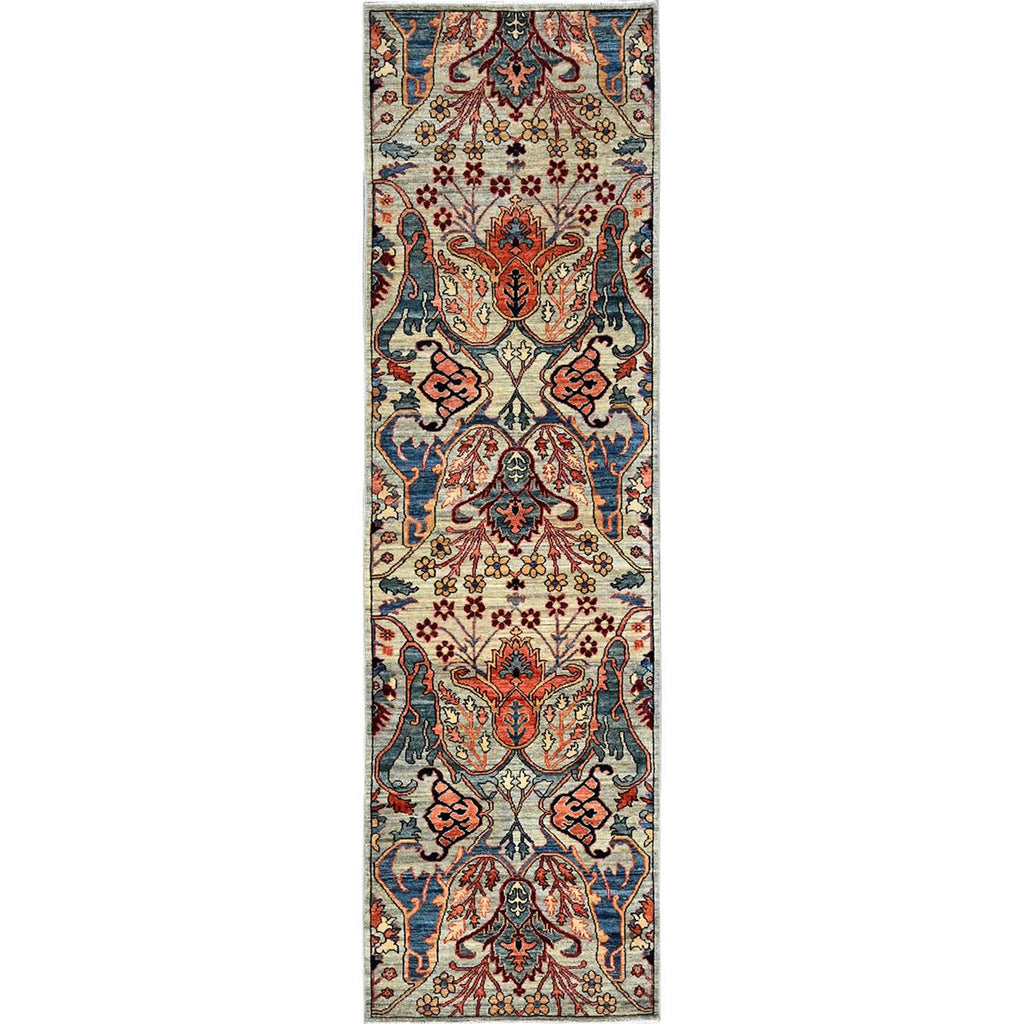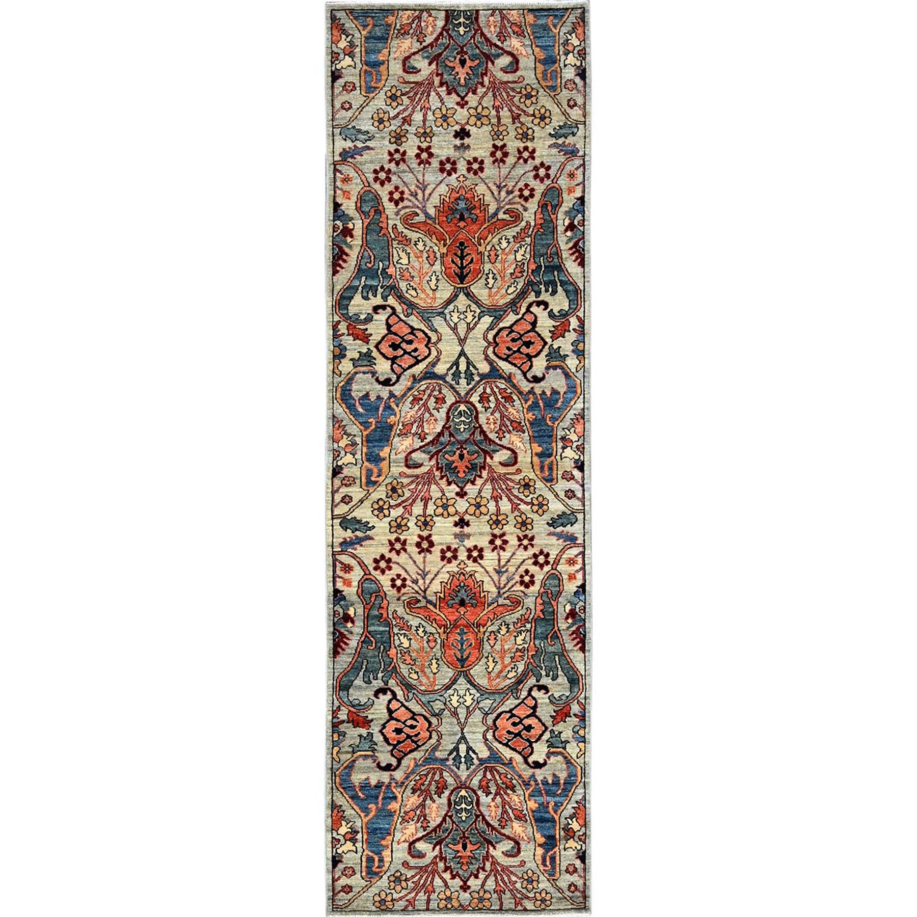 2'9"x9'10" Oyster Gray, Bijar Garus Design, Aryana Grade, Vegetable Dyes, High Mountain Wool, Hand Knotted, Soft Pile, Densely Woven, Runner, Oriental Rug FWR6408