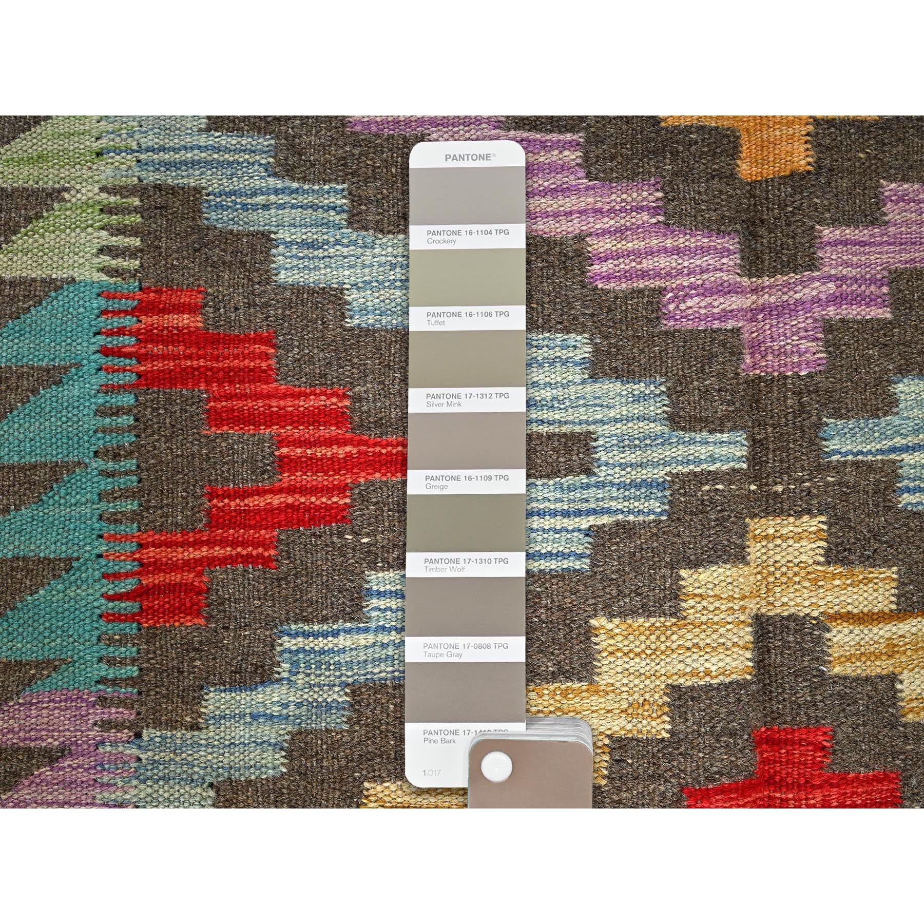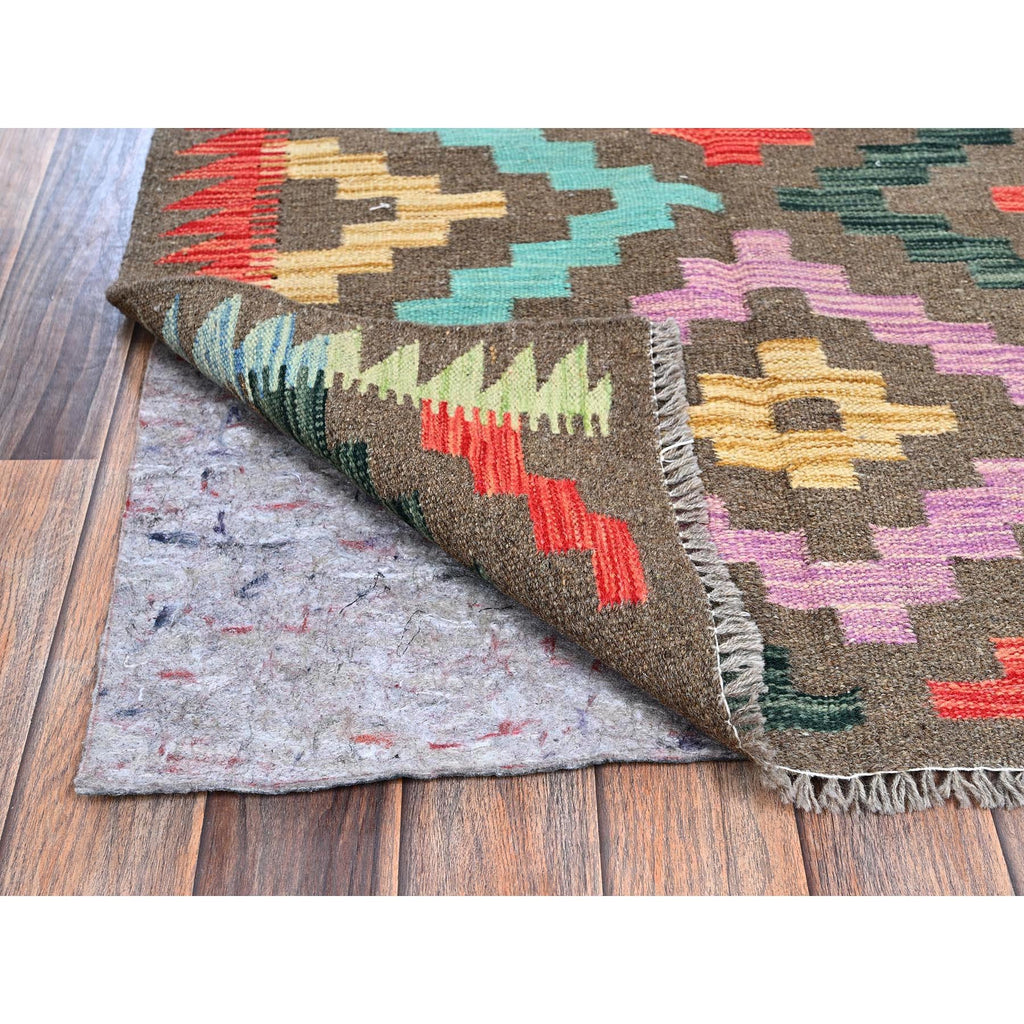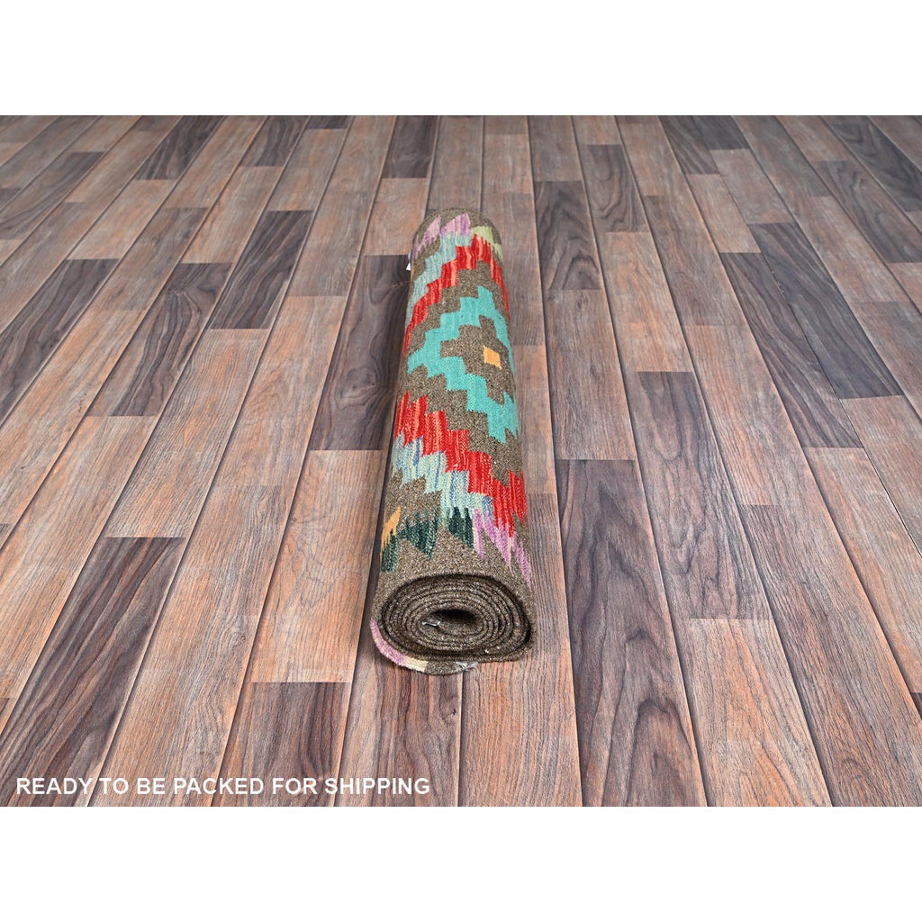 2'9"x9'10" Taupe Gray, Afghan Kilim With Colorful Geometric Pattern, Vegetable Dyes, Pure Wool, Flat Weave, Hand Woven, Reversible, Runner, Oriental Rug FWR7020