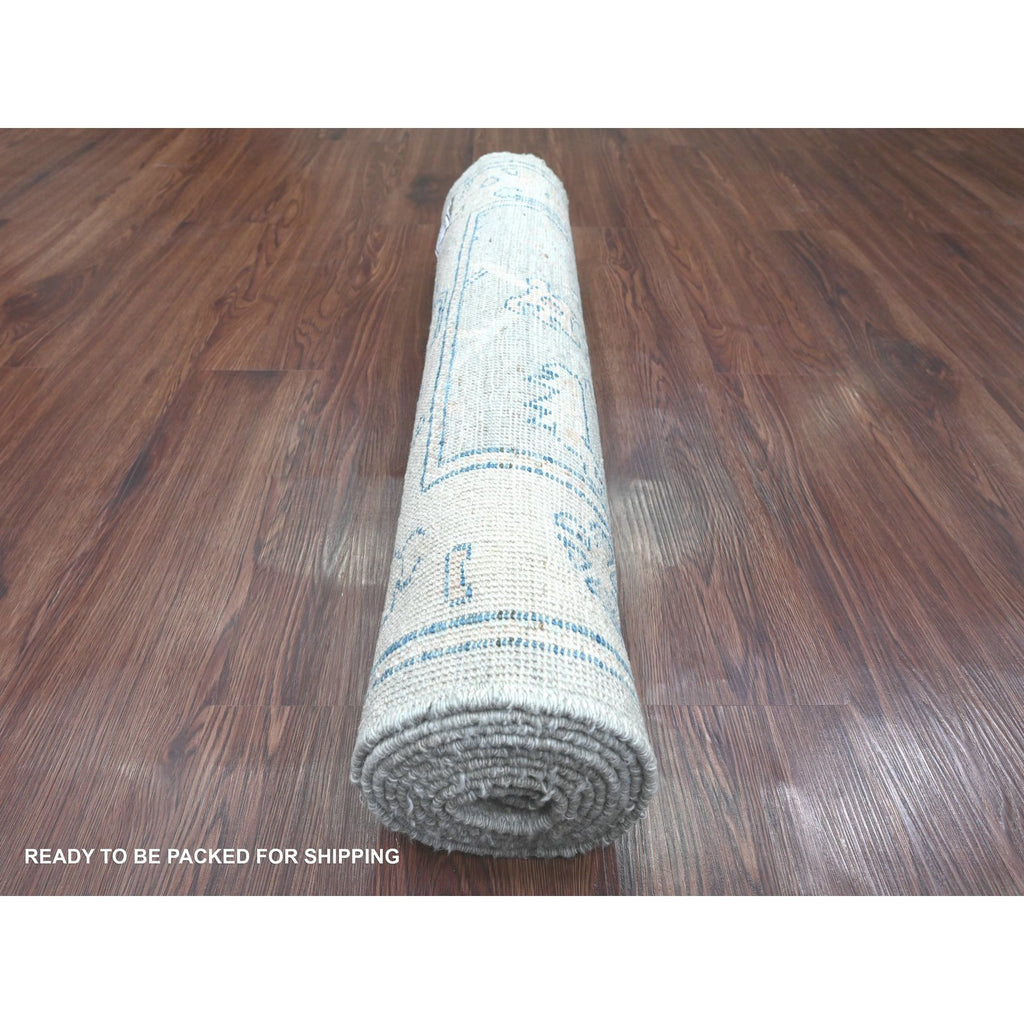 2'9"x9'2" Misty Gray, Hand Knotted, Afghan Angora Oushak With All Over Pattern, Veggie Dyes, 100% Wool, Runner, Oriental Rug FWR123978