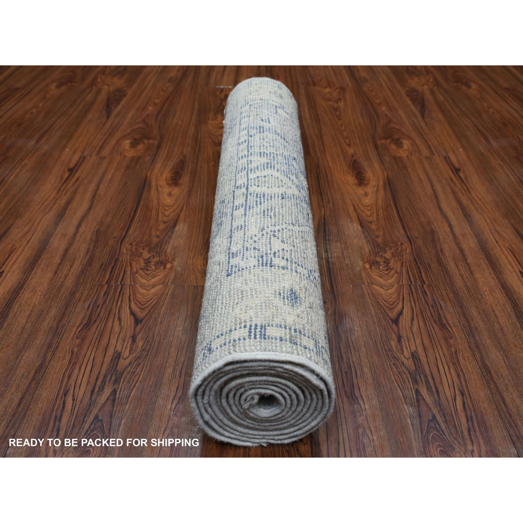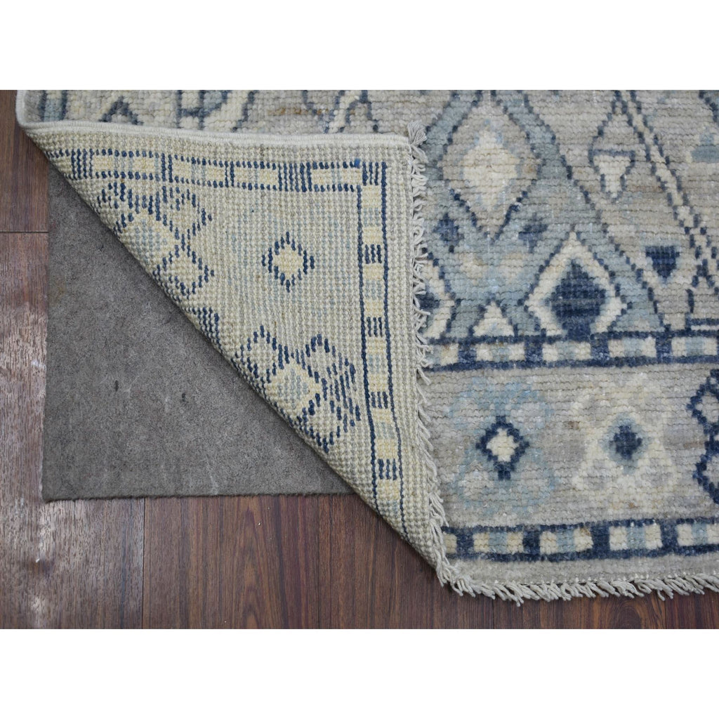 2'9"x9'4" Gray, Extra Soft Wool, Anatolian Village Inspired Geometric Design, Hand Knotted, Runner Oriental Rug FWR427692