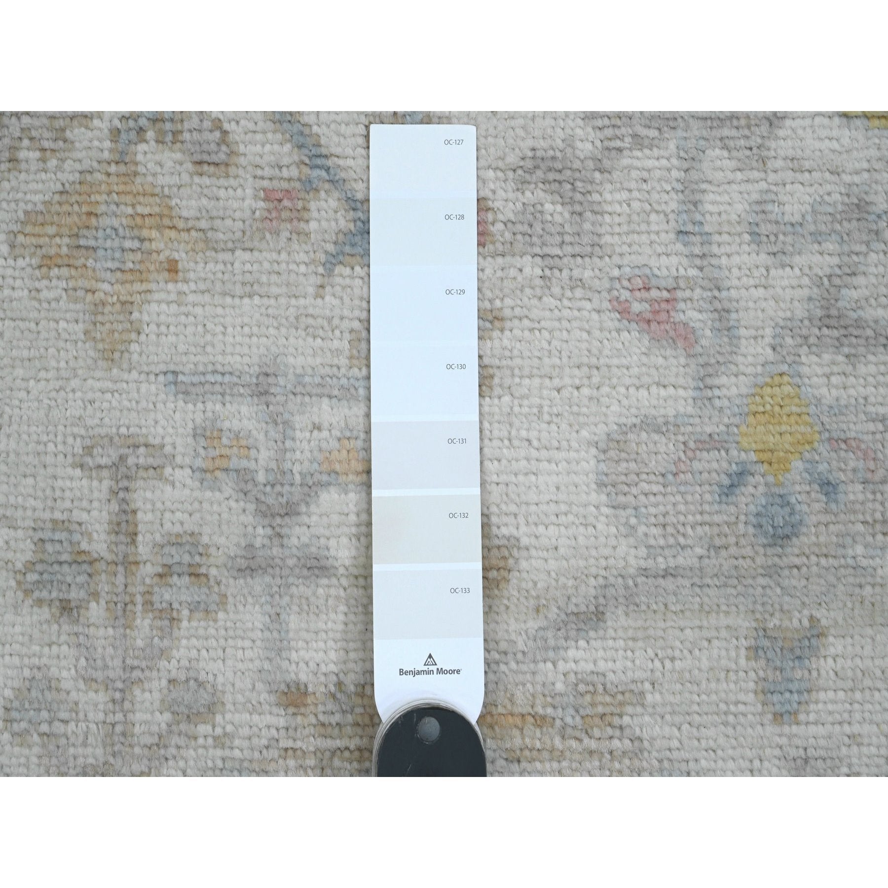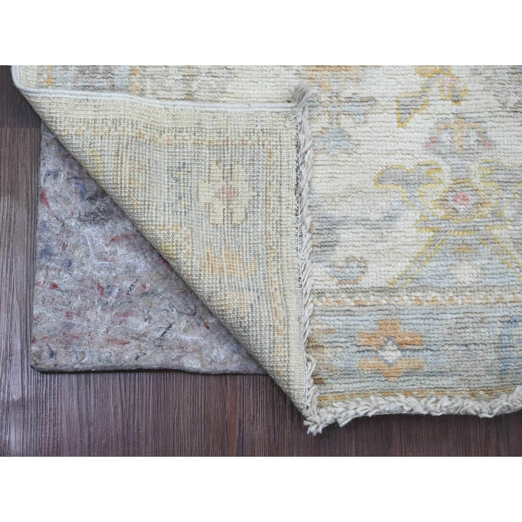 2'9"x9'5" Chiffon White, Afghan Angora Oushak With Soft Color Leaf Design, Vegetable Dyes, 100% Wool, Hand Knotted, Runner, Oriental Rug FWR539814