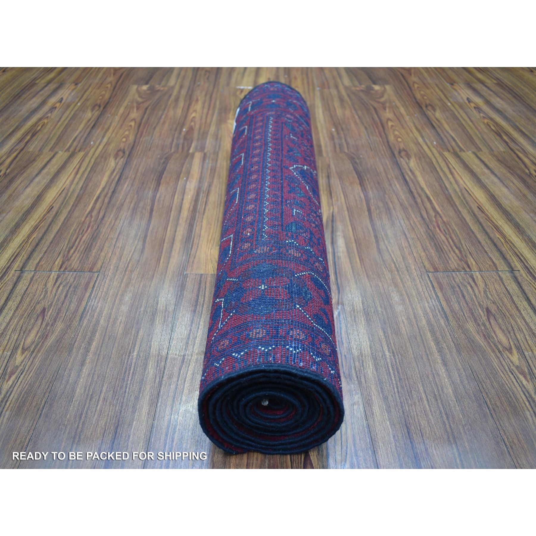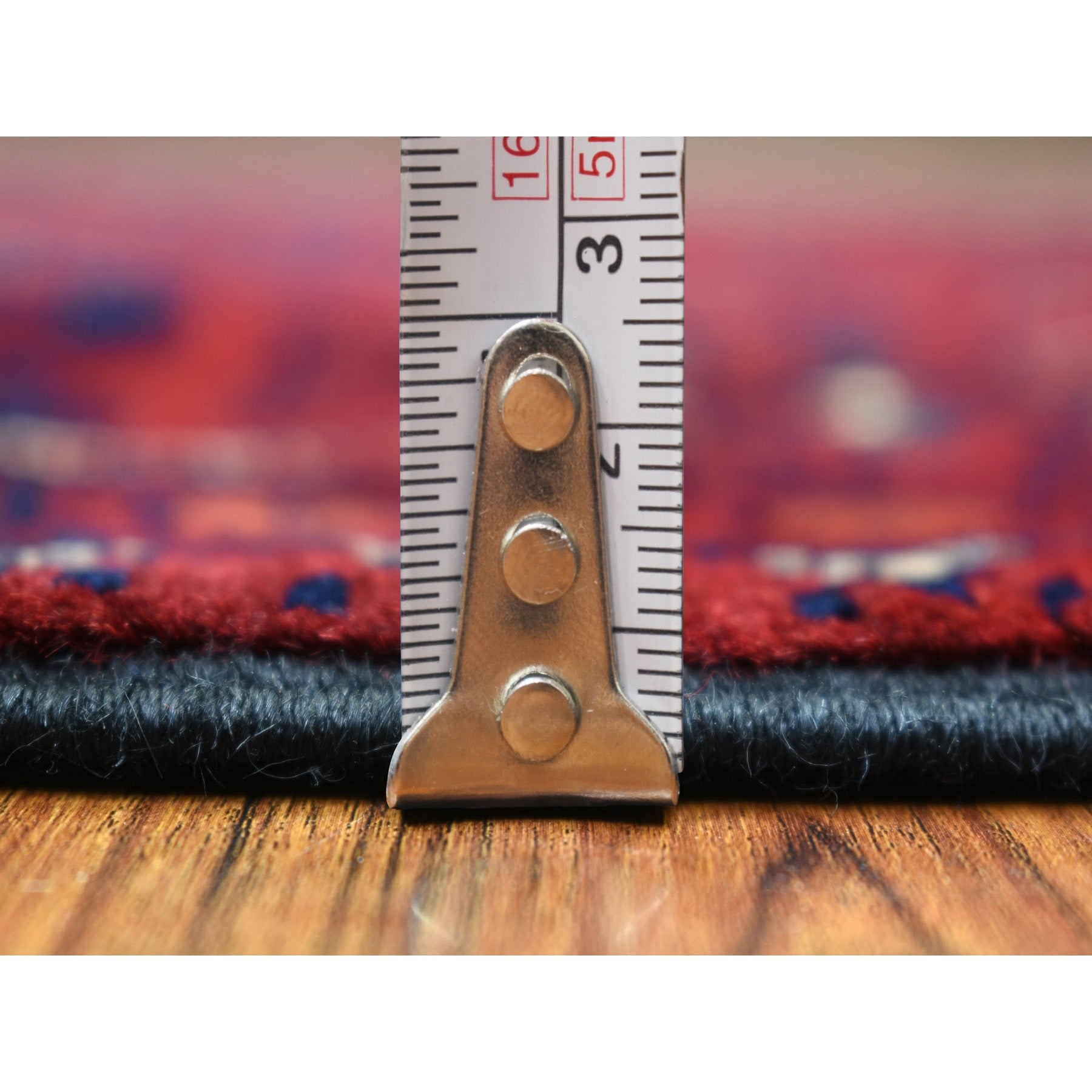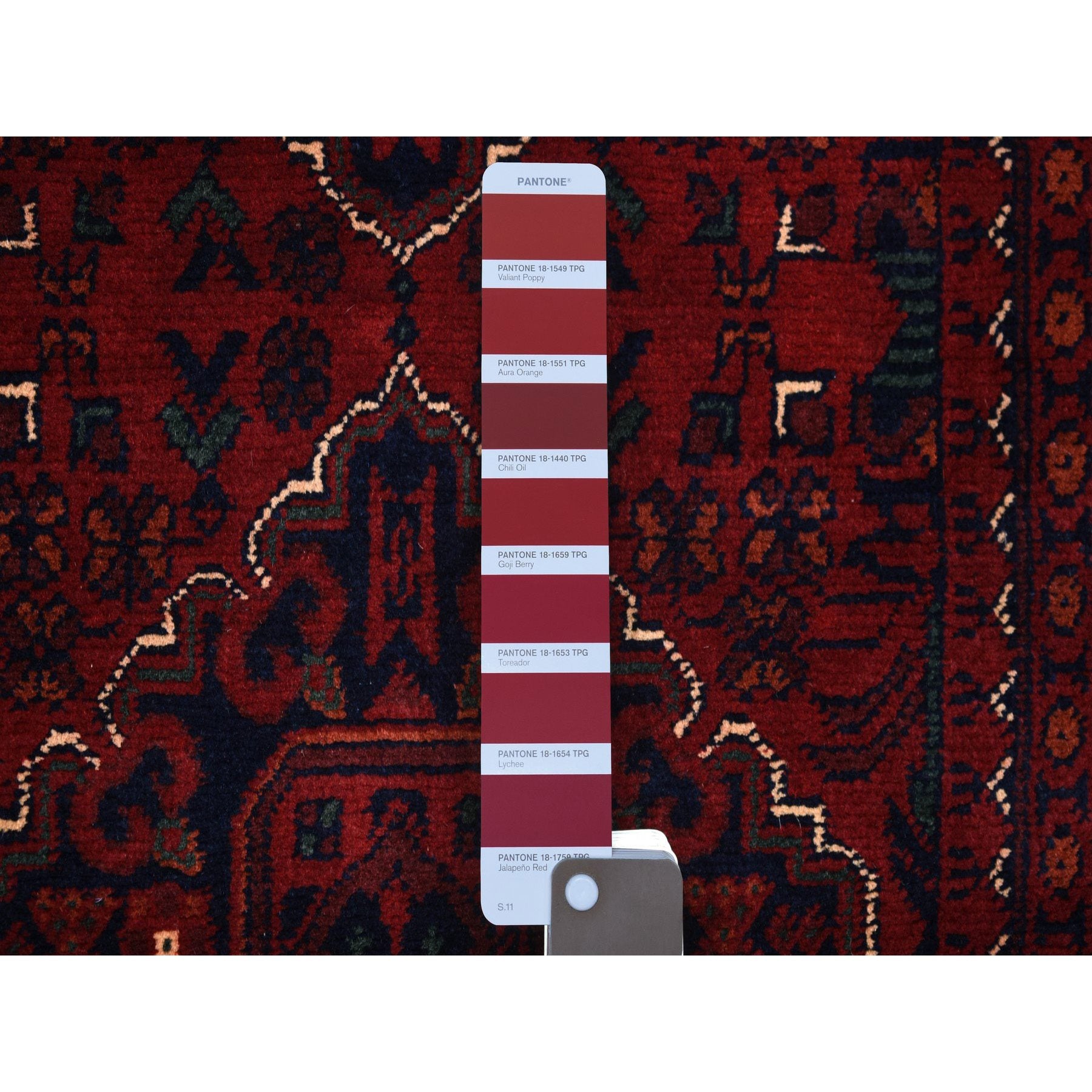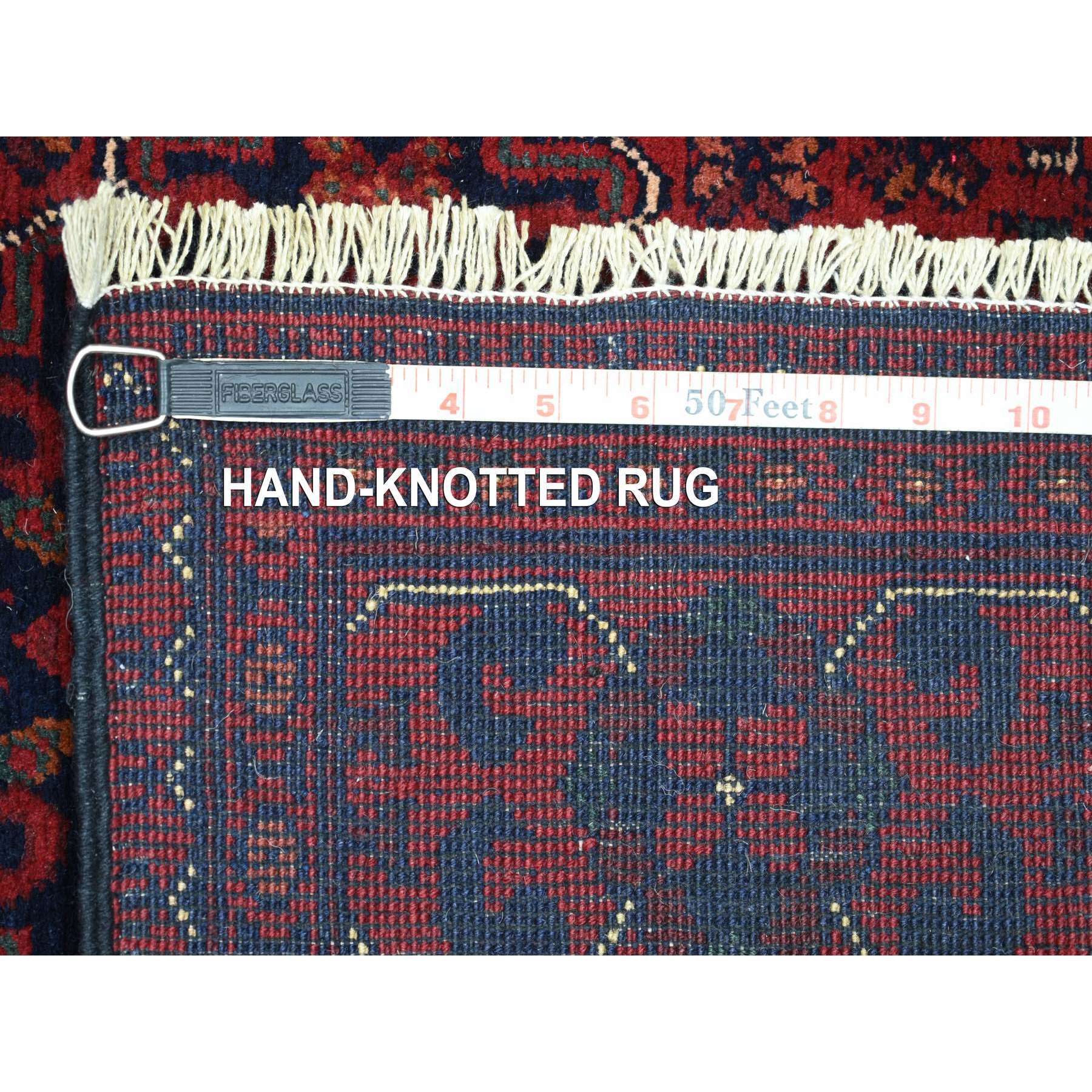 2'9"x9'5" Deep And Saturated Red Natural Dyes Afghan Khamyab Velvety Wool, Geometric Design Hand Knotted Runner Oriental Rug FWR432090