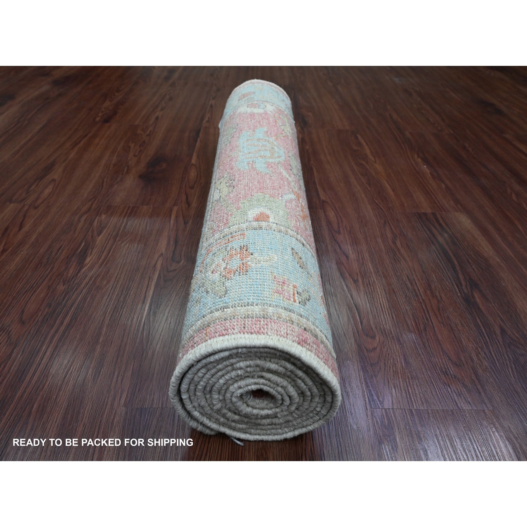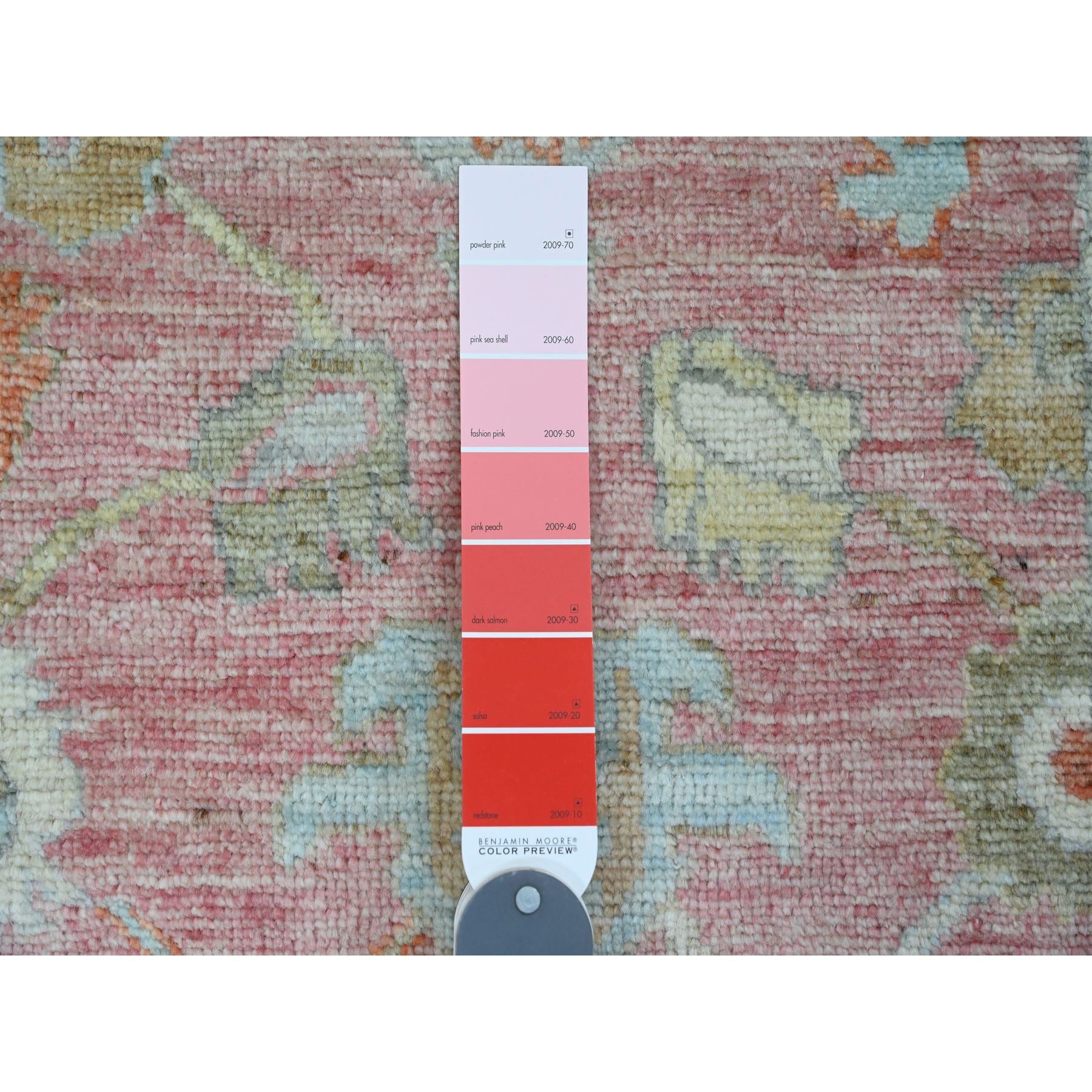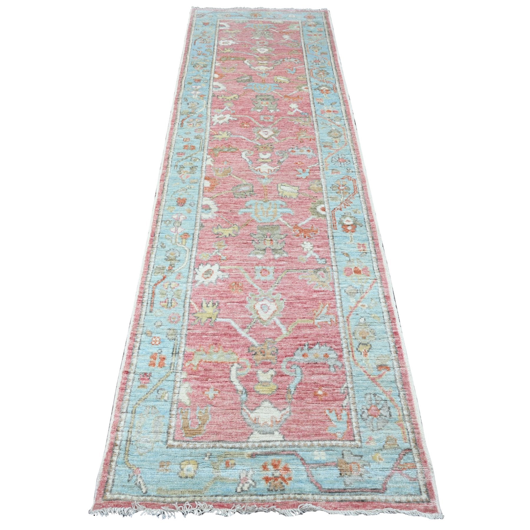 2'9"x9'5" Punch Pink, Afghan Angora Oushak With All Over Vines Design, Vegetable Dyes, 100% Wool, Hand Knotted, Runner, Oriental Rug FWR539550