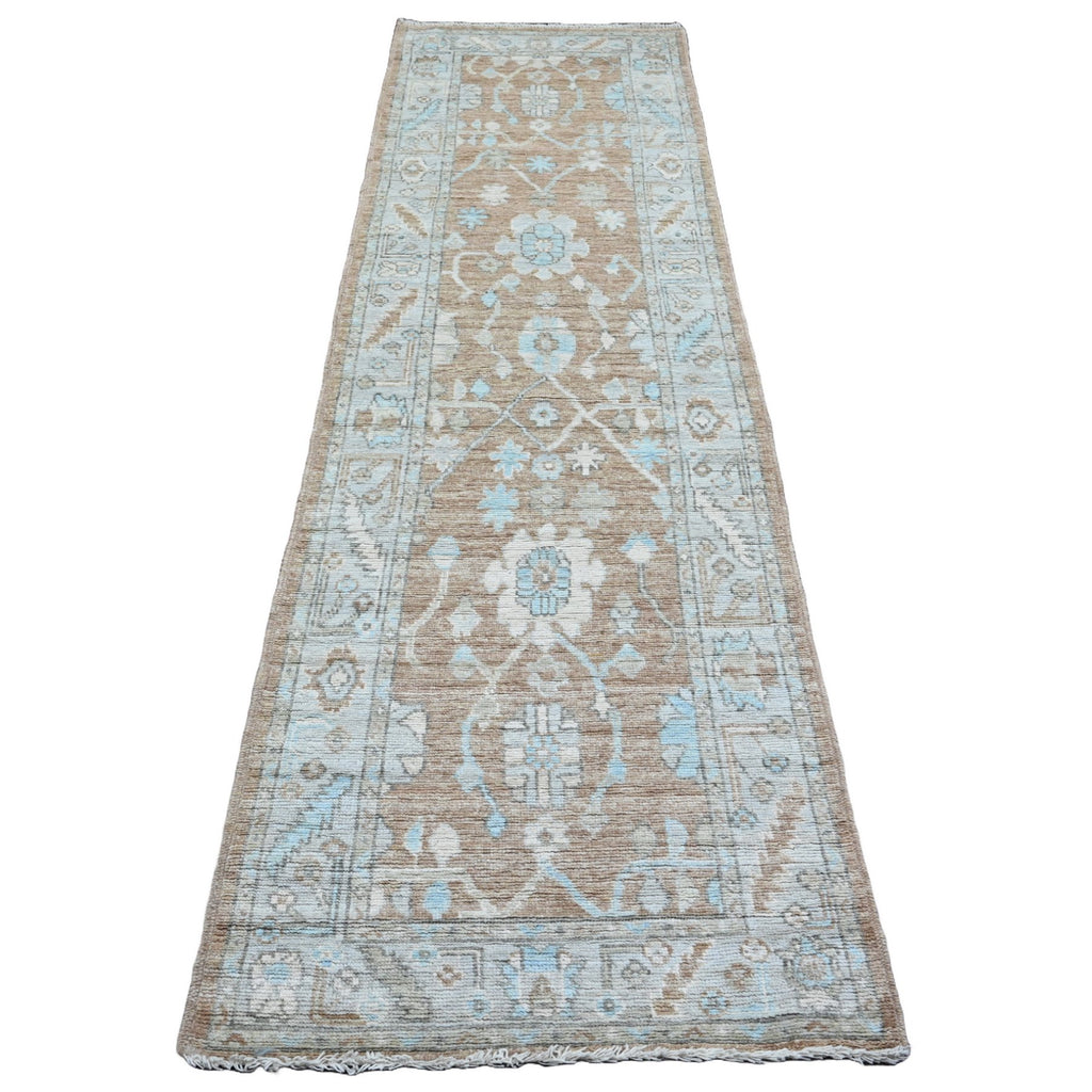 2'9"x9'6" Almond Brown, Afghan Angora Oushak With All Over Leaf Design, Vegetable Dyes, Hand Knotted, 100% Wool, Runner, Oriental Rug FWR120774