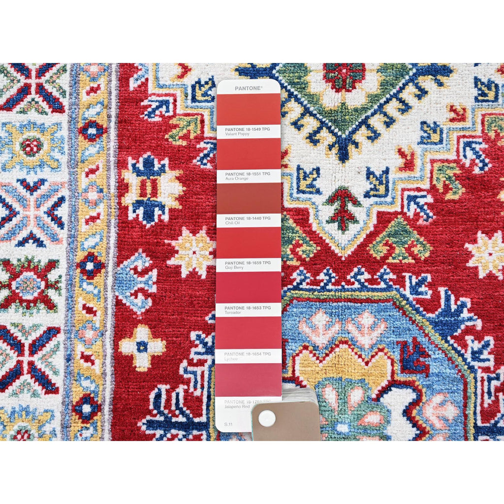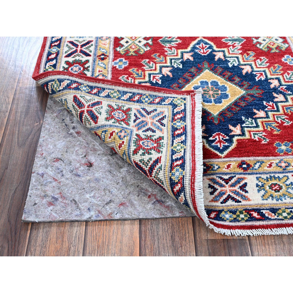 2'9"x9'8" Berry Red, Kazak With Geometric Medallions Design, Soft And Shiny Wool, Hand Knotted, Vegetable Dyes, Denser Weave, Runner, Oriental Rug FWR2736