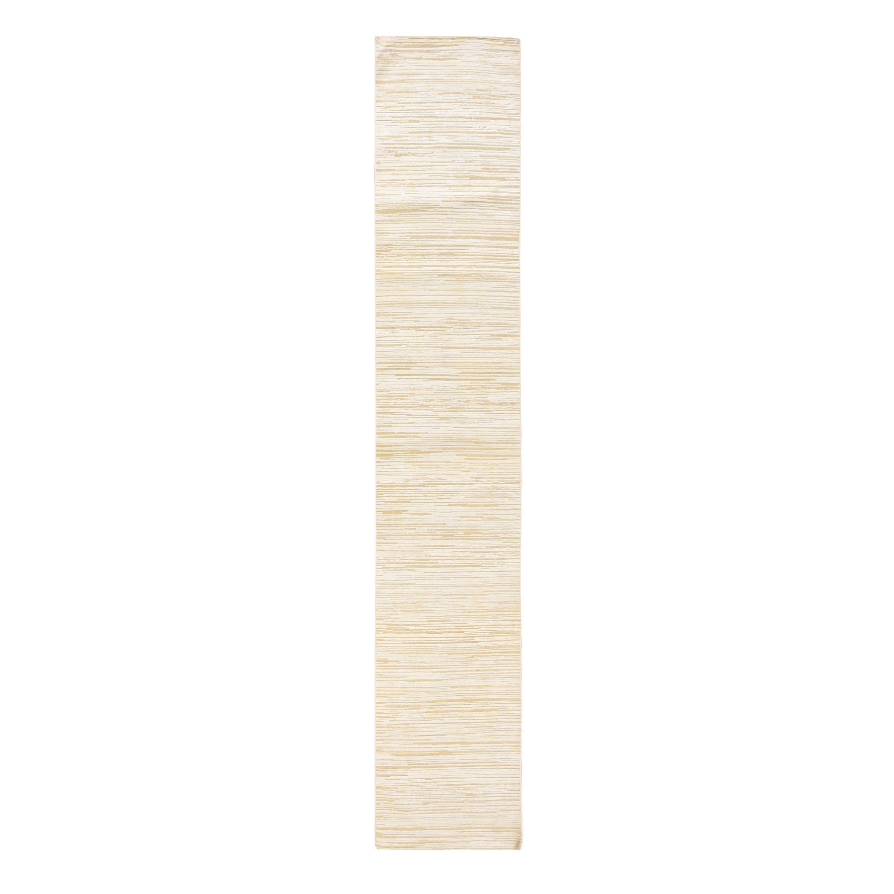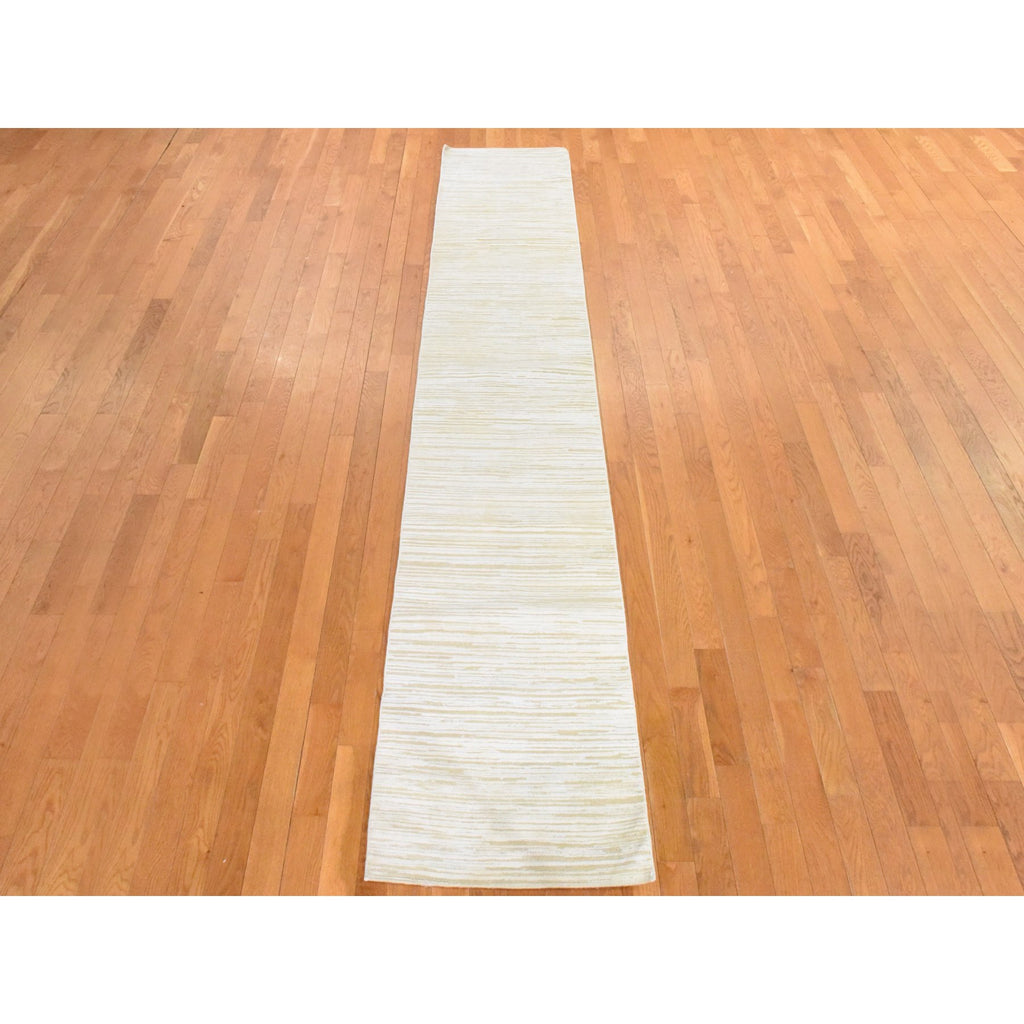2'x12' Winter White, 100% Wool, Oxidized And Textured, Hand Knotted, Narrow Runner, Oriental Rug FWR470760