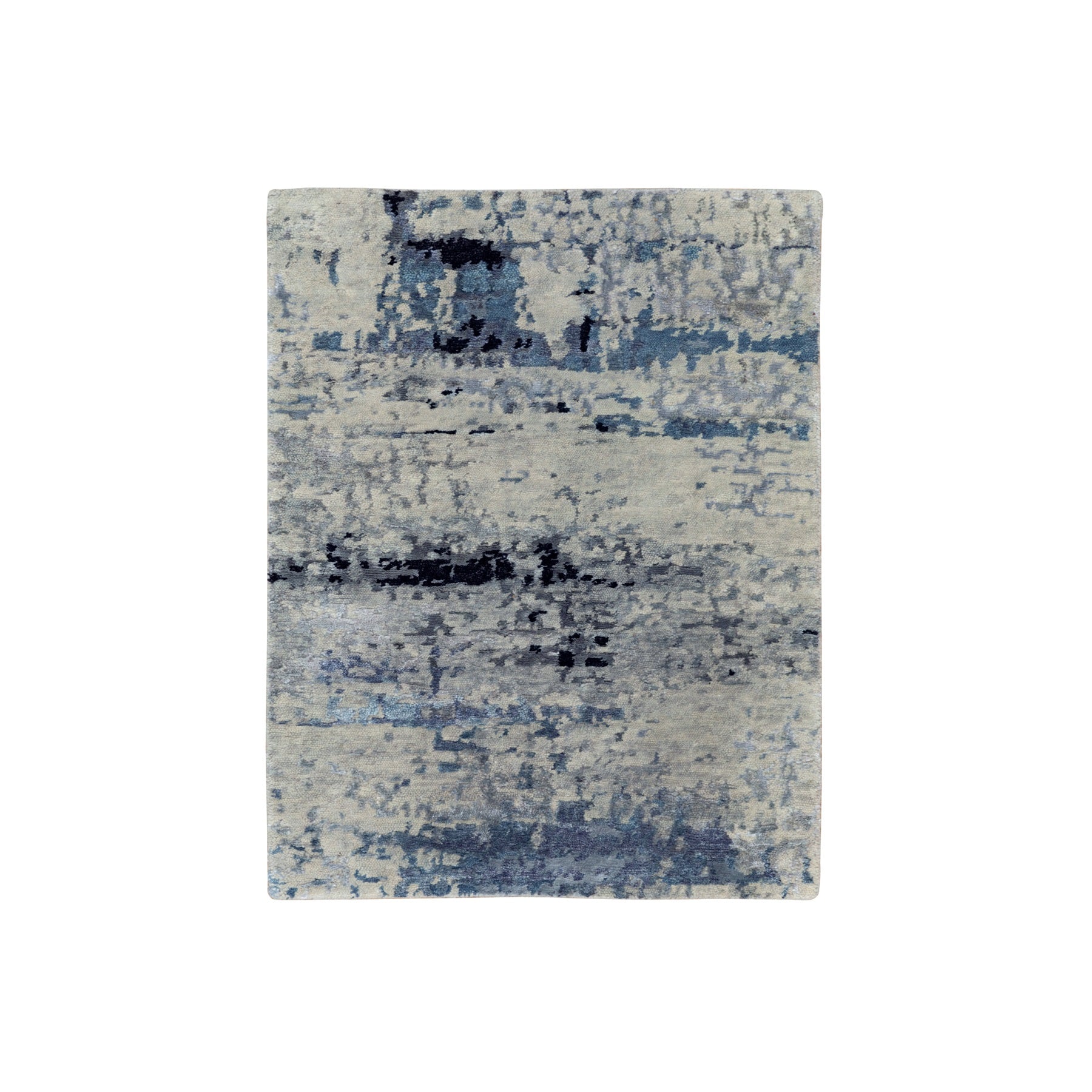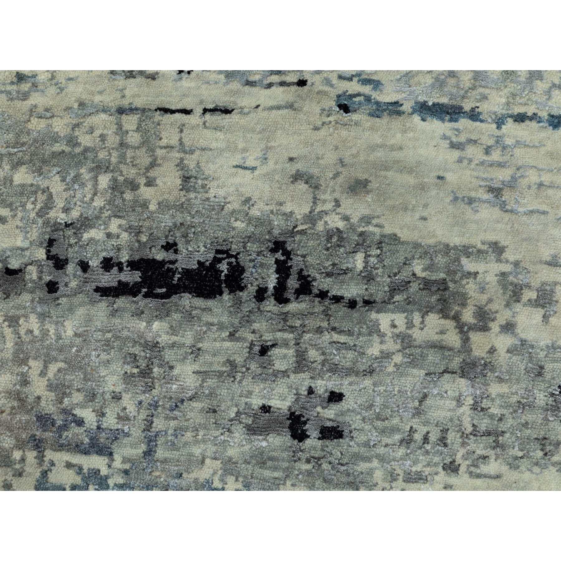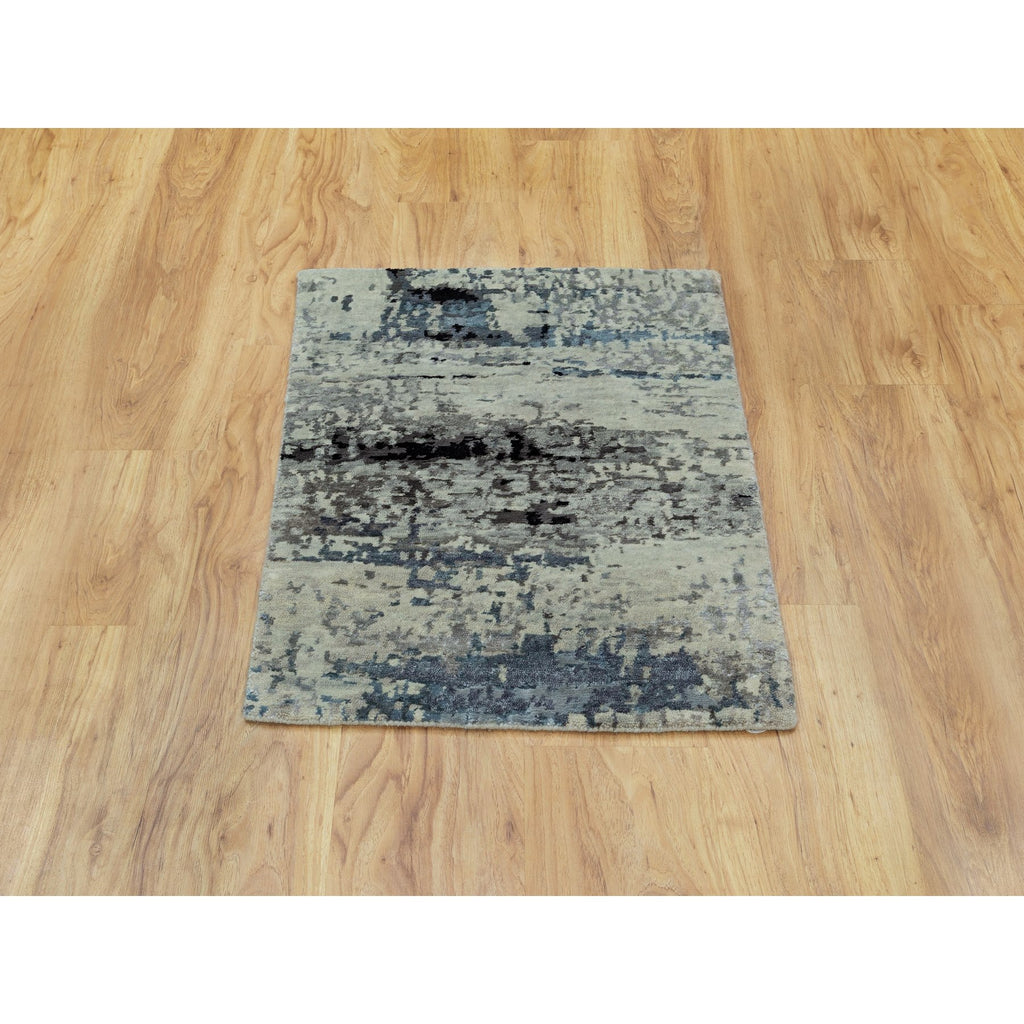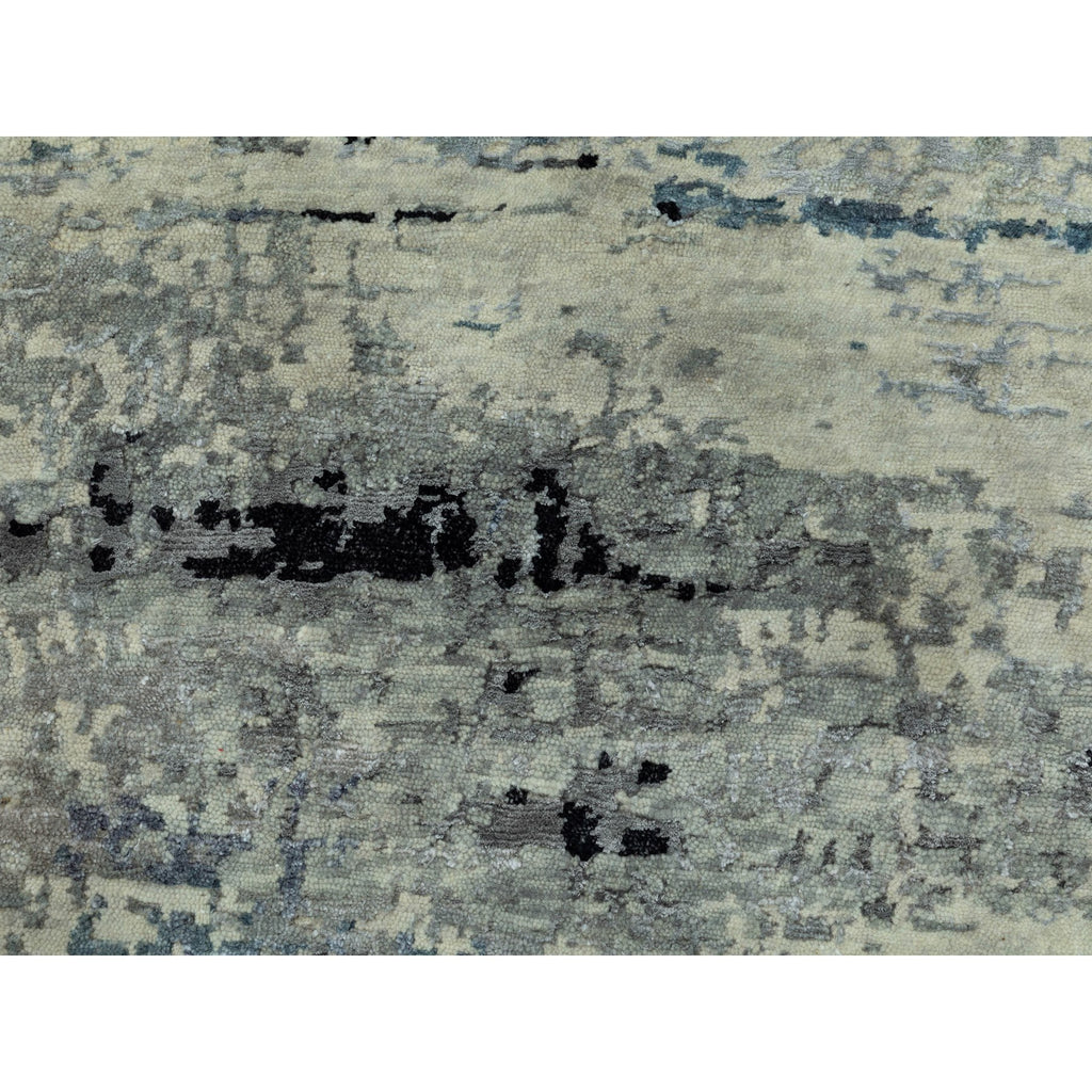 2'x2'10" Abstract Design Hi-low Pile Silver-blue Hand Knotted Wool & Silk Oriental Rug FWR351024