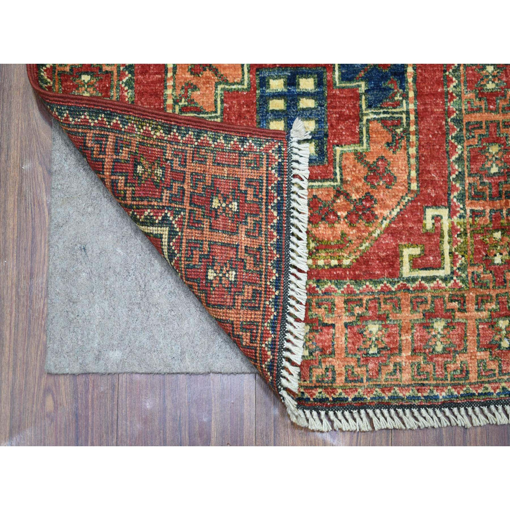 2'x2'10" Brick Red, Natural Dyes, Afghan Ersari With Elephant Feet Design, Hand Knotted, Pure Wool Oriental Rug FWR425856