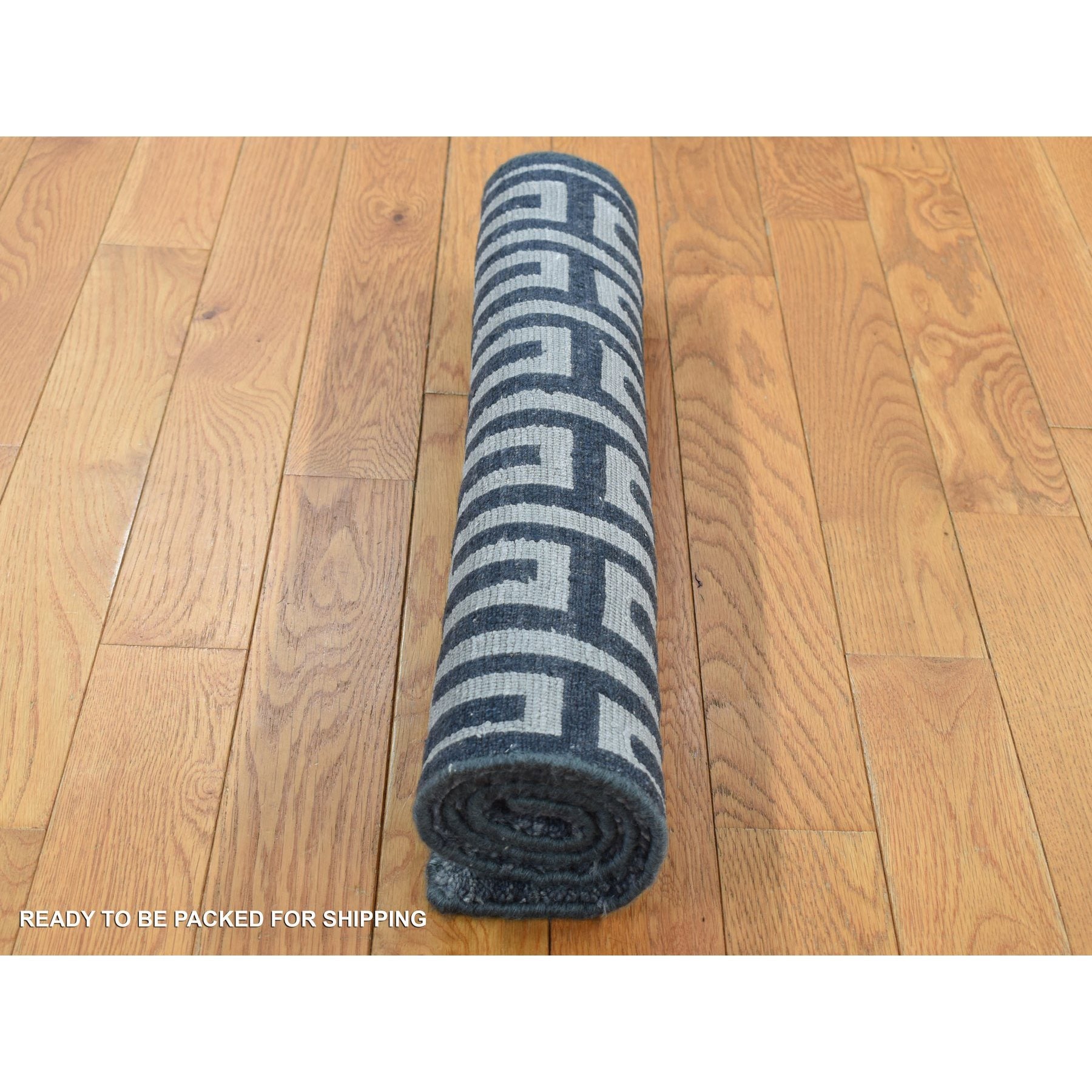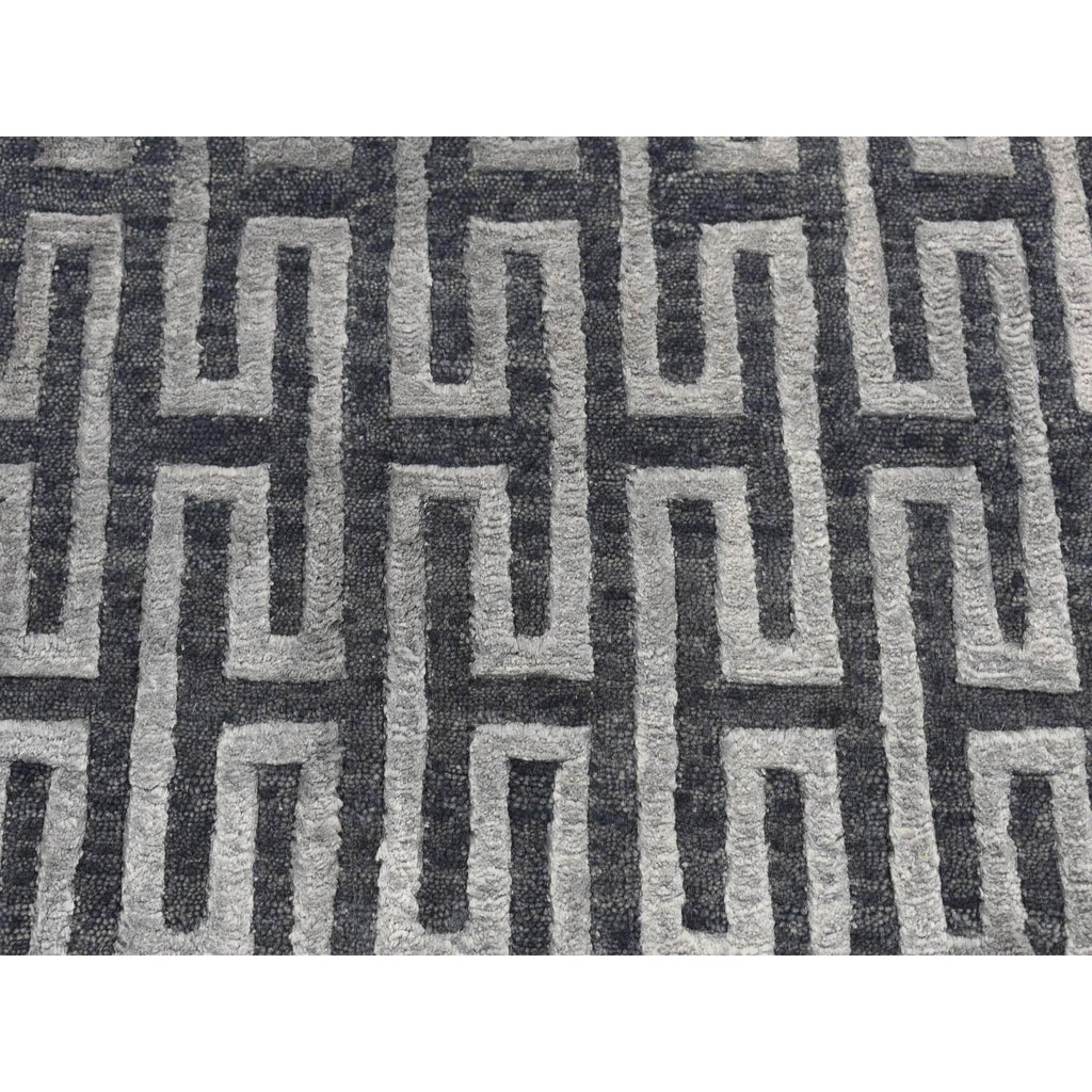 2'x2'10" Charcoal Gray, Wool And Silk, Modern Roman Key Design, Hand Knotted, Sample Oriental Rug FWR526926