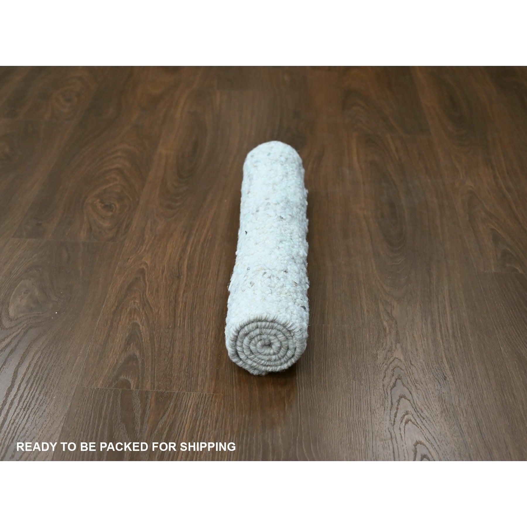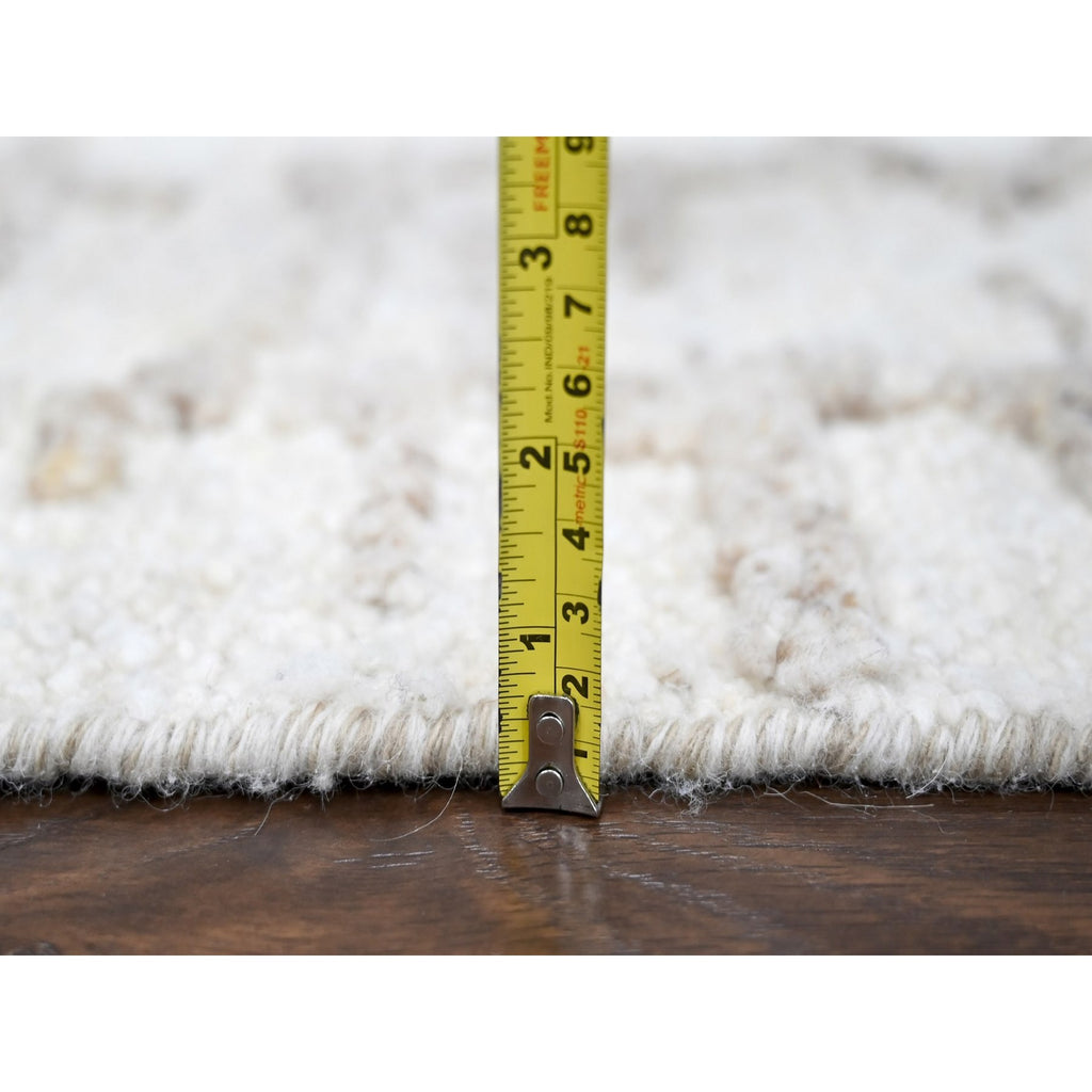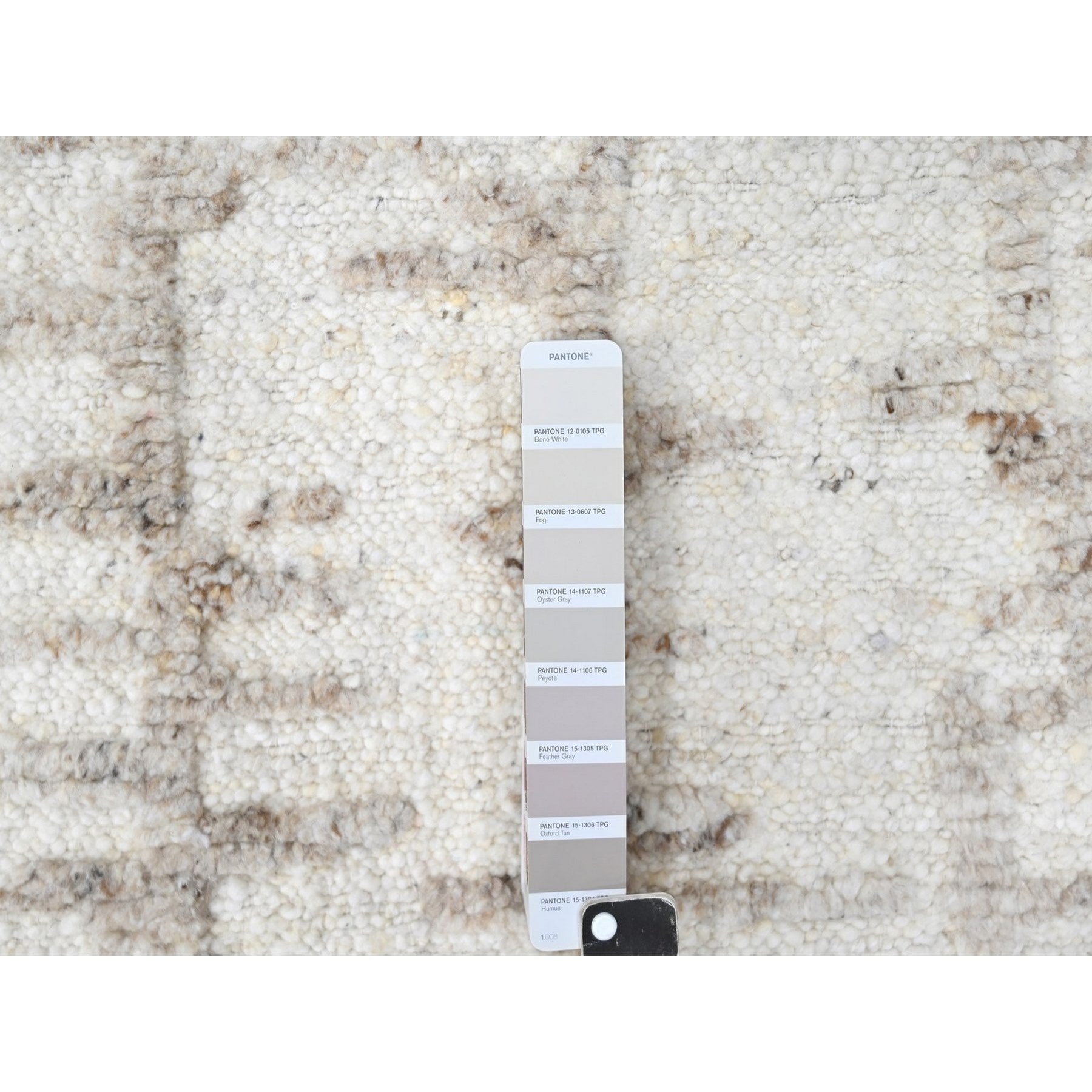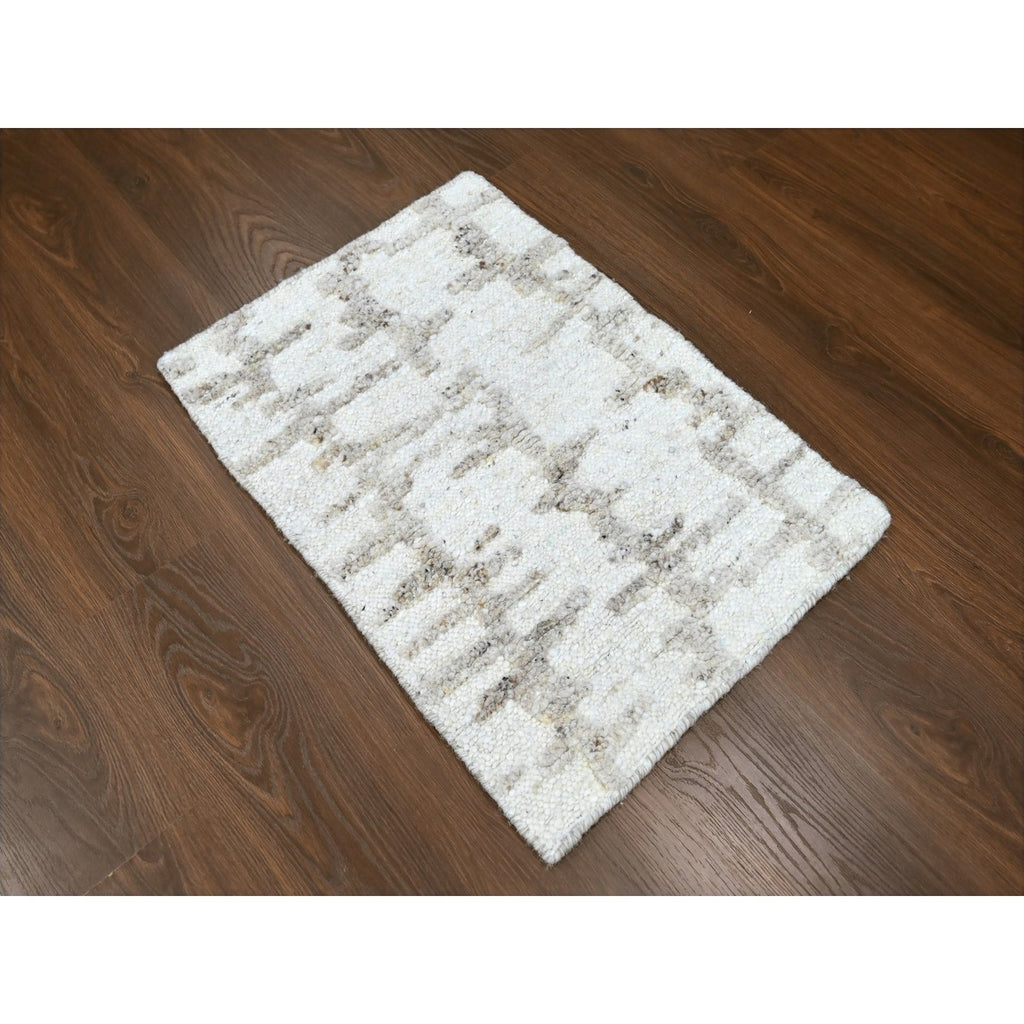 2'x2'10" Oyster White, Natural Wool, Minimalist Swedish Design, Hand Knotted, Mat, Sample, Oriental Rug FWR62136