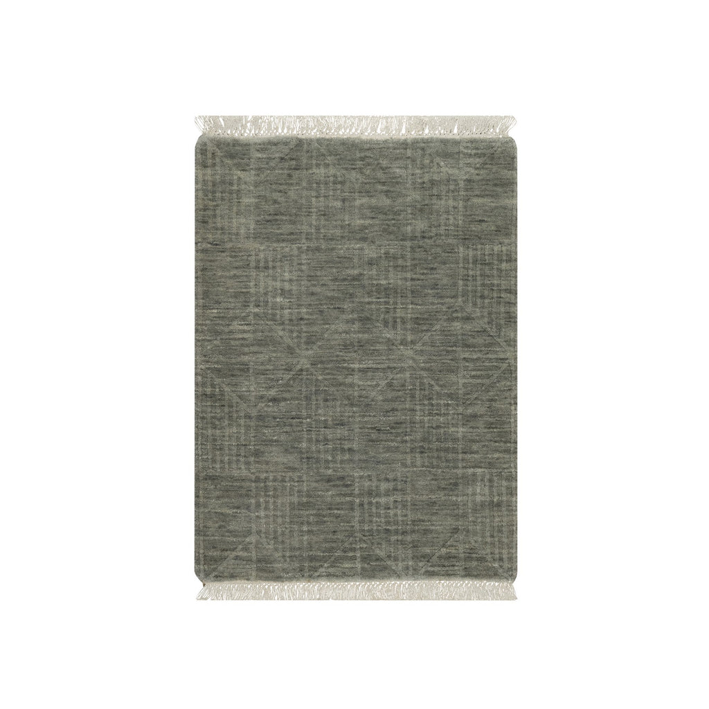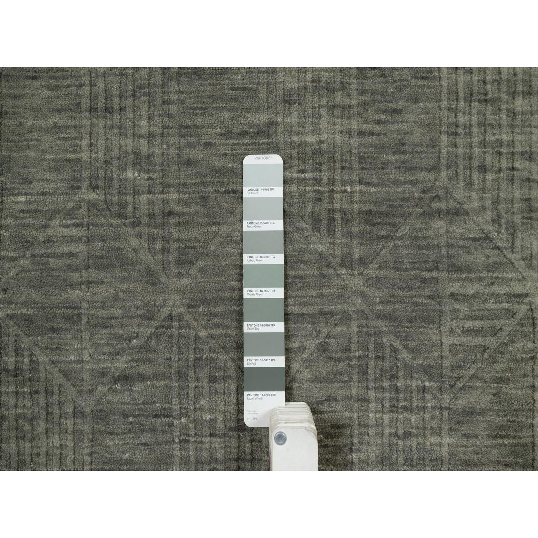 2'x2'8" Iceberg Green, Geometric Design, Hand Loomed, Pure Wool, Mat, Sample, Oriental Rug FWR550734