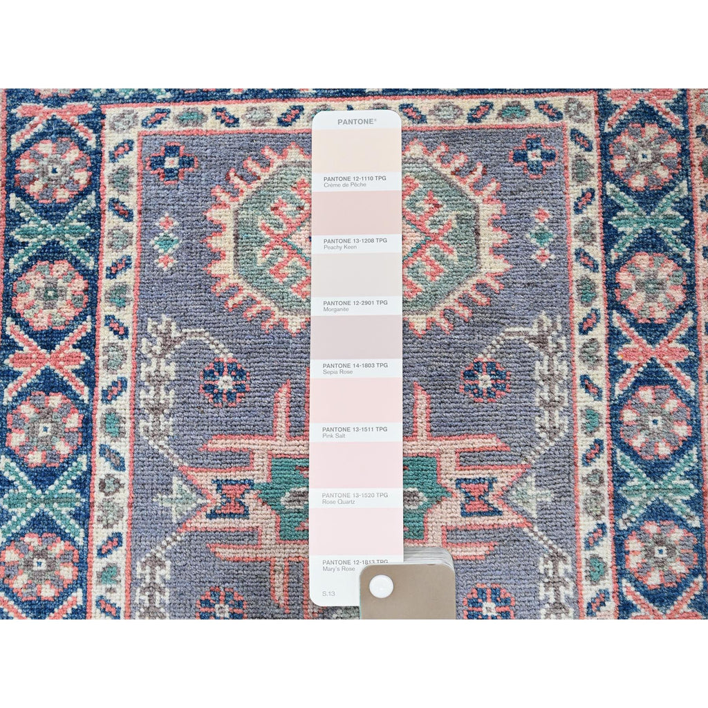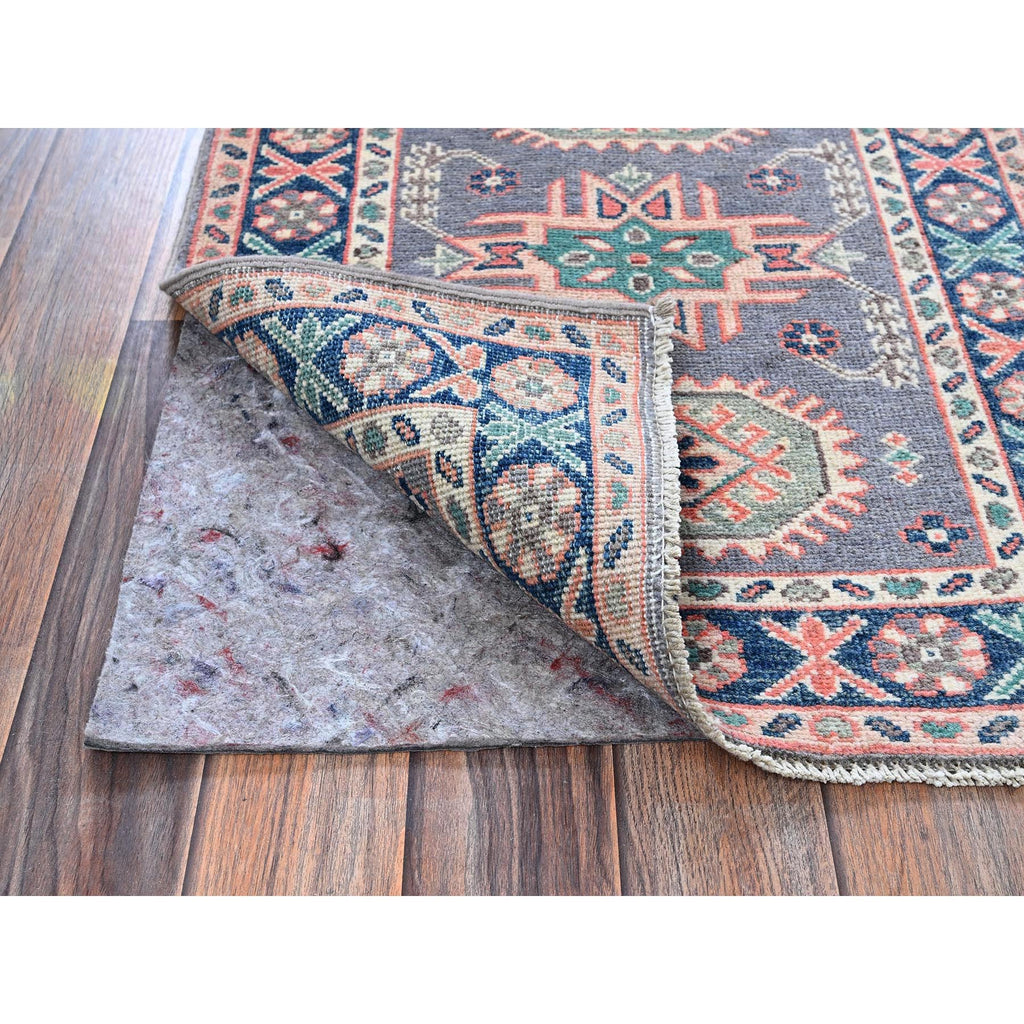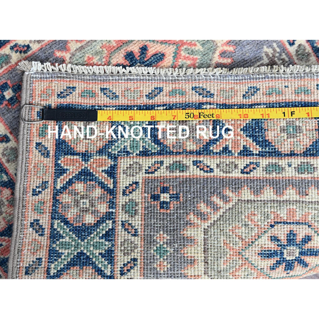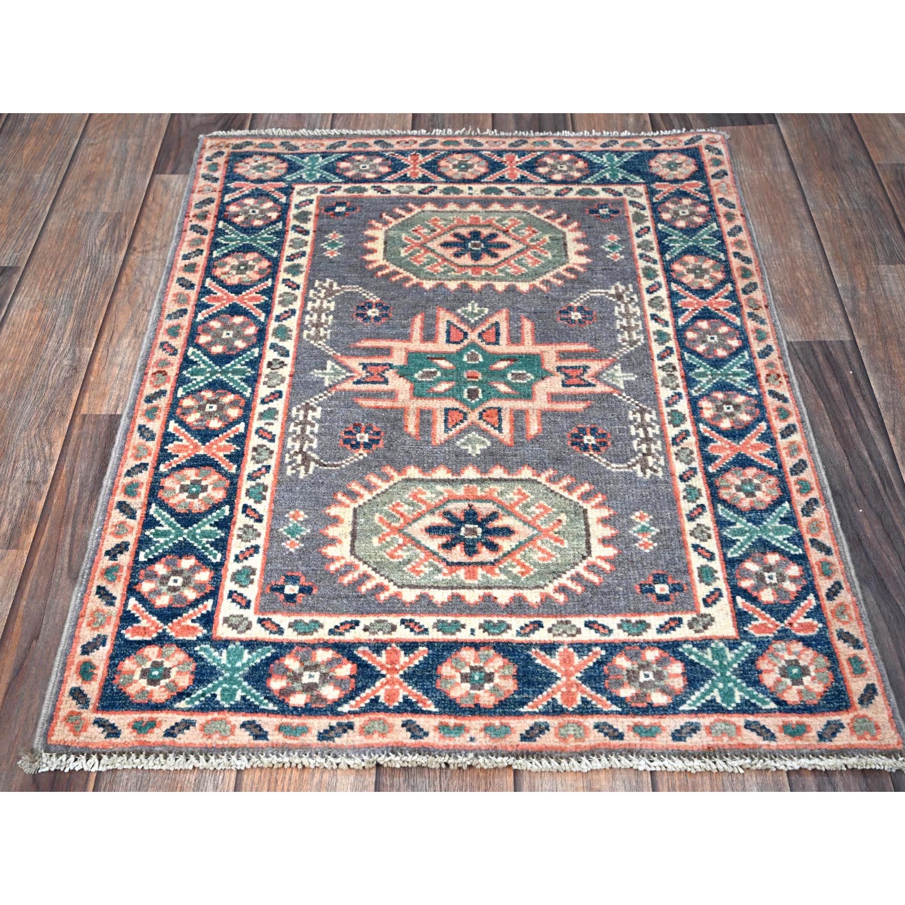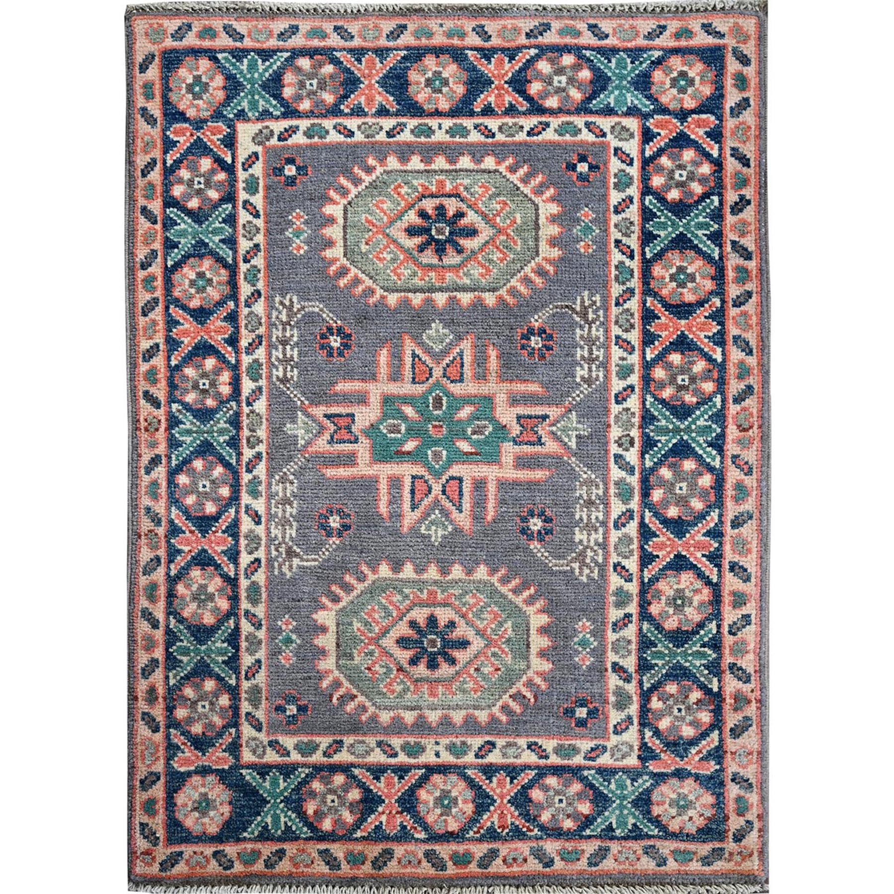 2'x2'8" Pewter Gray, Kazak With Geometric Pattern, Soft And Shiny Wool, Hand Knotted, Vegetable Dyes, Denser Weave, Sample, Mat, Oriental Rug FWR2208