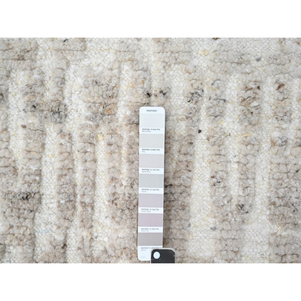 2'x2'9" Bone White, Minimalist Swedish Design, Hand Knotted, Organic Wool, Sample, Mat, Oriental Rug FWR62076