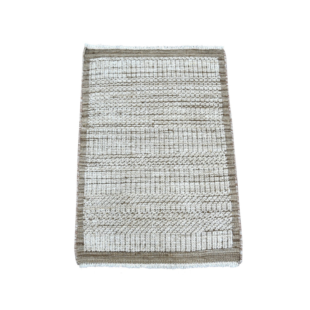 2'x2'9" Chiffon White, Zep Grass Design, Modern, Hand Knotted, Pure Wool, Sample, Mat, Oriental Rug FWR126636