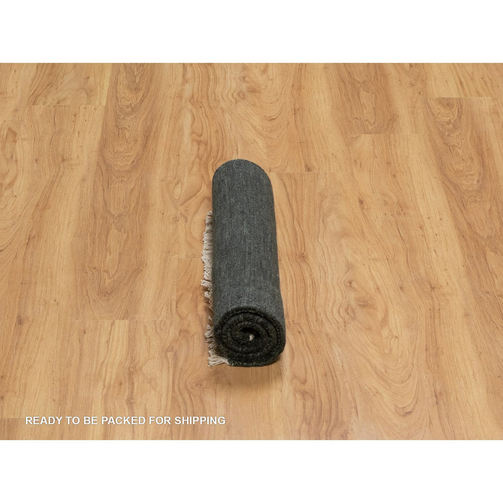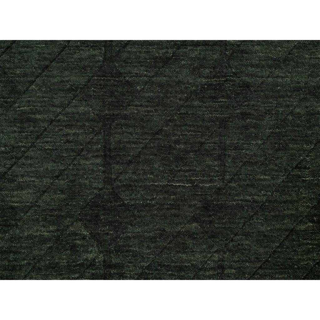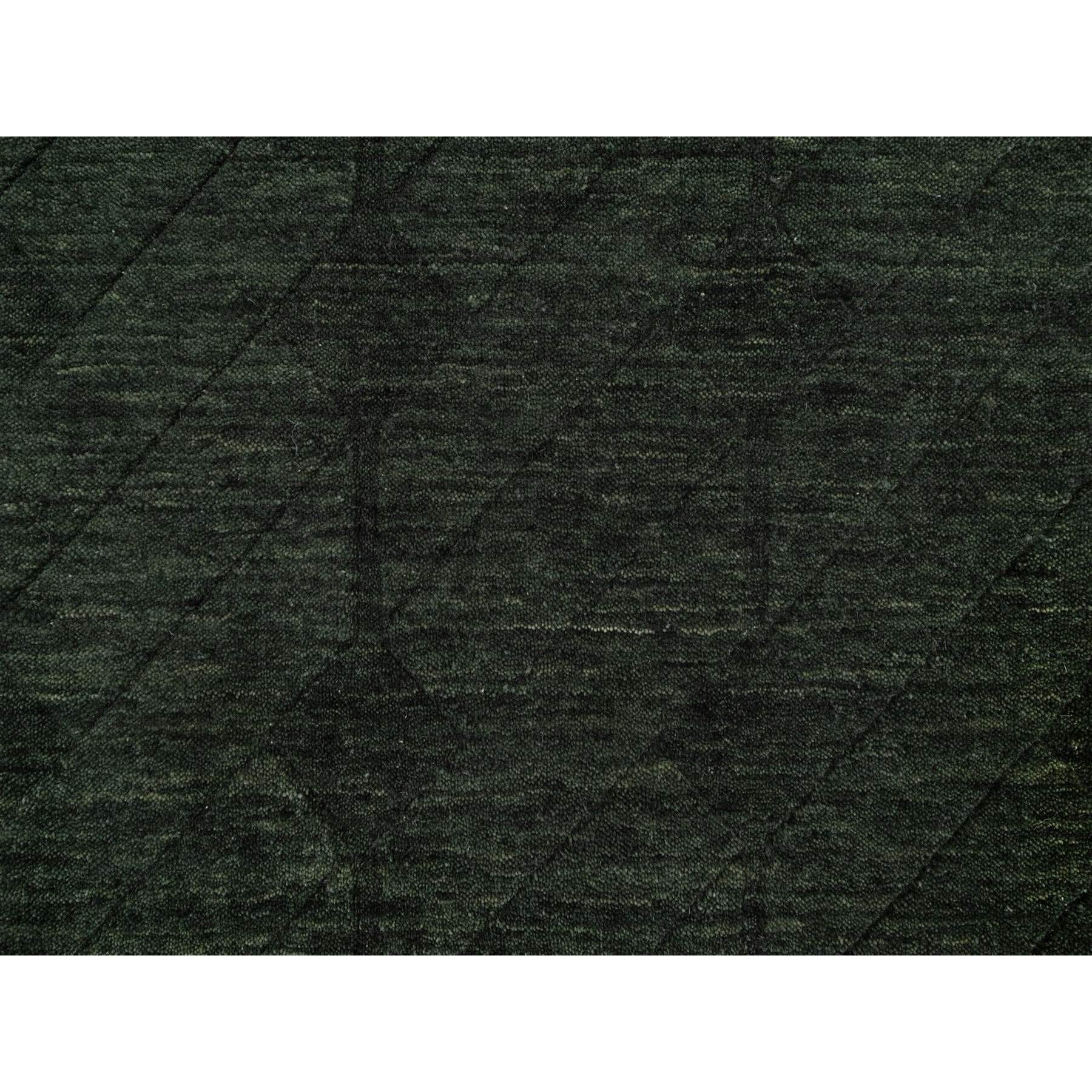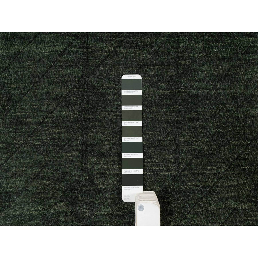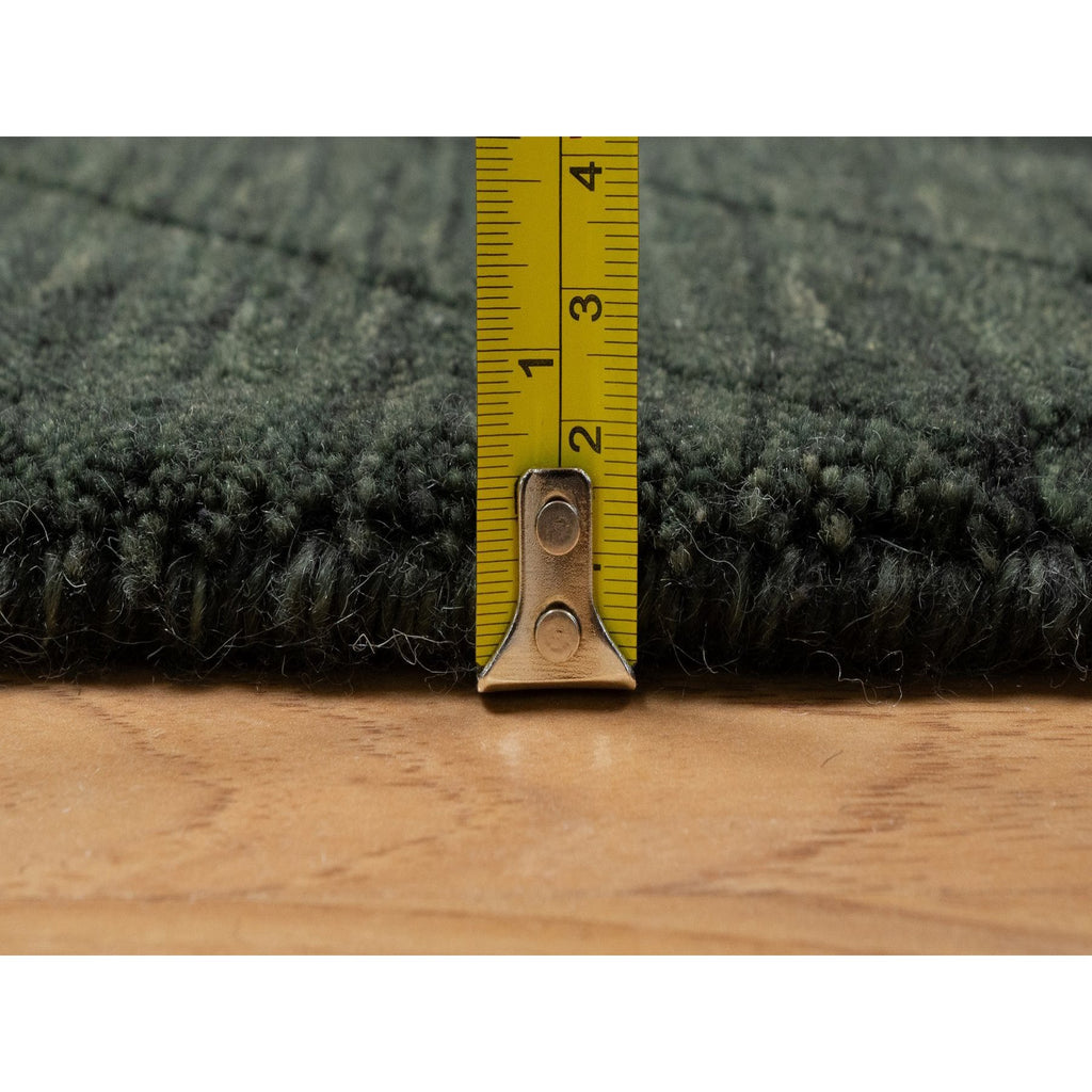 2'x2'9" Seaweed Green, Stripes Design, Hand Loomed, Pure Wool, Sample, Mat, Oriental Rug FWR550680