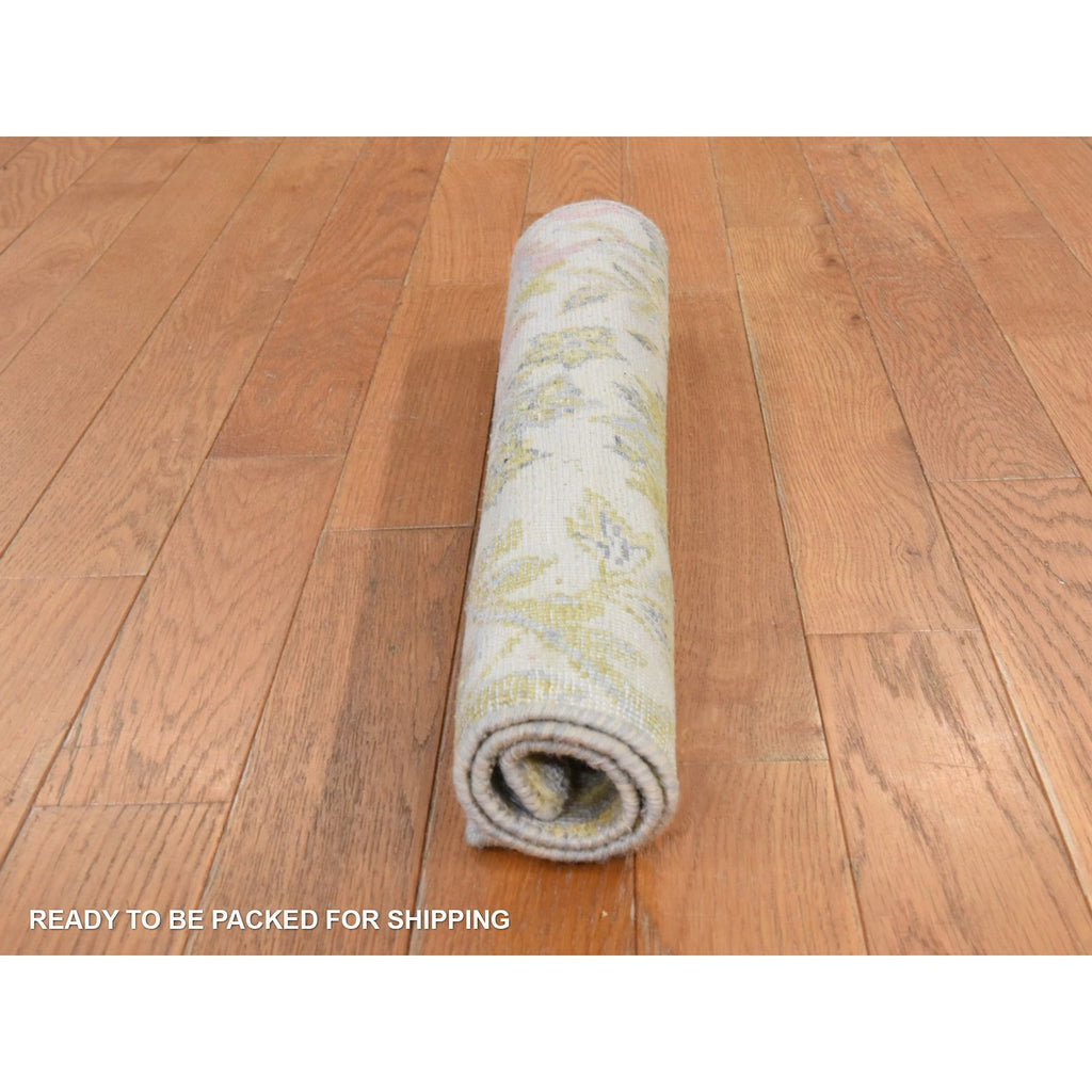 2'x2' Custard Yellow, Natural Wool And Silk, Sample, Strike Off, Bidjar Garus Design, Hand Knotted, Mat, Square, Oriental Rug FWR470658