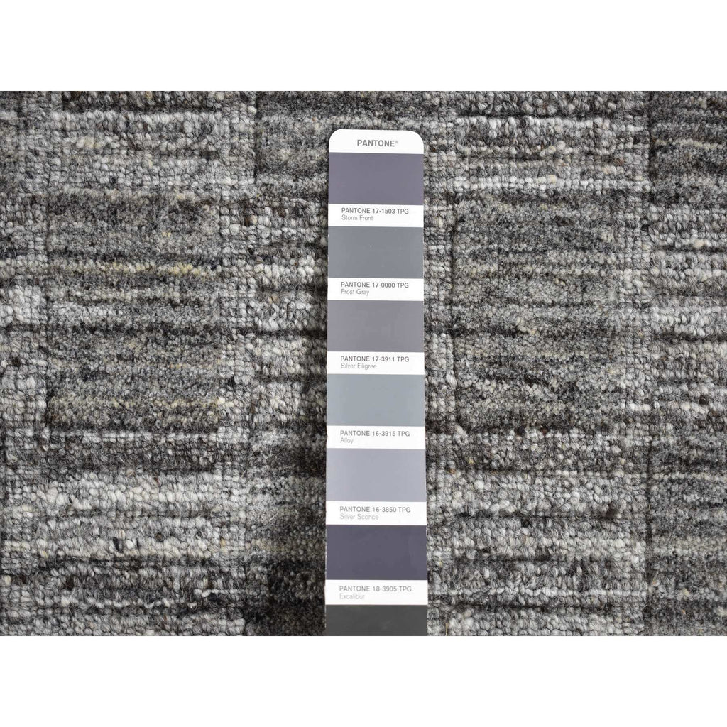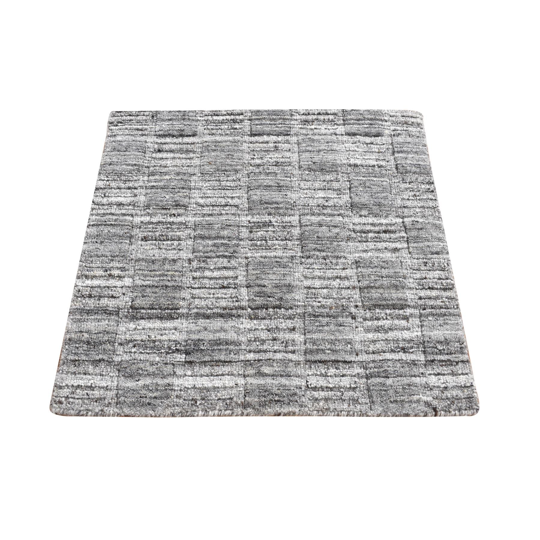 2'x2' Dim Gray, Hand Loomed, Modern Checkers Design, 100% Wool, Sample Fragment, Square, Oriental Rug FWR524910