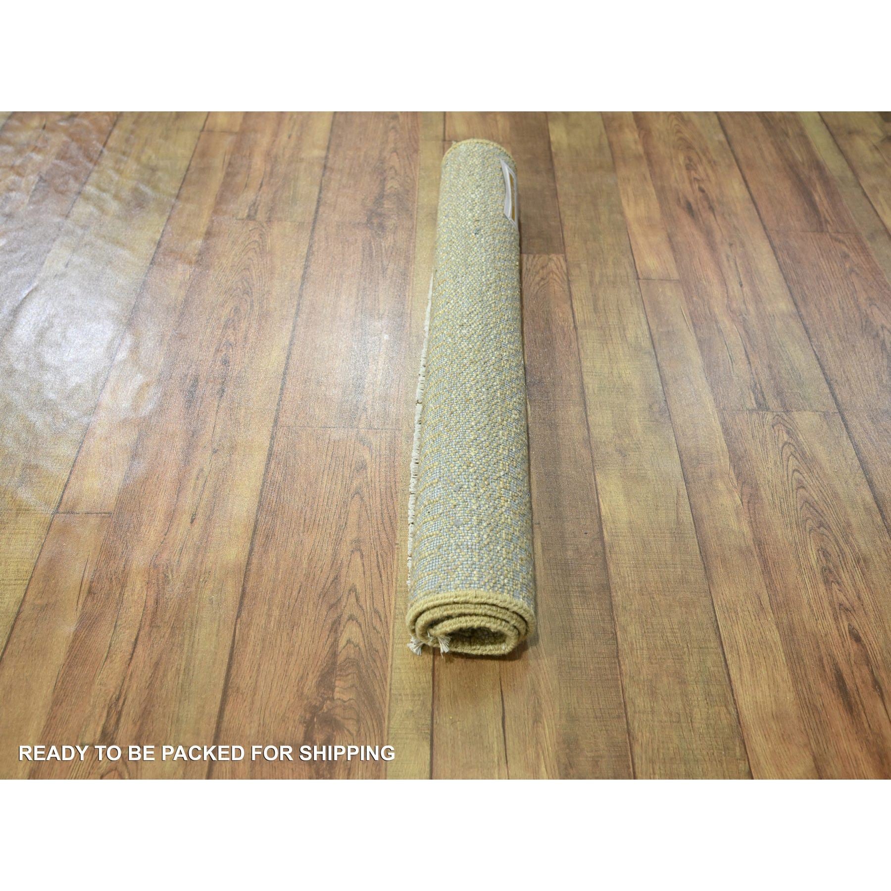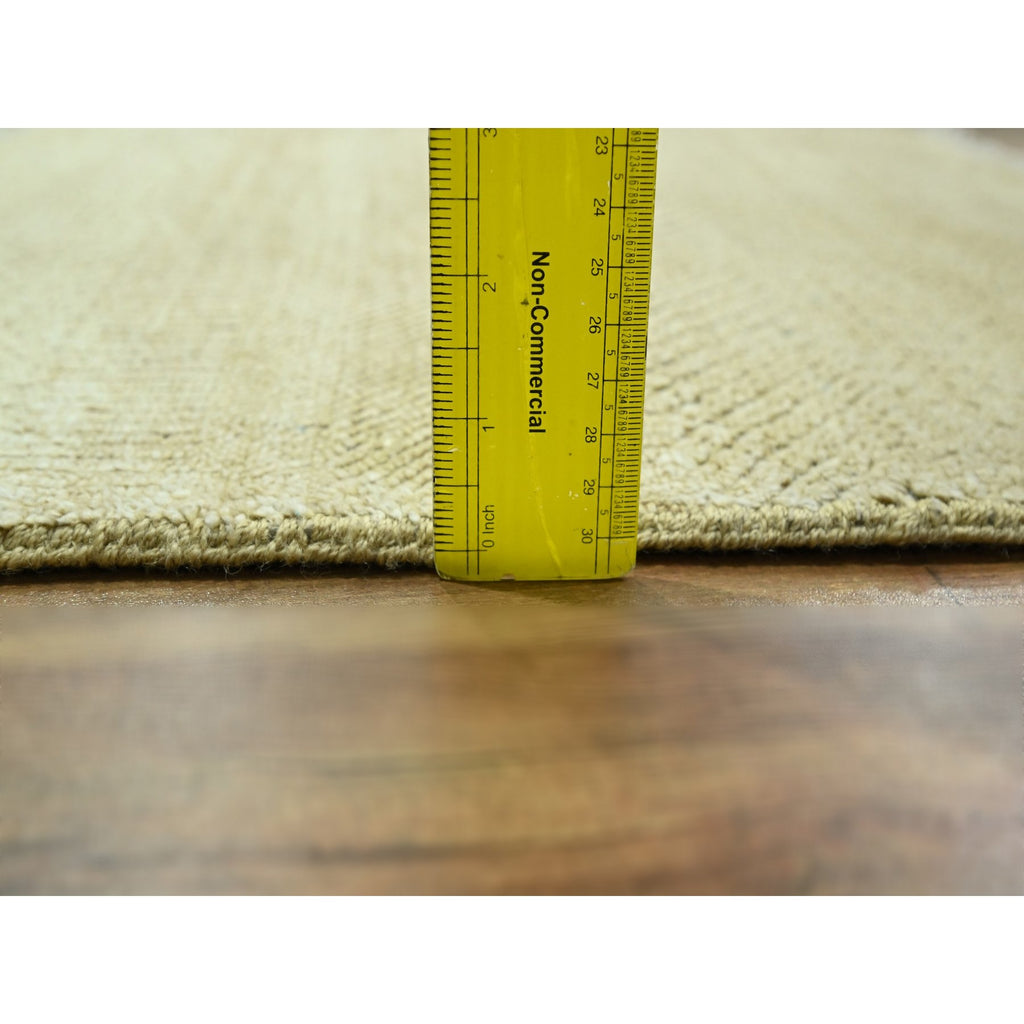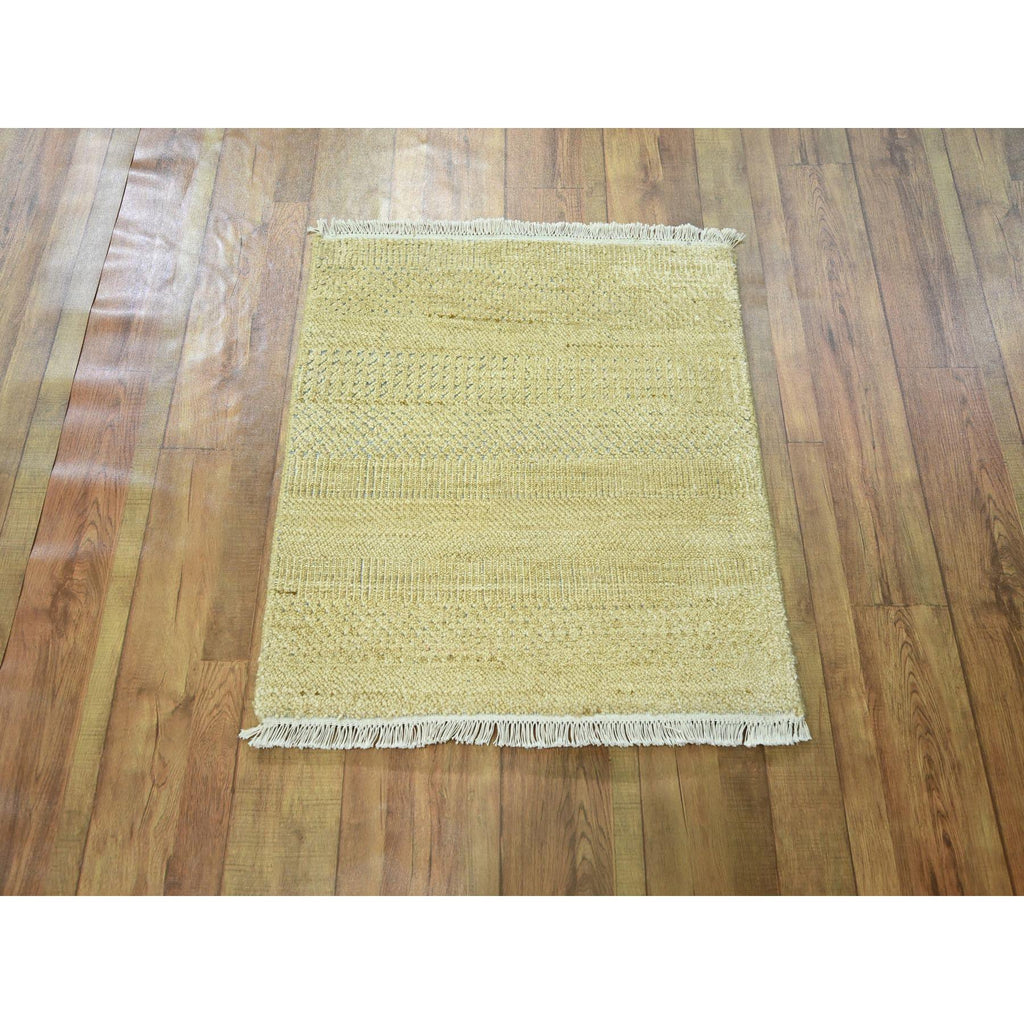 2'x2' Ecru Brown, Modern Grass Design, Wool And Silk, Hand Knotted, Denser Weave, Tone On Tone, Lush And Plush, Sample, Mat, Square, Oriental Rug FWR458118