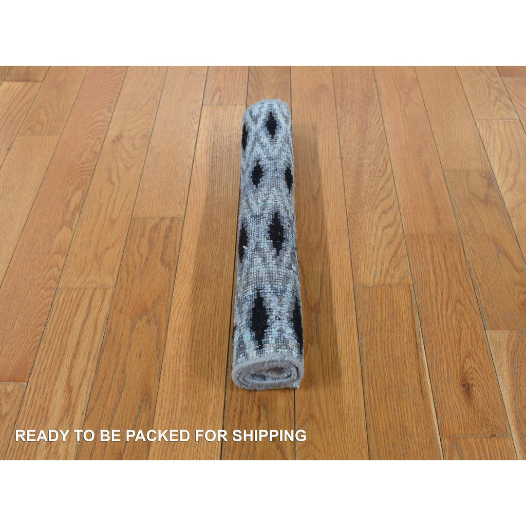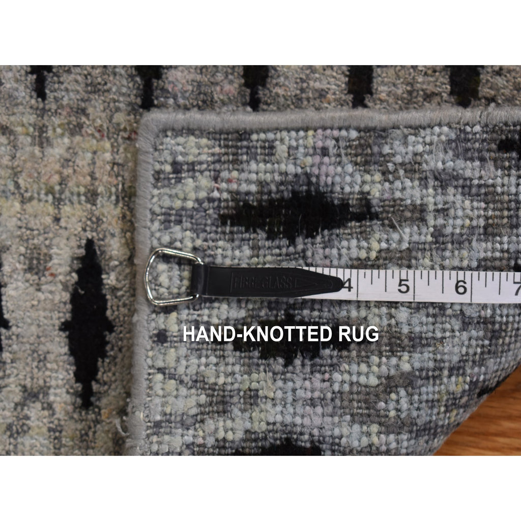 2'x2' Medium Gray, Square, Modern, Small Repetitive Intricate Design, Pure Silk With Textured Wool, Hand Knotted, Oriental Rug FWR468114