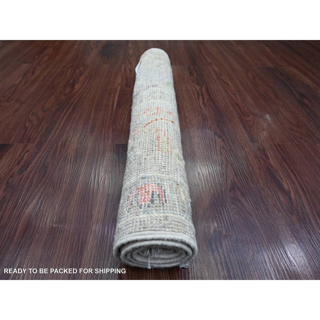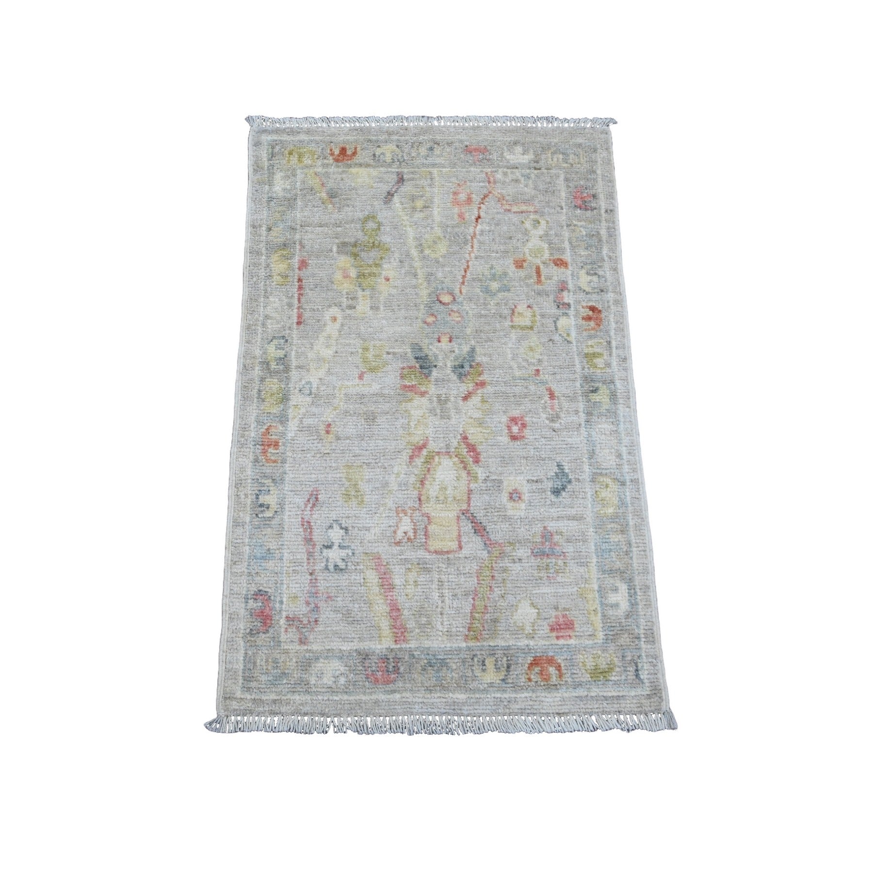 2'x3'1" Battleship Gray, Afghan Angora Oushak With Floral Pattern, Hand Knotted, Veggie Dyes, 100% Wool, Mat, Oriental Rug FWR122898