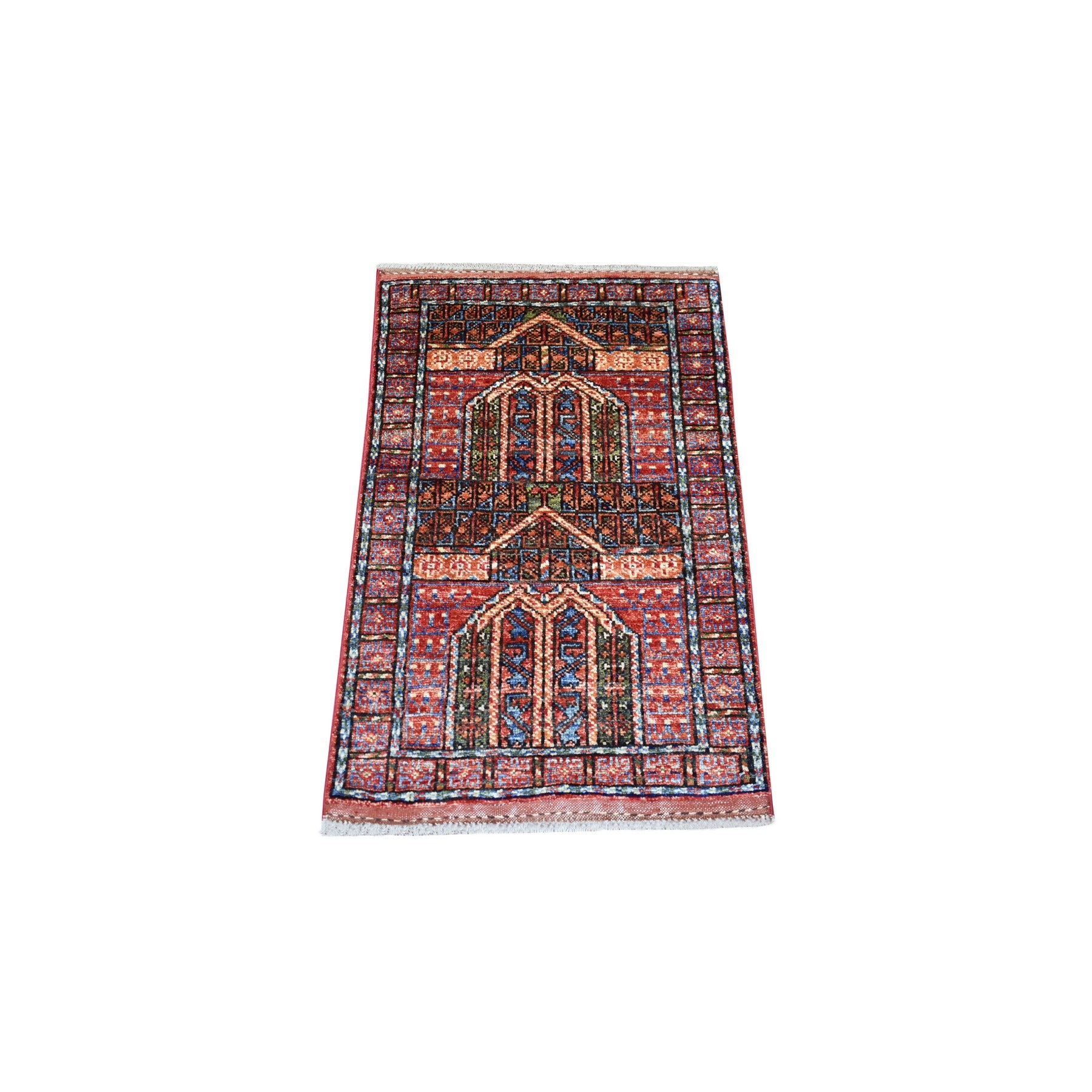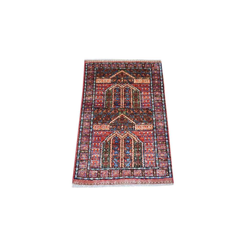 2'x3'1" Brick Red Turkeman Ersari With Prayer Design, Natural Dyes, Hand Knotted, Soft And Shiny Wool Oriental Rug FWR424902