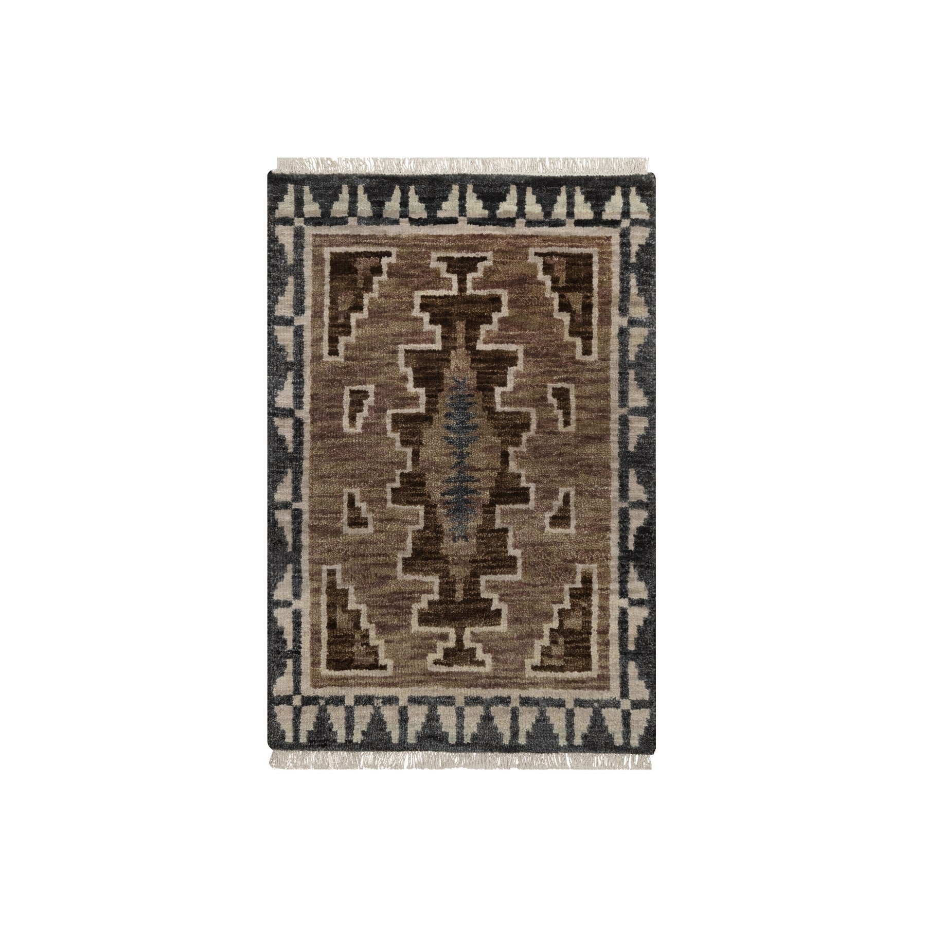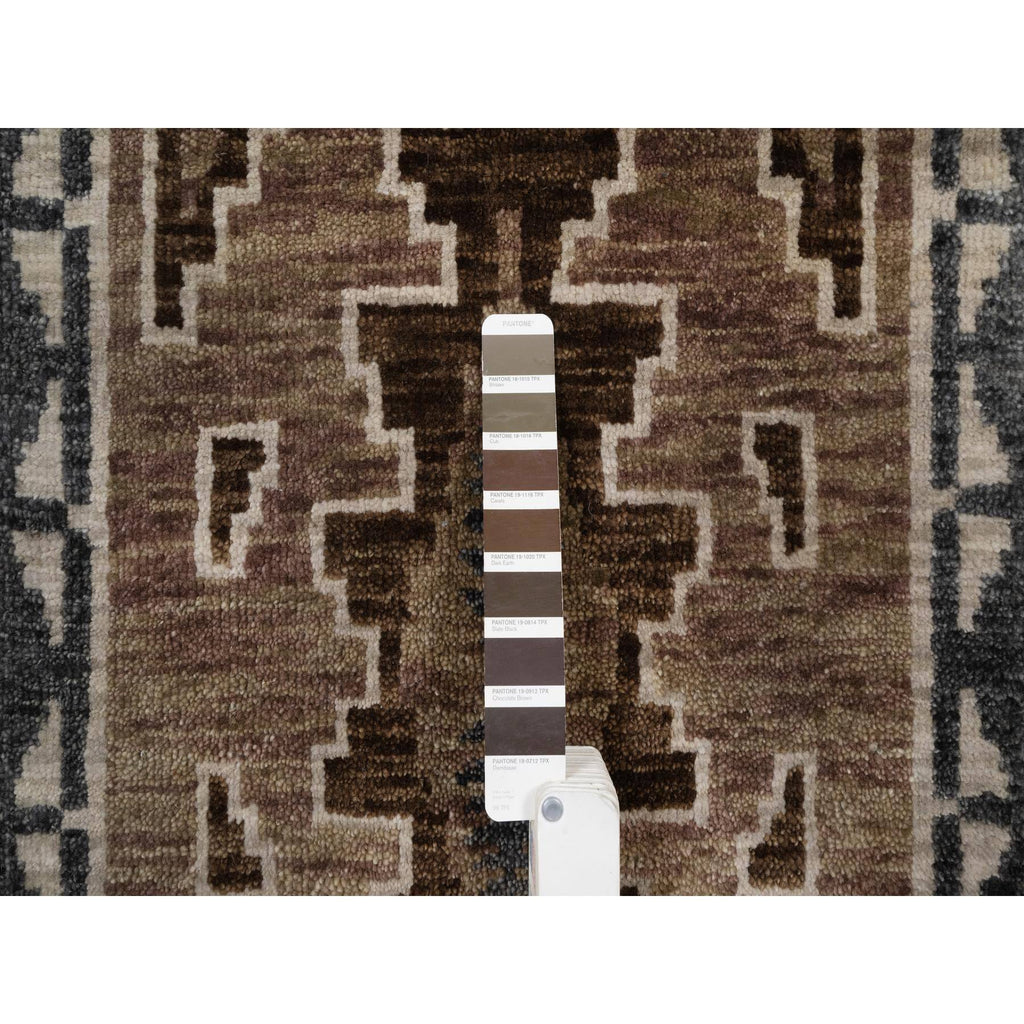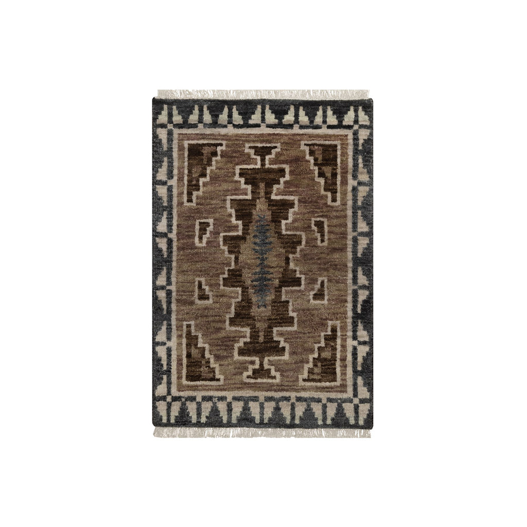 2'x3'1" Cedar Brown, Hand Knotted, Southwest American Indian Design With Piled Construction, Plush And Lush, Pure Wool, Mat, Sample, Oriental Rug FWR551190