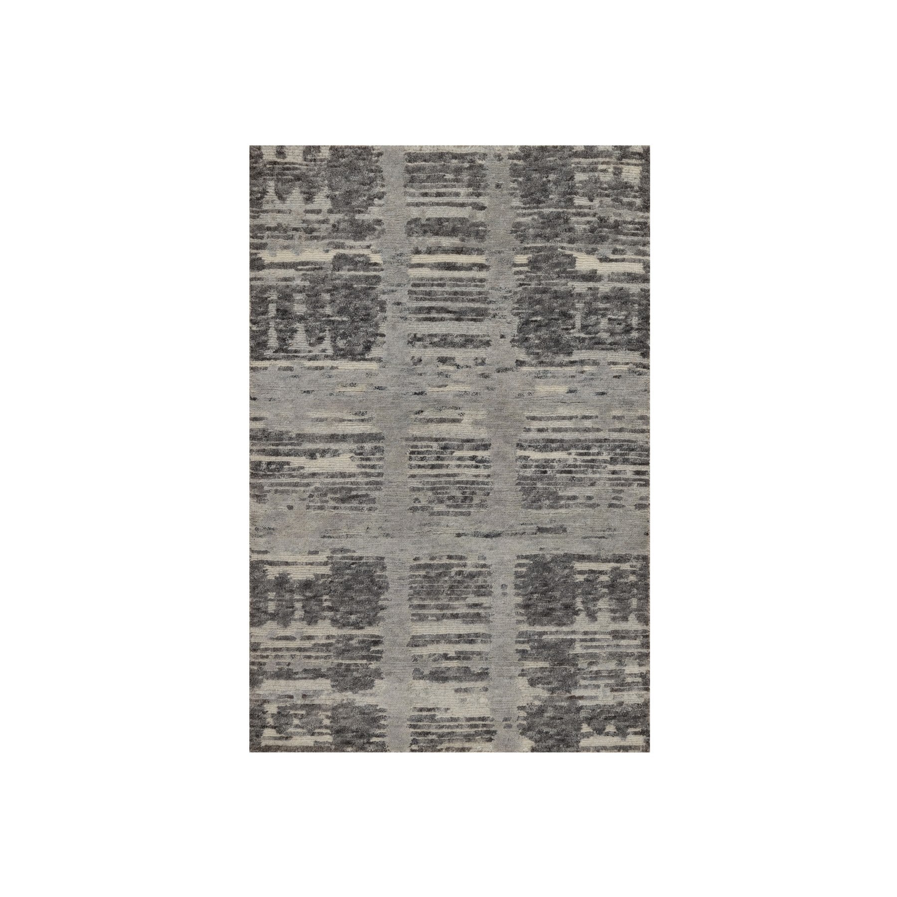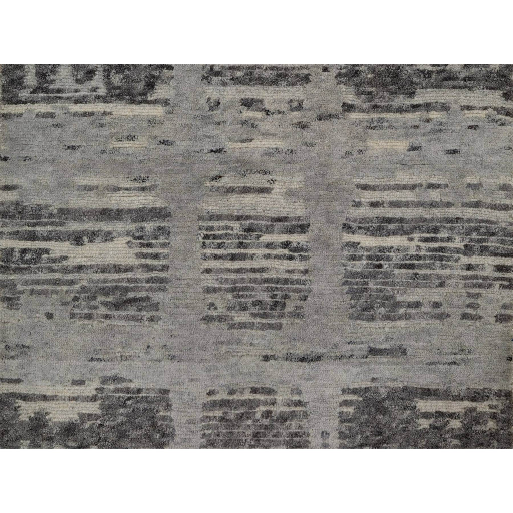 2'x3'1" Fossil Gray, Modern Criss Cross Erased Design, Hand Knotted, Hand Spun Undyed Natural Wool, Mat, Sample, Oriental Rug FWR550866
