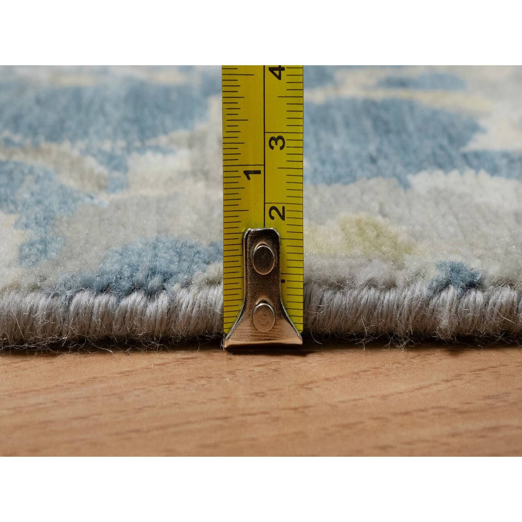 2'x3'1" Mallard Blue, Broken Pattern With Oushak Design, 100% Wool, Hand Knotted, Borderless, Mat, Sample, Oriental Rug FWR548772
