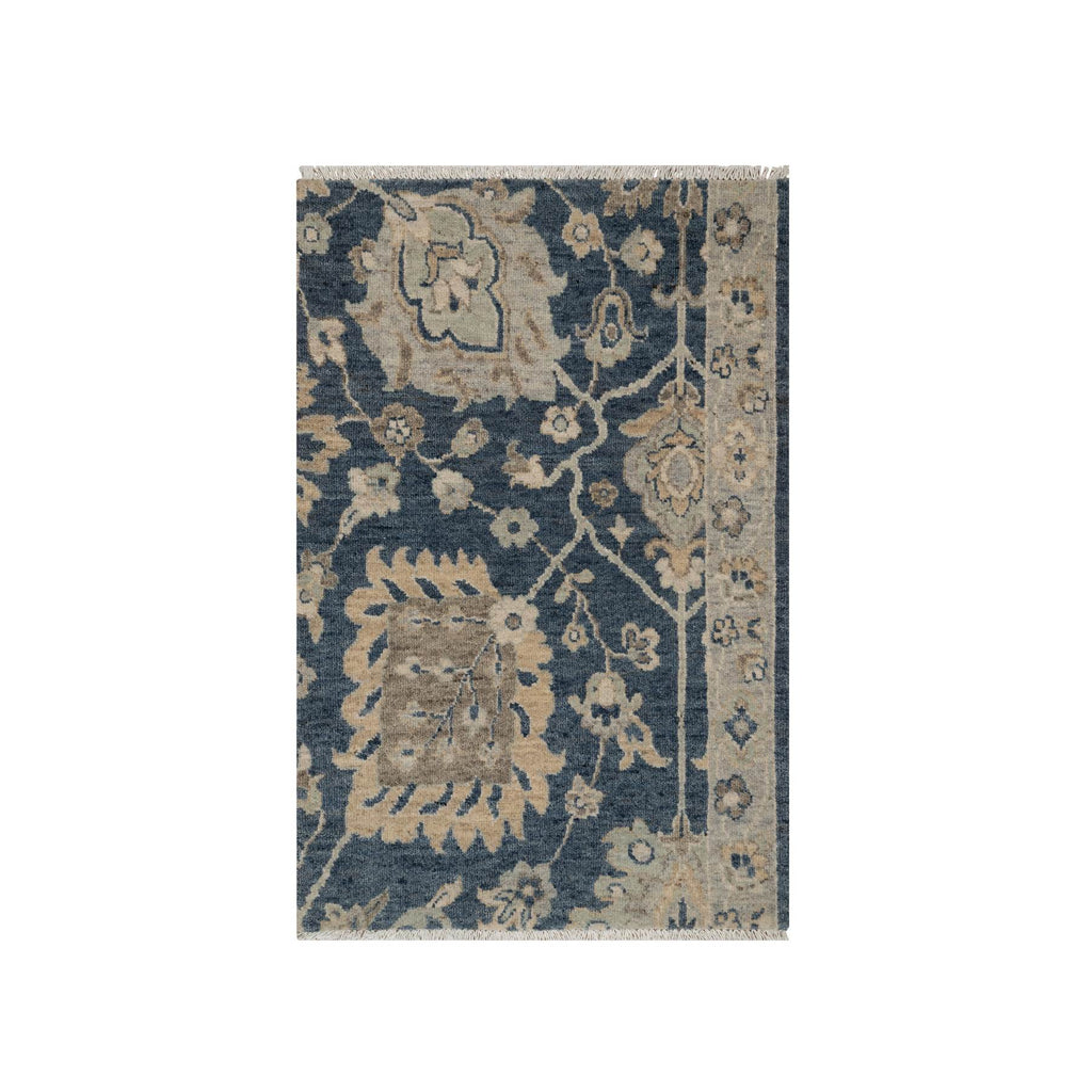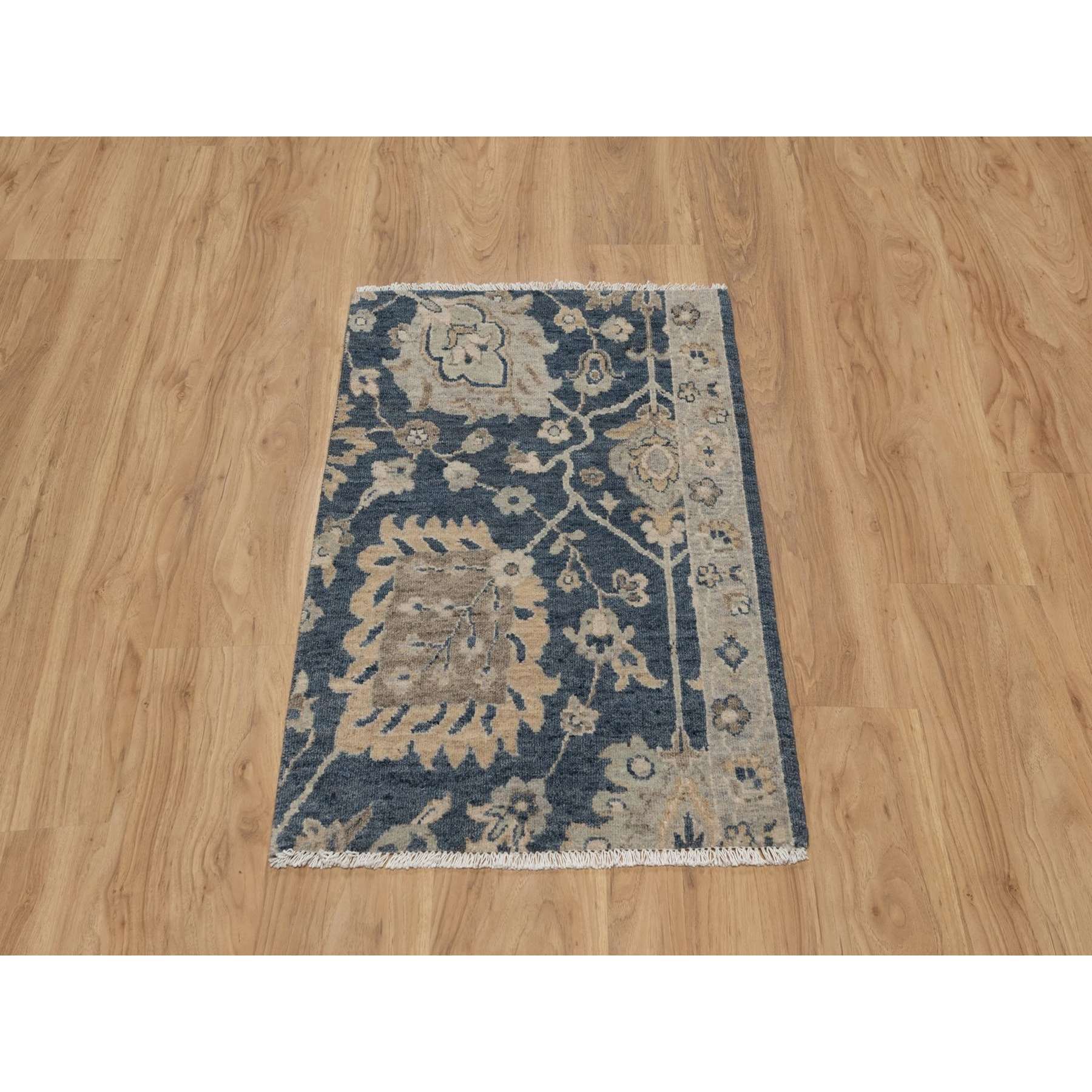 2'x3'1" Navy Blue, Oushak Design, 100% Wool, Hand Knotted, Fragment, Sample, Mat, Oriental Rug FWR548754