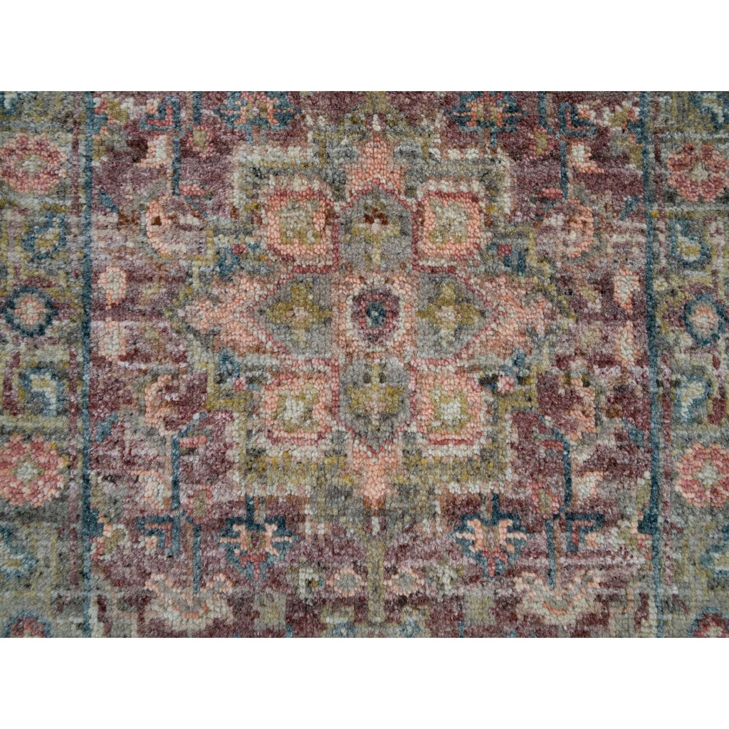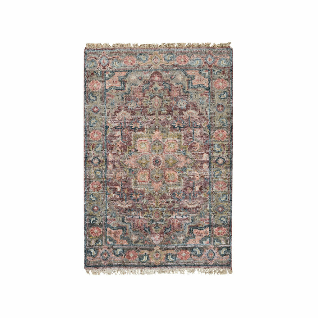 2'x3'1" Wine Red, Organic Wool, Heriz Revival, Hand Knotted, Soft To The Touch Pile, Mat Oriental Rug FWR395118