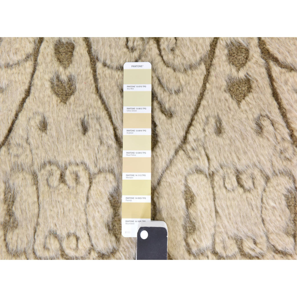 2'x3'2" Beige, High And Low Textured Design, Natural Undyed Wool, Hand Knotted, Mat, Sample, Oriental Rug FWR470832