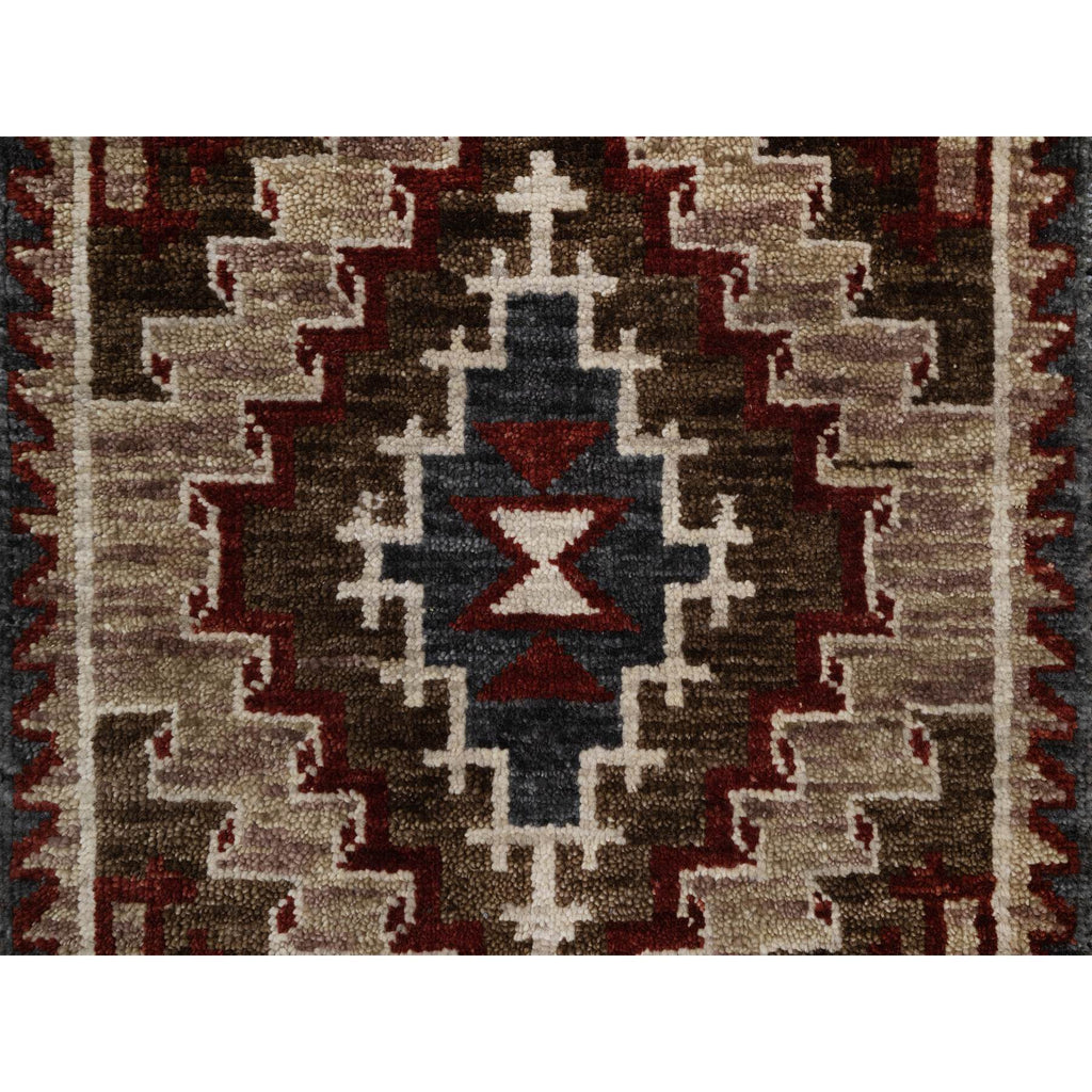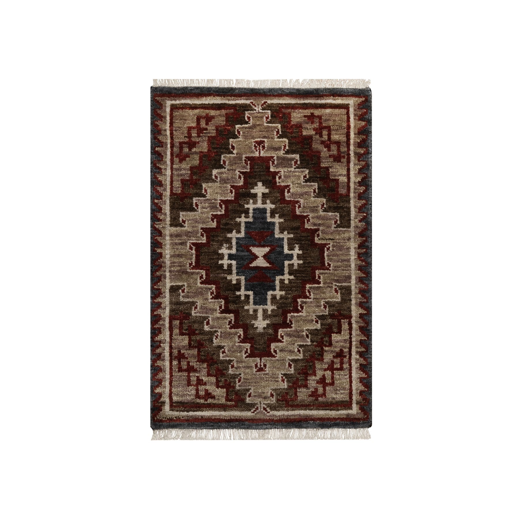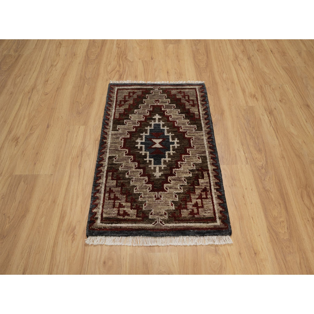 2'x3'2" Chocolate Brown, Southwest American Indian Design With Piled Construction, Plush And Lush, Hand Knotted, Pure Wool, Mat, Sample, Oriental Rug FWR551178