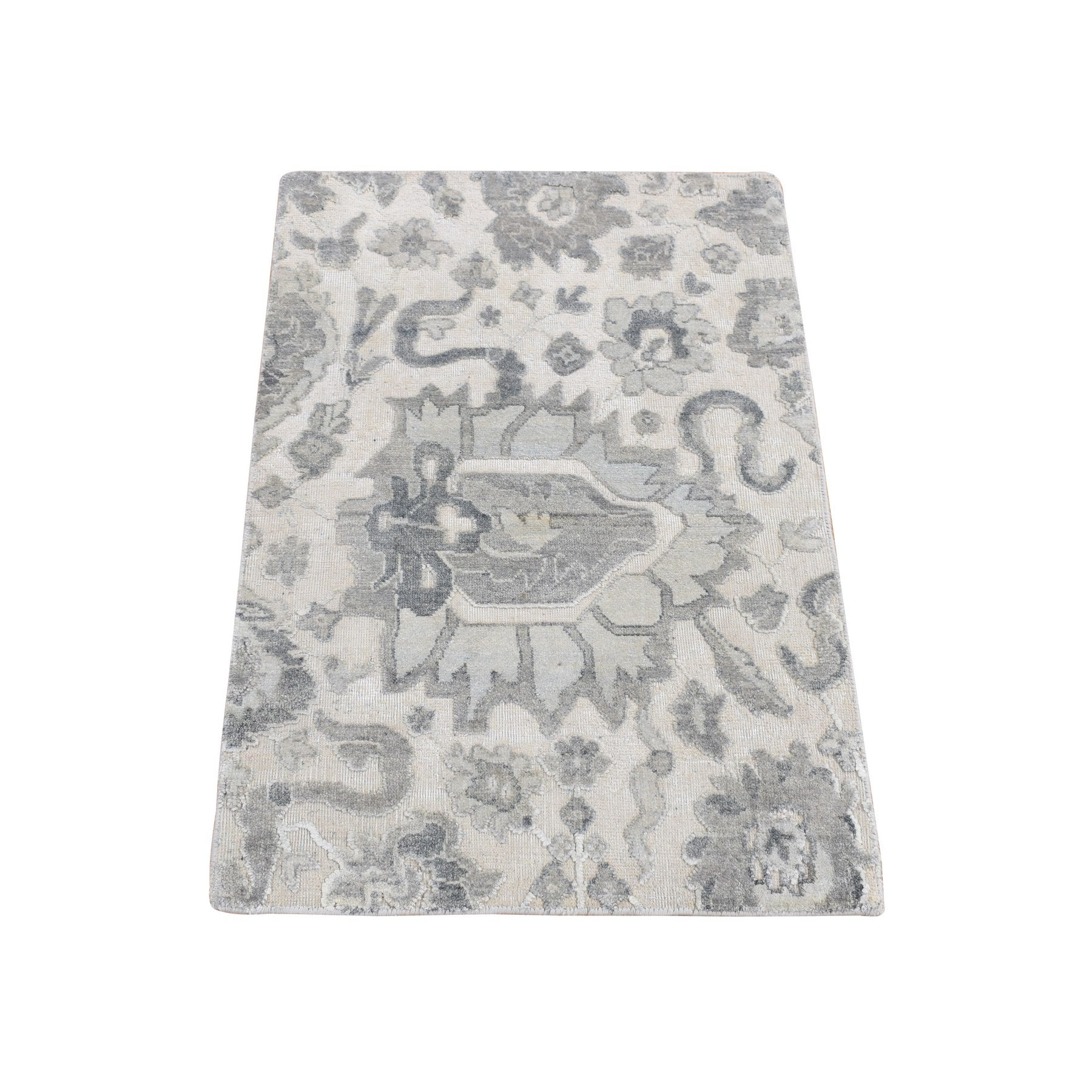 2'x3'2" Gainsboro Gray, Silk With Textured Wool, Mahal Design, Hand Knotted, Sample Mat Oriental Rug FWR526674