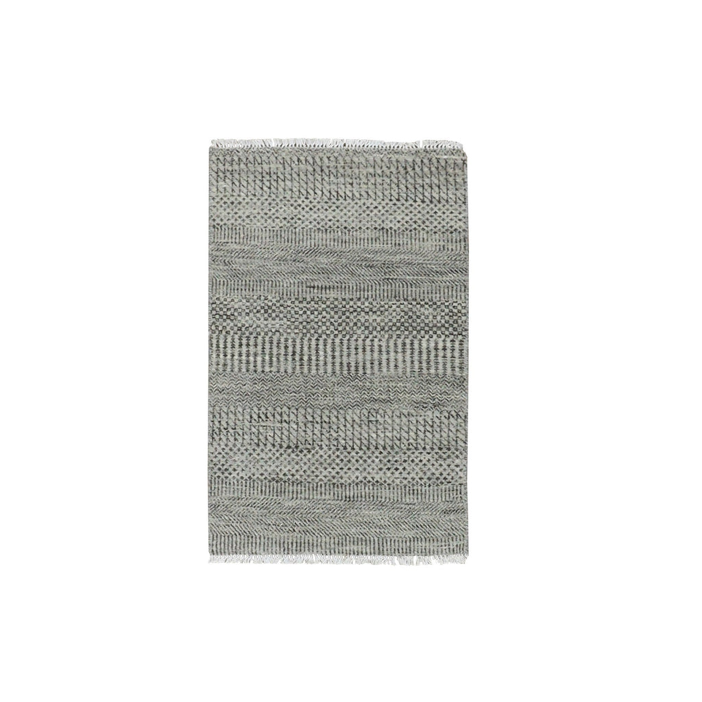 2'x3'2" Gentle Gray, Modern Hand Knotted Grass Design, Tone On Tone, Undyed 100% Wool, Mat Oriental Rug FWR478260