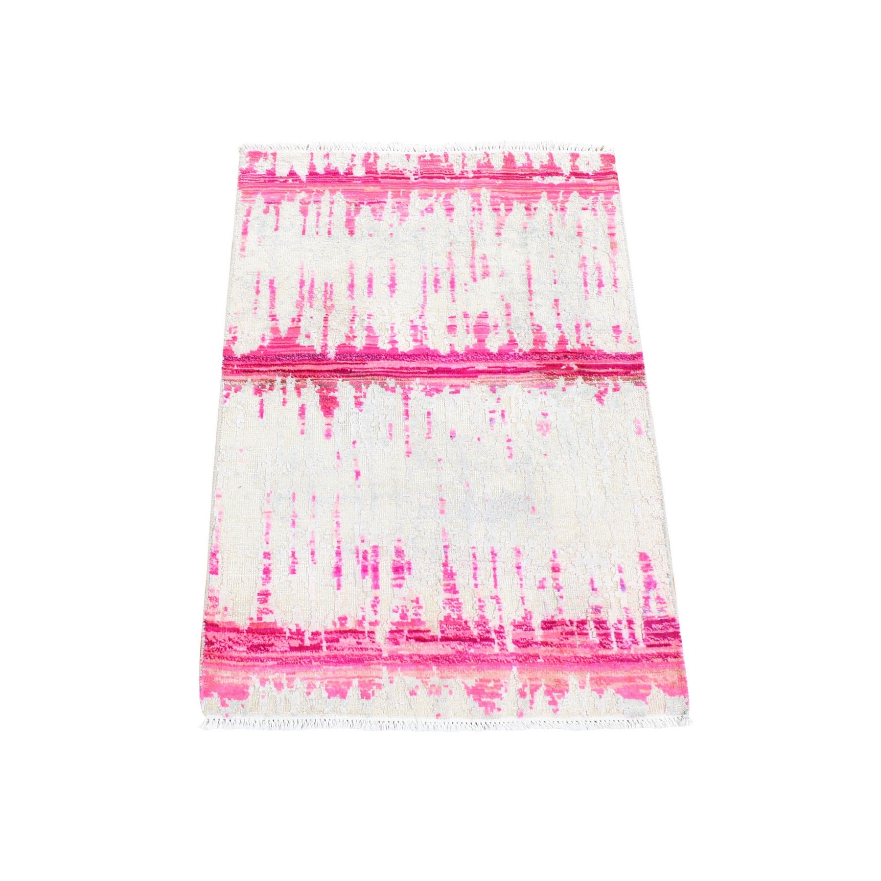 2'x3'2" Ivory And Pink, Cardiac Design, Silk With Textured Wool, Modern, Hand Knotted, Mat, Oriental Rug FWR482466
