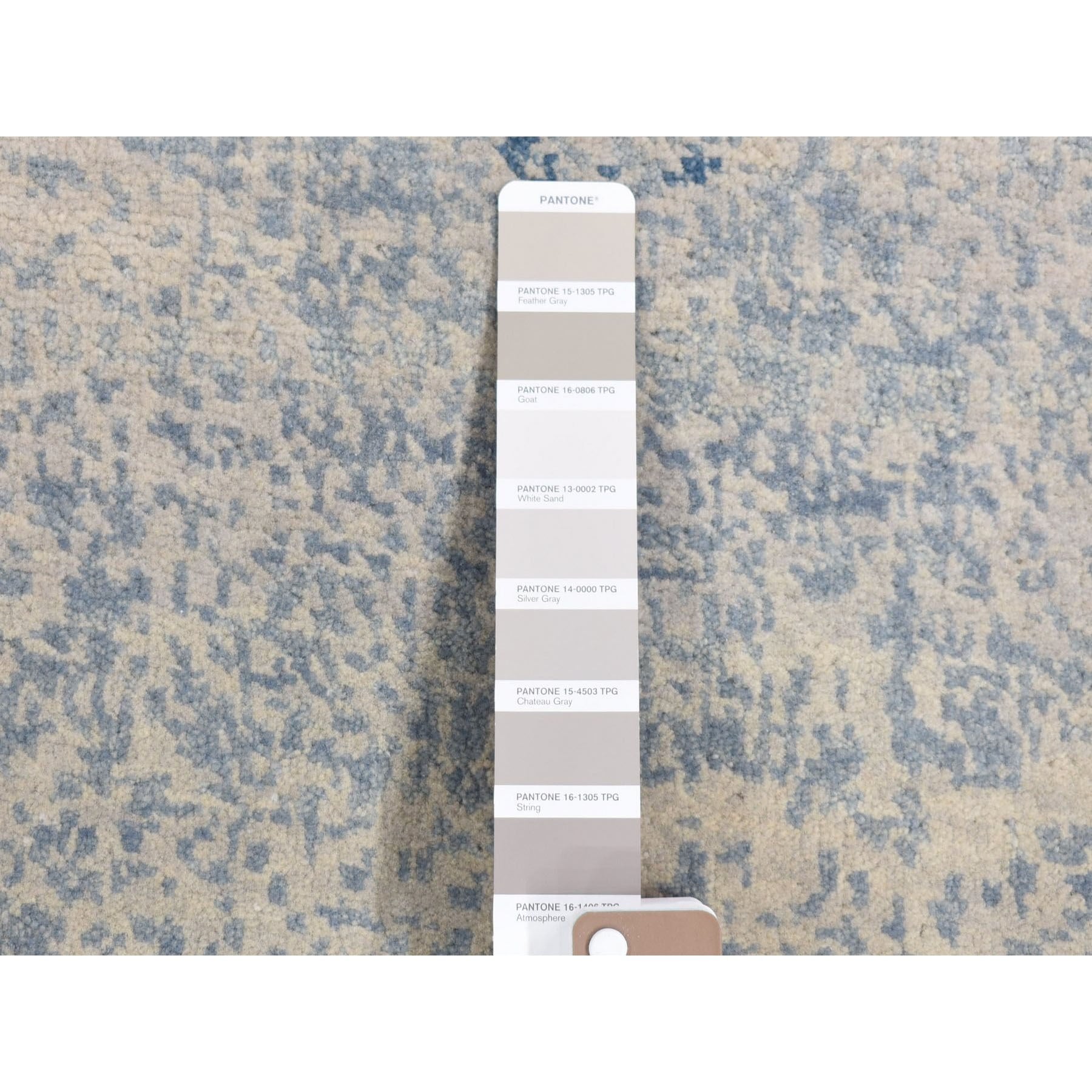 2'x3'2" Light Gray With Touches Of Blue, Modern Design, 100% Wool, Hand Knotted, Mat Oriental Rug FWR482568