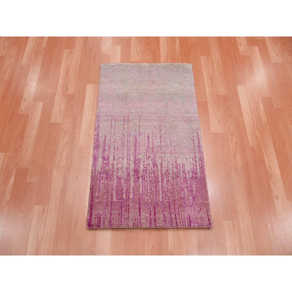 2'x3'2" Pink Vertical Ombre Design Natural Wool Hand Knotted Oriental Mat Rug FWR450138