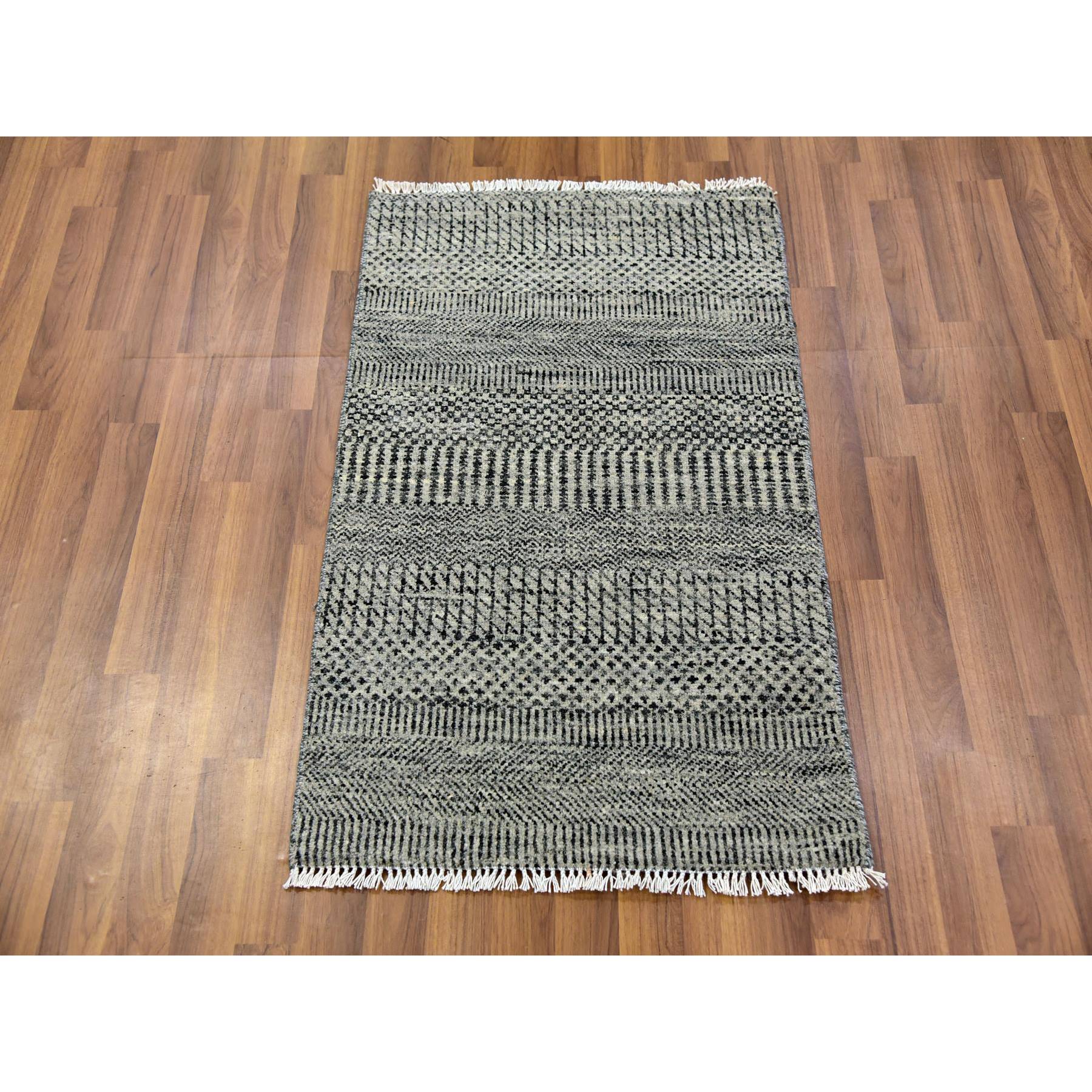 2'x3'2" Platinum Gray, Hand Knotted, Modern Grass Design, Tone On Tone, Natural Undyed Wool, Mat Oriental Rug FWR478254