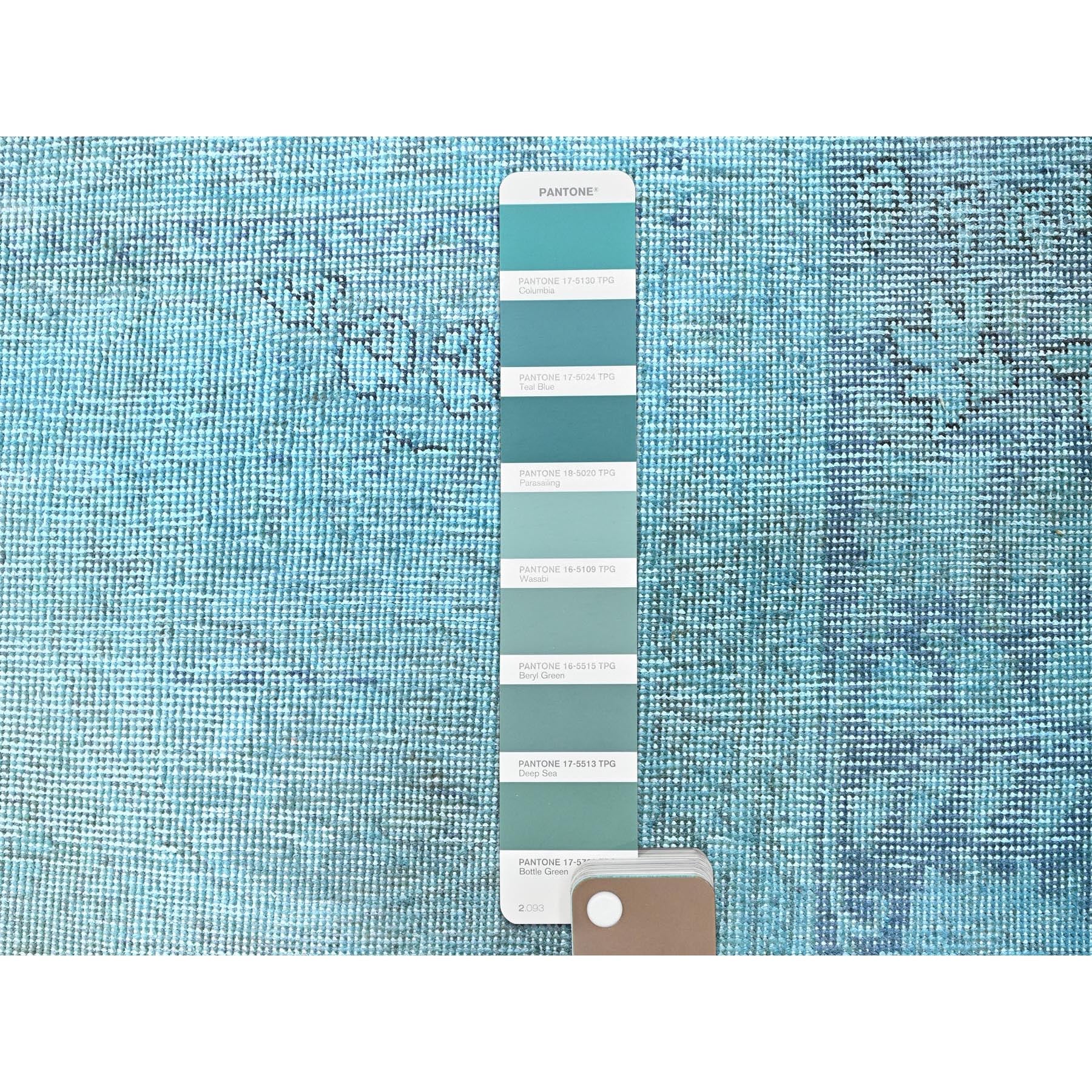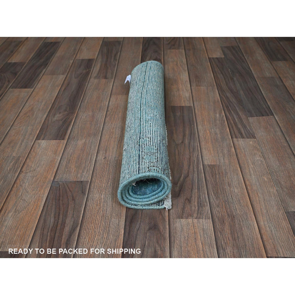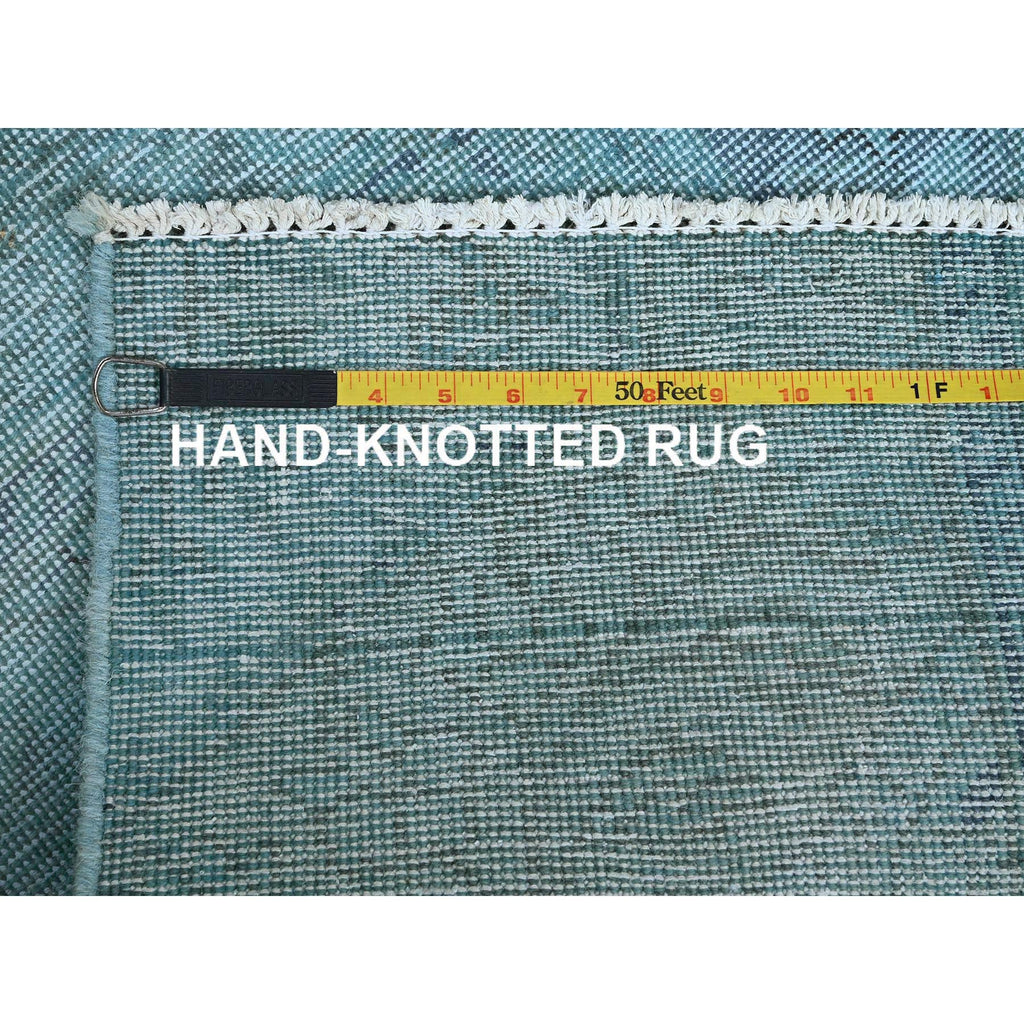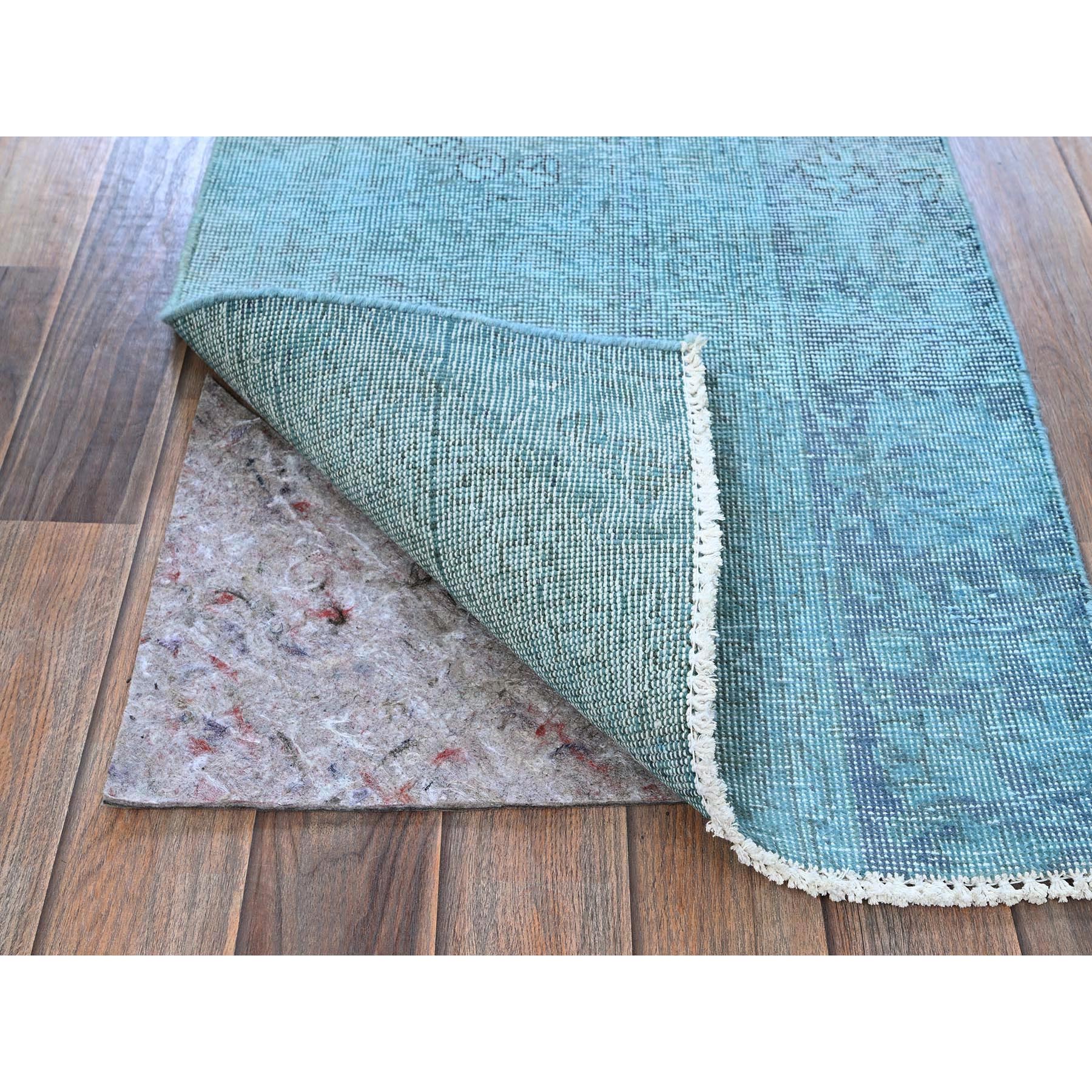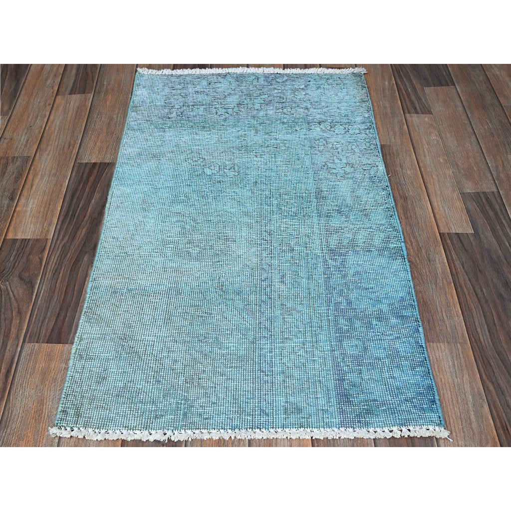 2'x3'2" Sky Blue, Overdyed Vintage Persian Tabriz, Worn And Distressed, Sides And Ends Professionally Secured, Shaved Down, Hand Knotted, Pure Wool, Fragment, Mat, Oriental Rug FWR5706