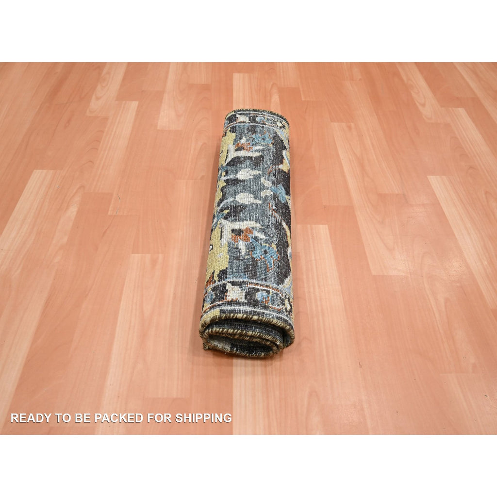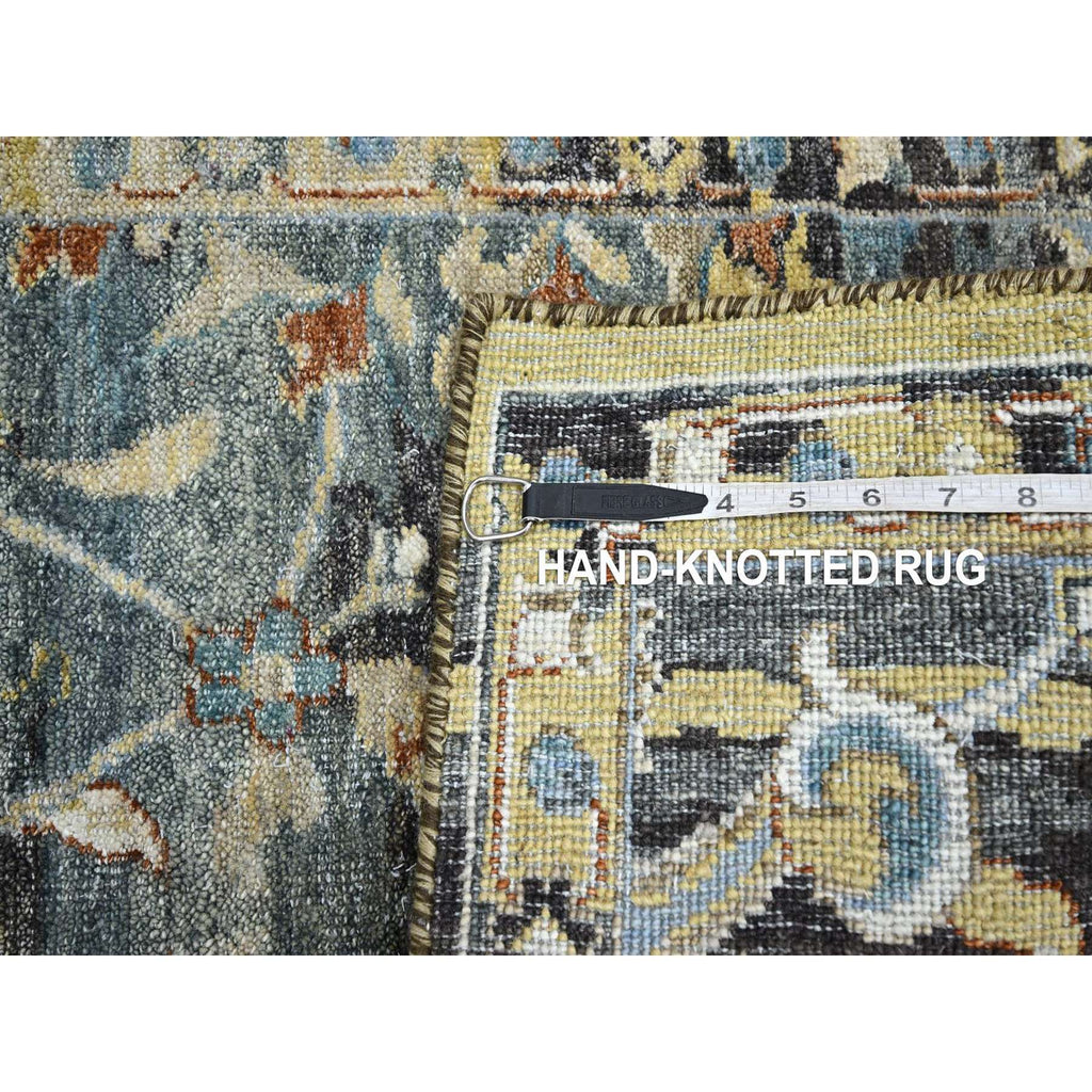 2'x3'3" Stone Blue With Yellow, Abrash Persian Design, 100% Wool, Shaved Low, Zero Pile, Hand Knotted, Mat, Sample, Oriental Rug FWR454182