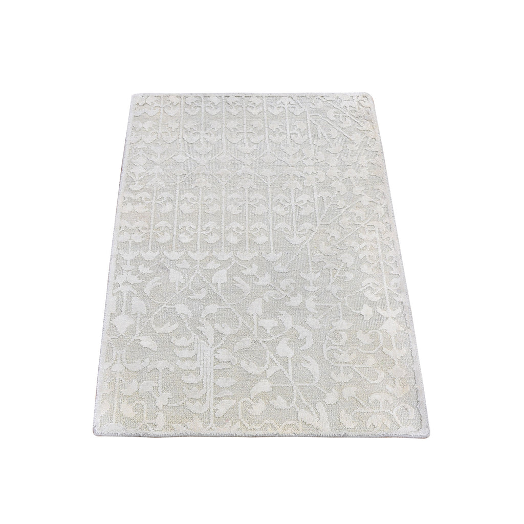 2'x3'4" Ivory Tone On Tone Pure Silk With Textured Wool Hand Knotted Oriental Rug FWR357222