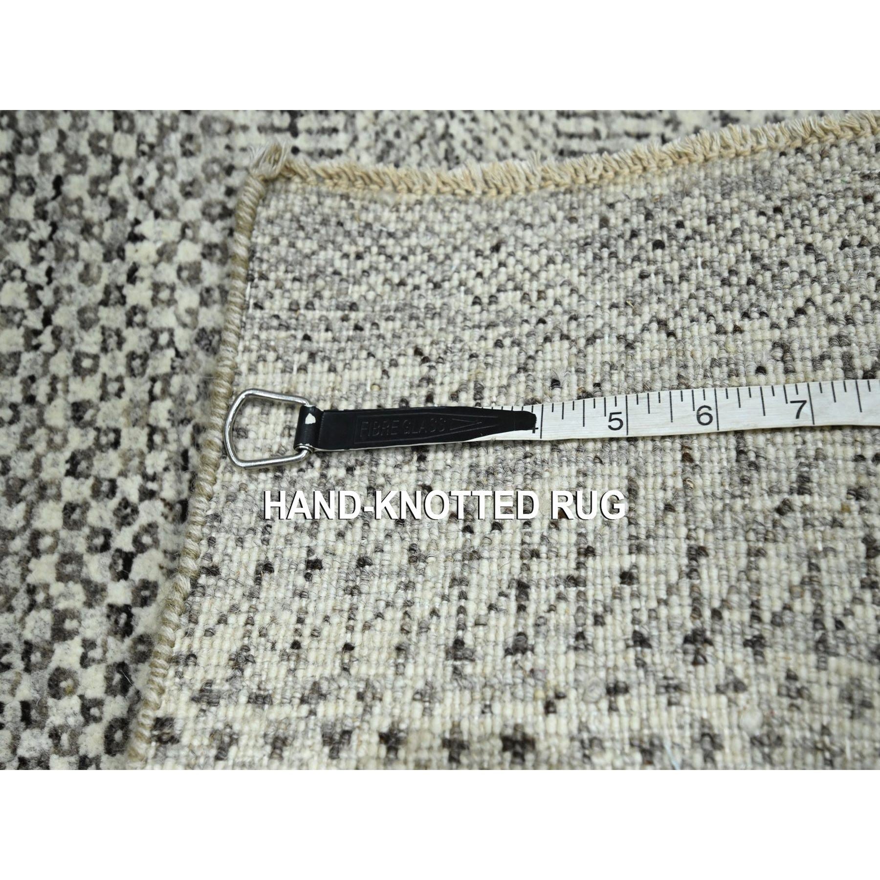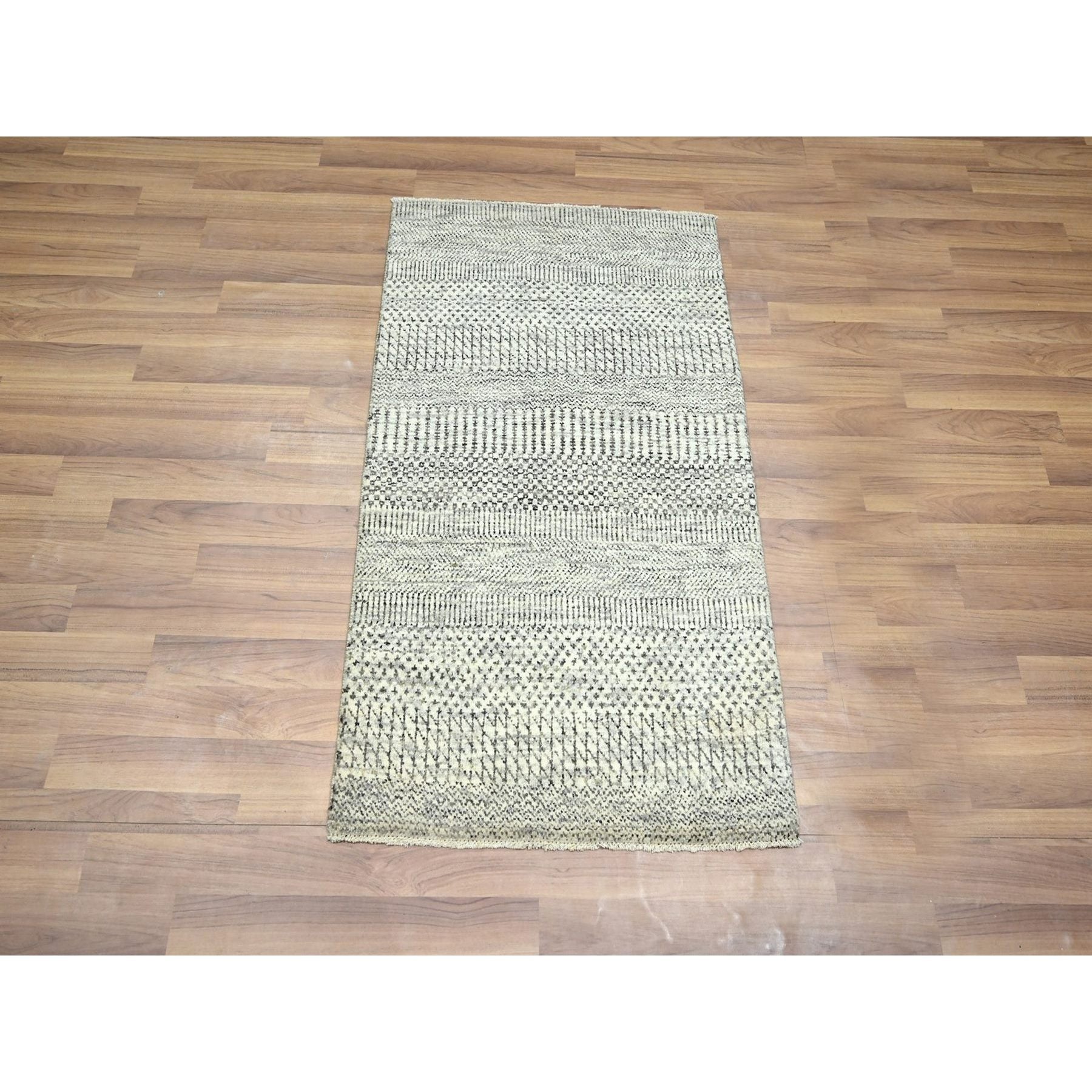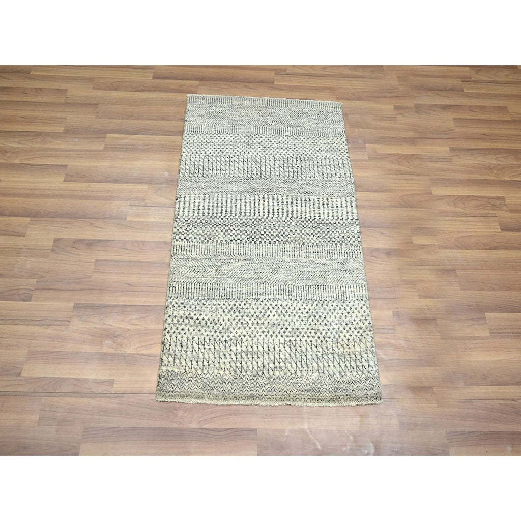 2'x3' Alabaster White, Hand Knotted, Modern Grass Design, Wool With Touch Of Silk, Tone On Tone, Lush And Plush, Mat, Oriental Rug FWR458988