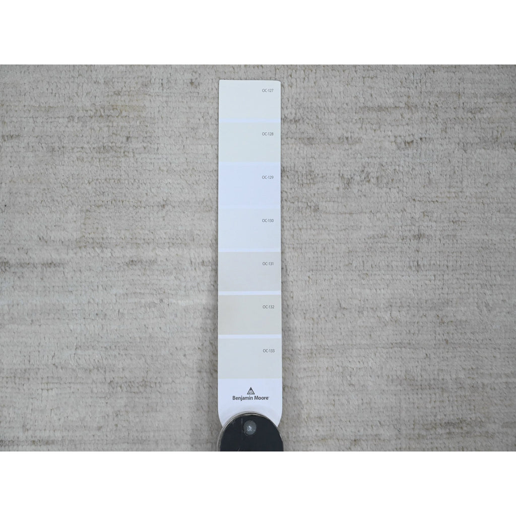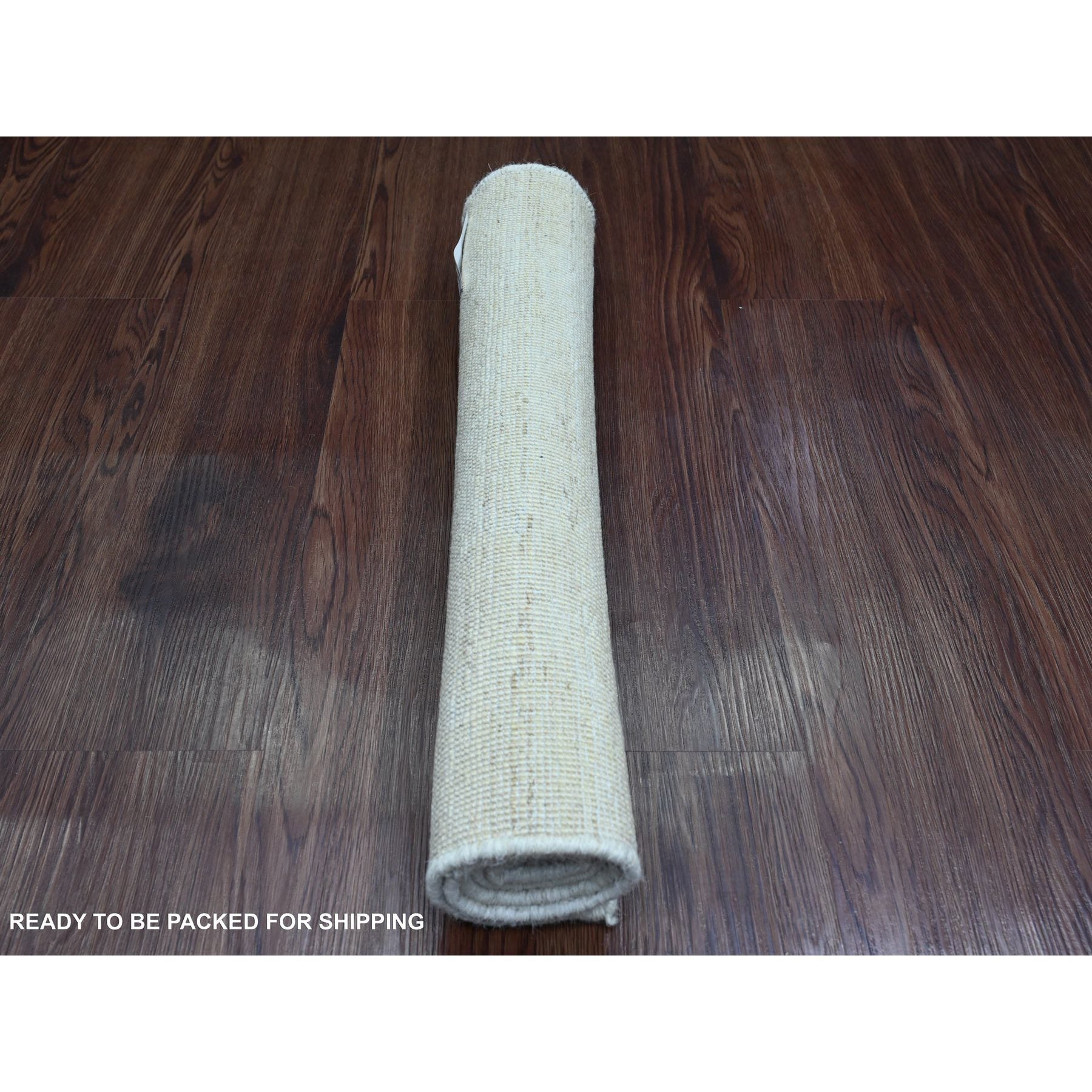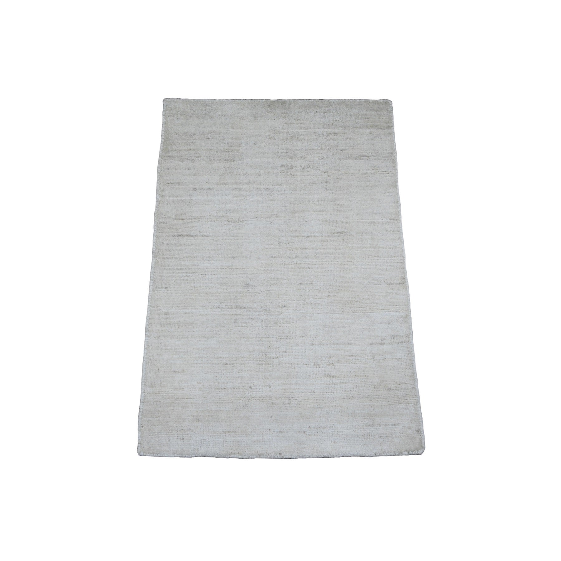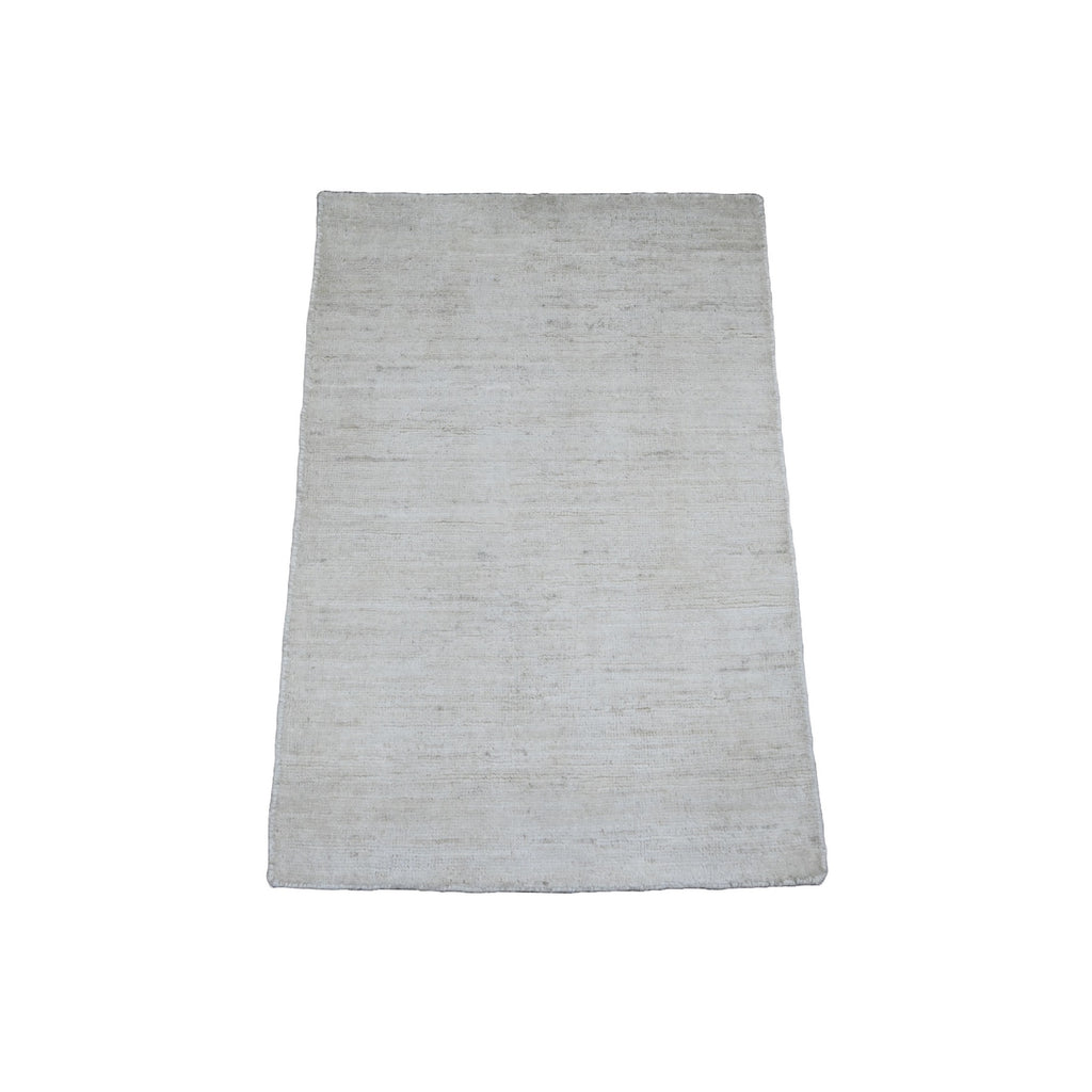 2'x3' Alabaster White, Plain Solid Pattern, Lush And Plush, Hand Knotted, Hand Spun Ghazni Wool, Mat, Oriental Rug FWR124950