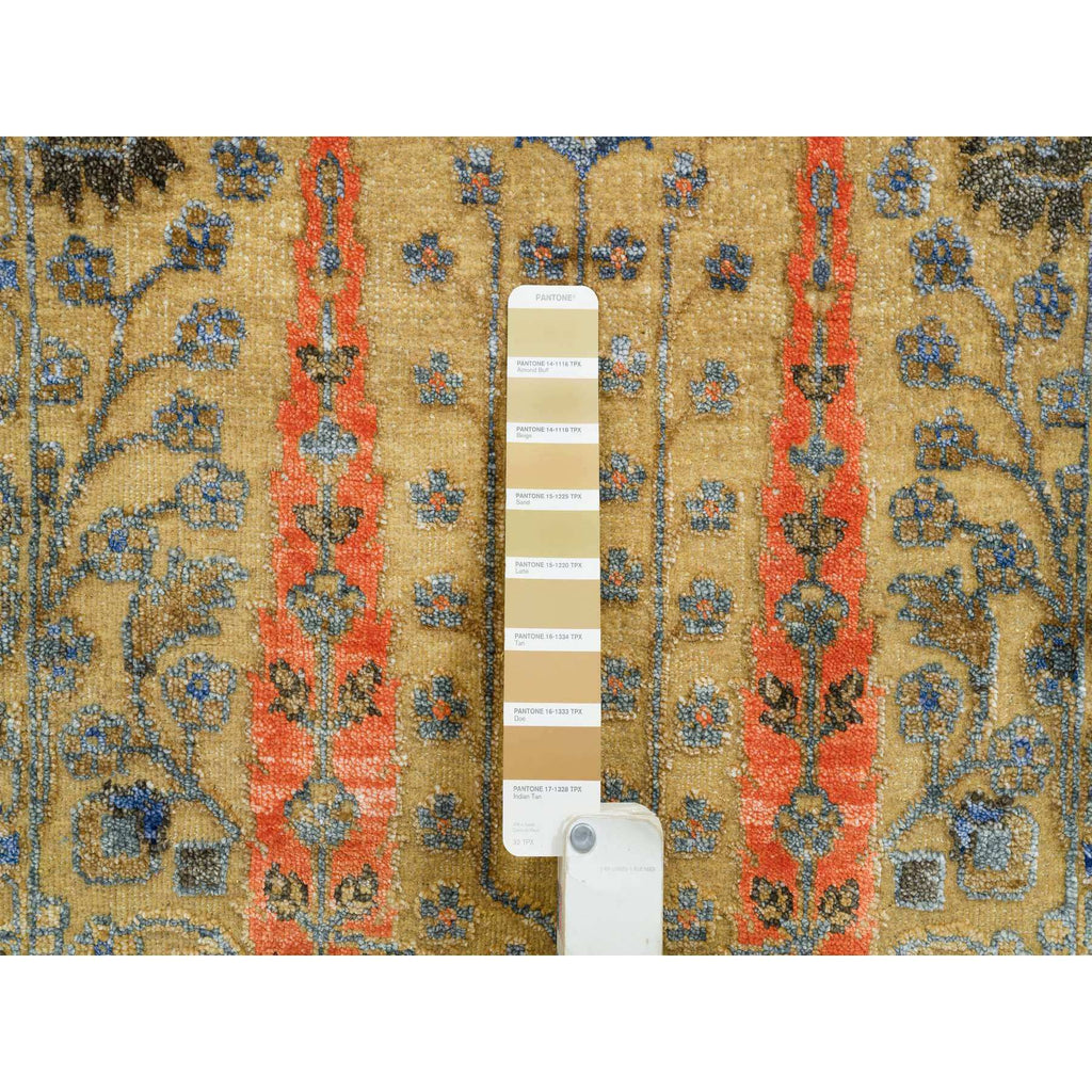 2'x3' Almond Brown, Hand Knotted Cypress Tree Design, Silk With Textured Wool, Mat Oriental Rug FWR390786