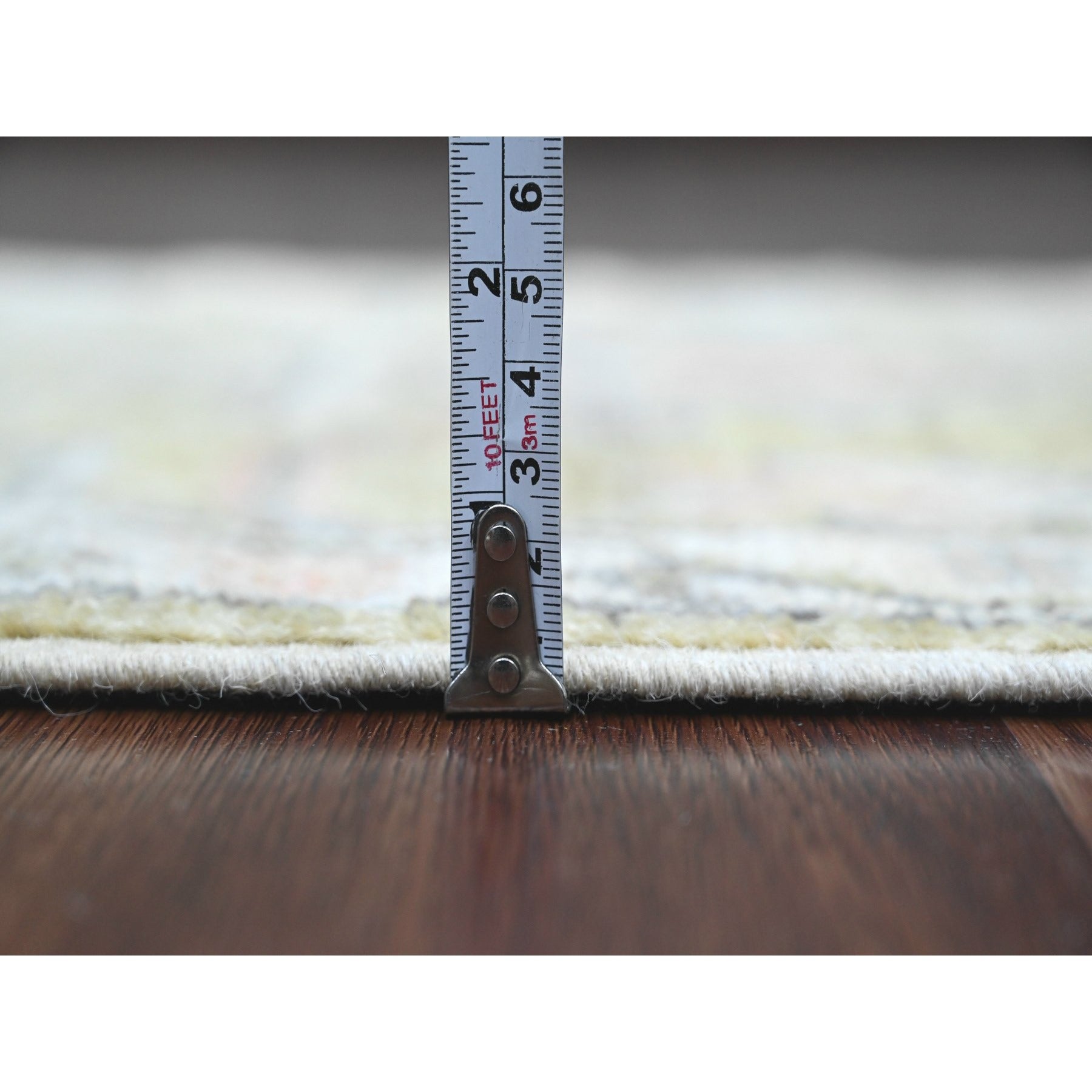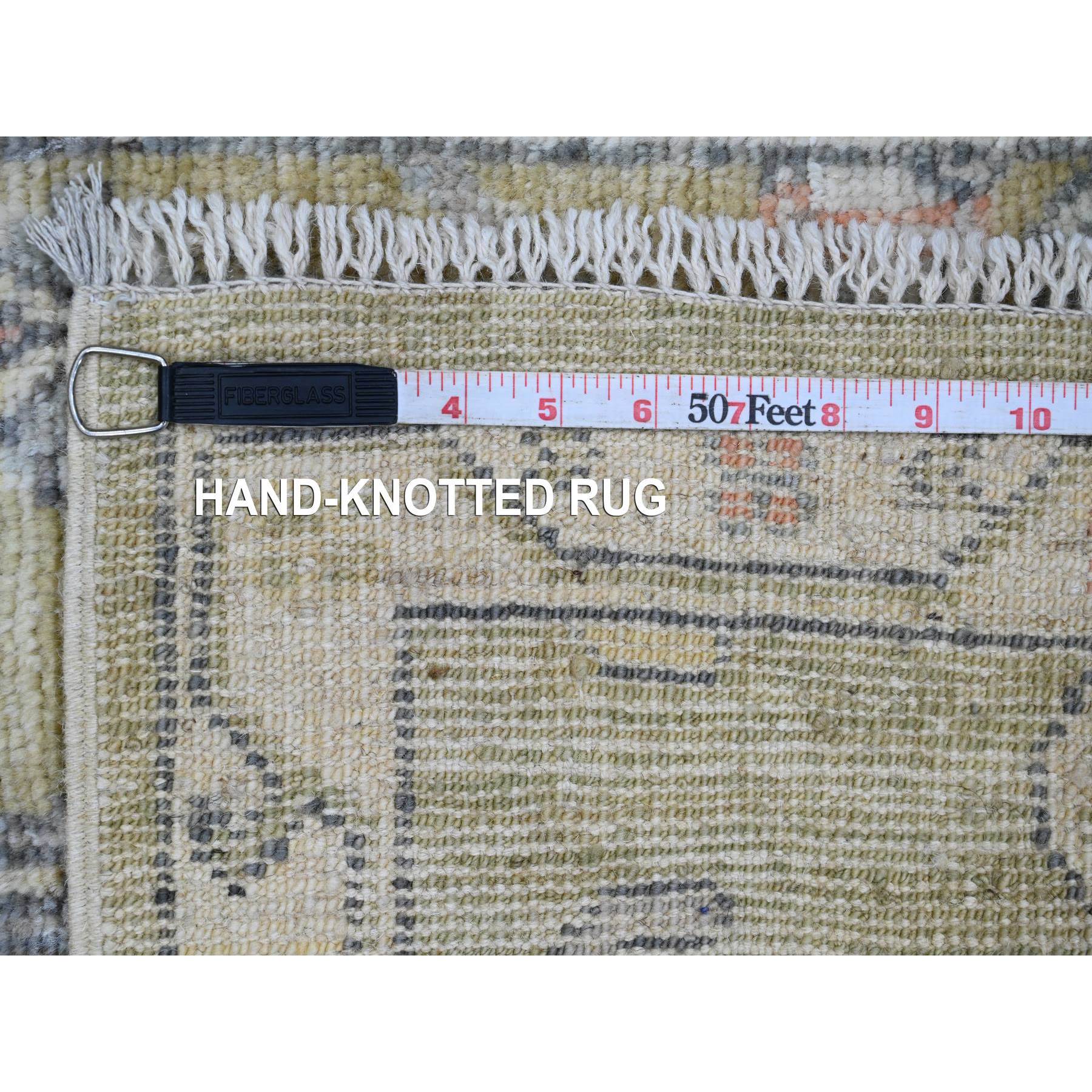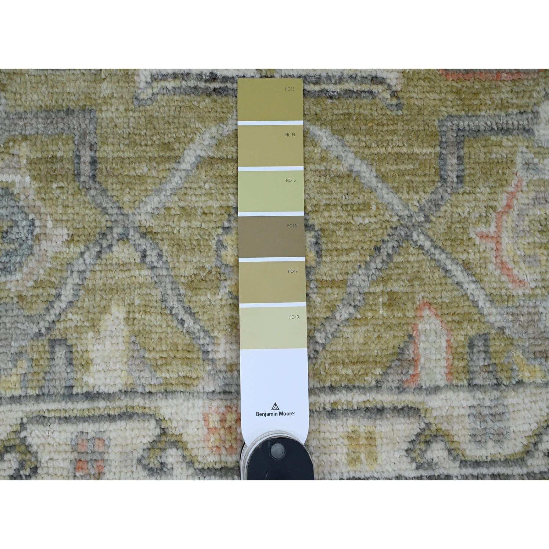 2'x3' Amber Green, Hand Knotted, Afghan Angora Oushak With Vines Design, Veggie Dyes, 100% Wool, Mat, Oriental Rug FWR122004