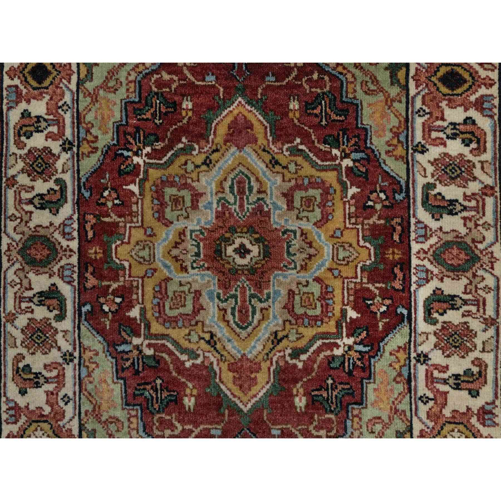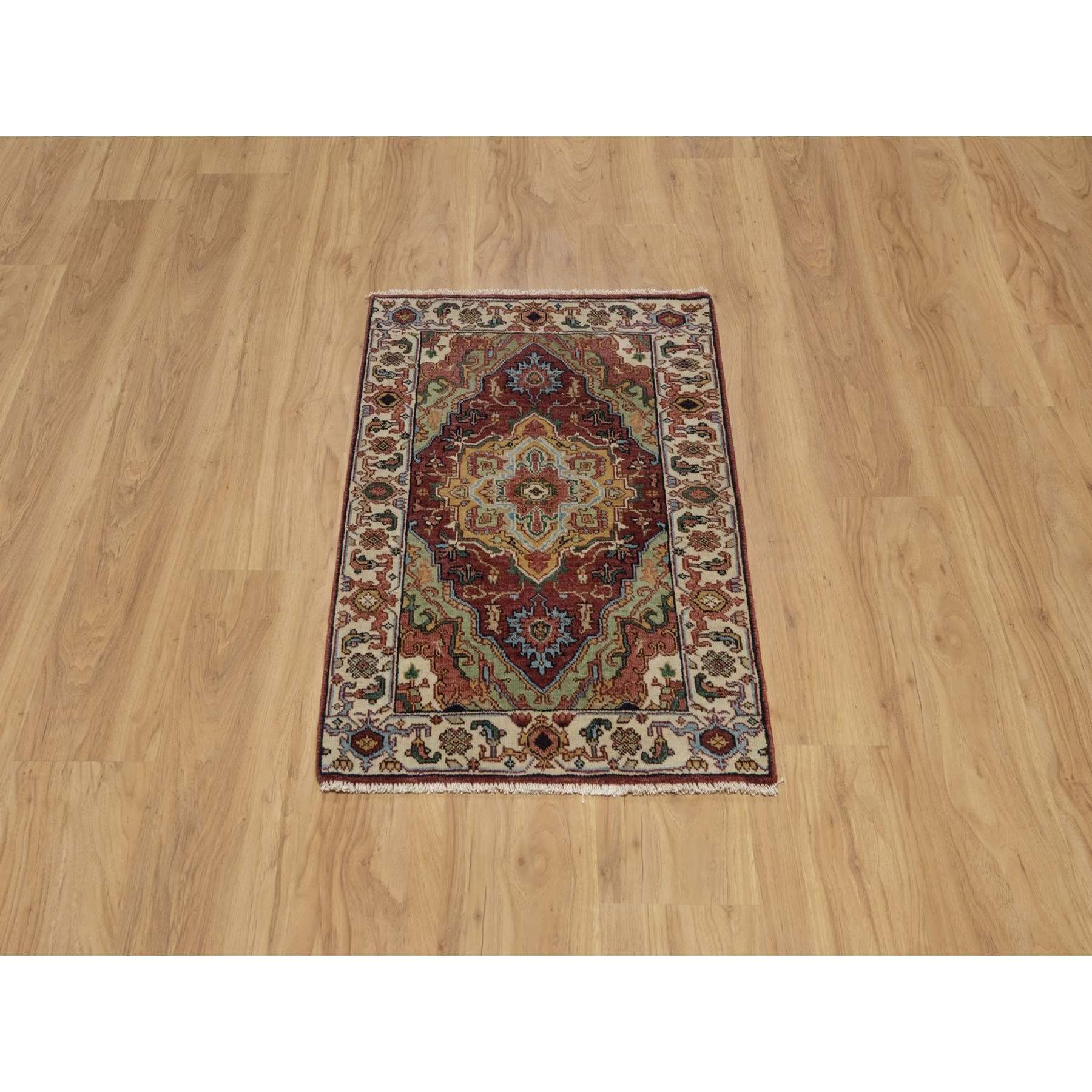 2'x3' Auburn Red, Medallion Design, Antiqued Fine Heriz Re-creation, Hand Knotted, Soft Pile, Hand Spun New Zealand Wool, Vegetable Dyes, Mat, Sample, Oriental Rug FWR548964